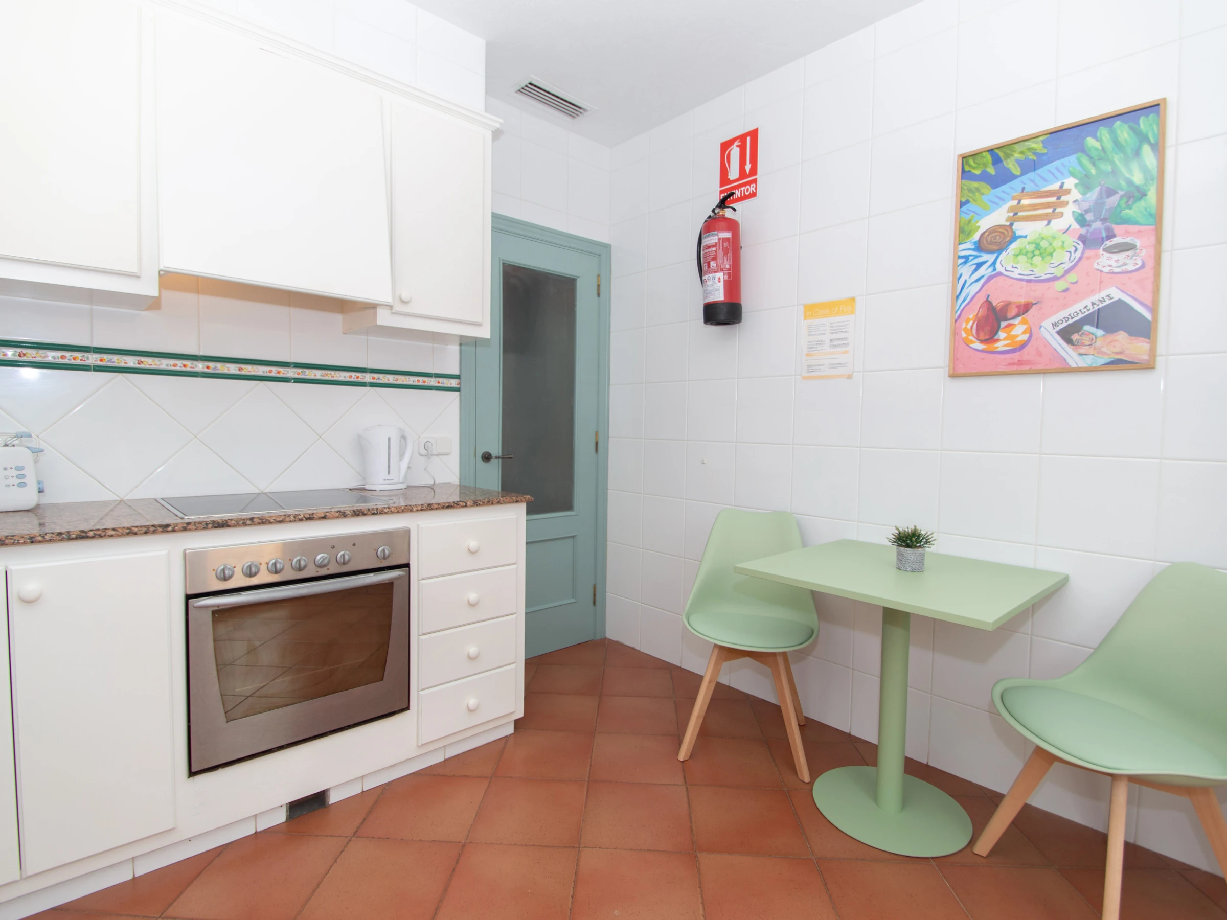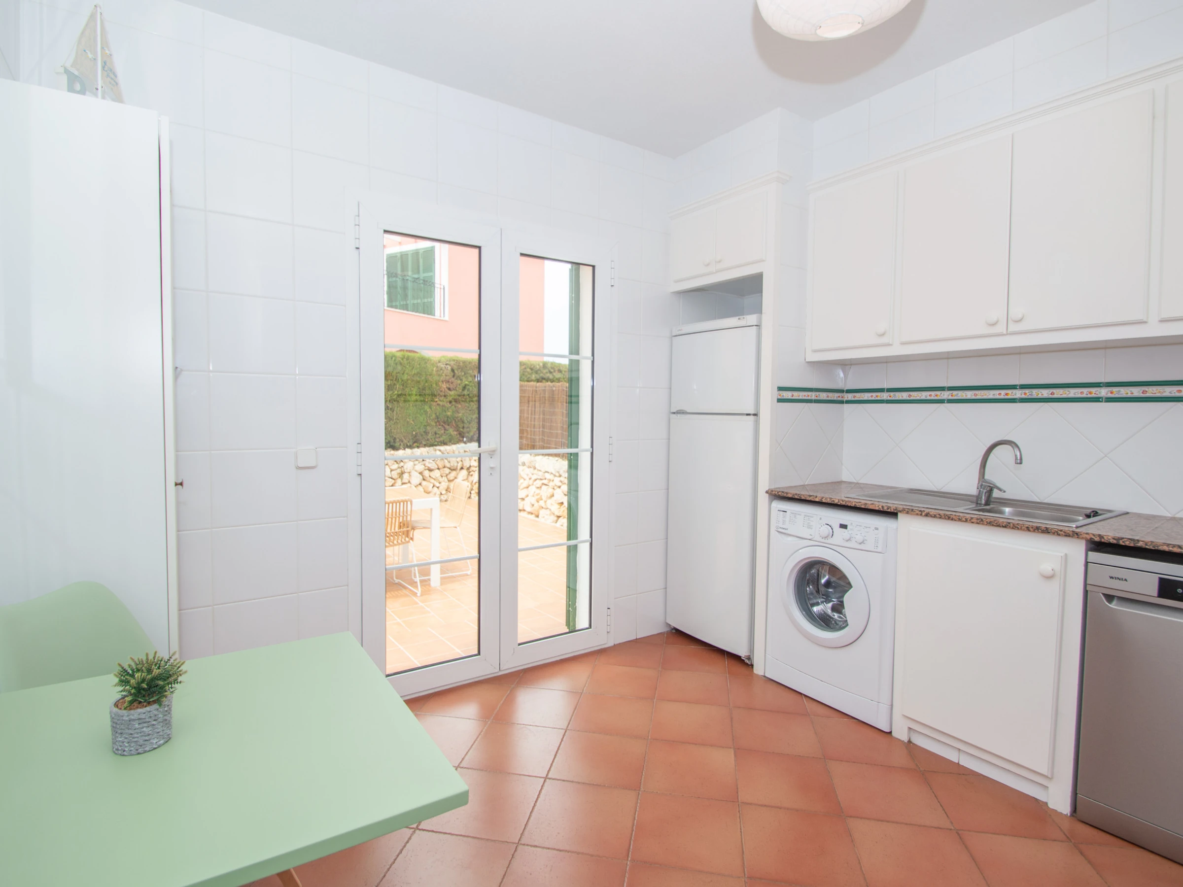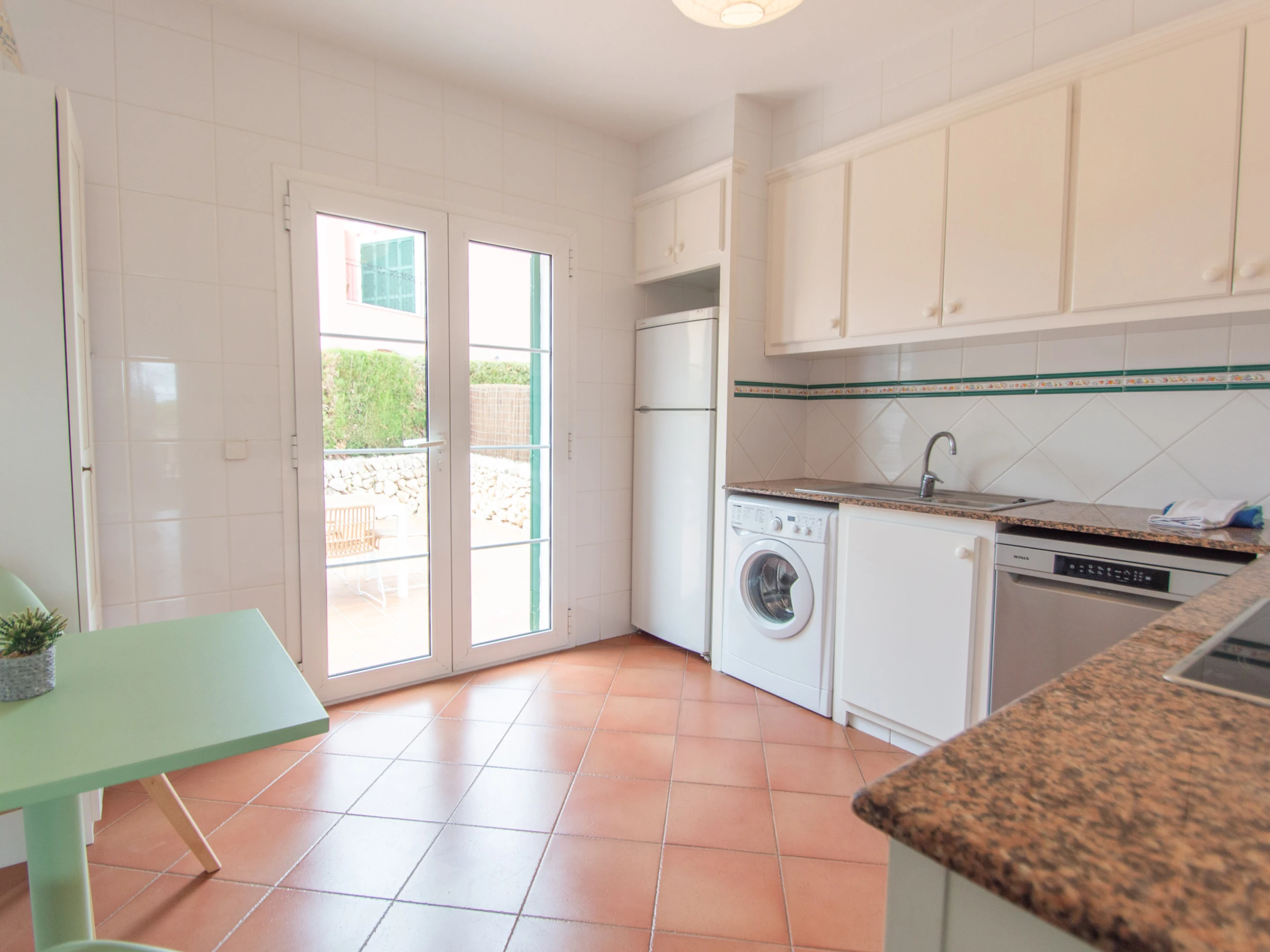 The kitchen is fully equipped with vitroceramic, refrigerator, oven, microwave, dishwasher, kettle, toaster and utensils. It has direct access to the rear terrace of the villa, where the barbecue is, table and chairs to enjoy outdoor meals.