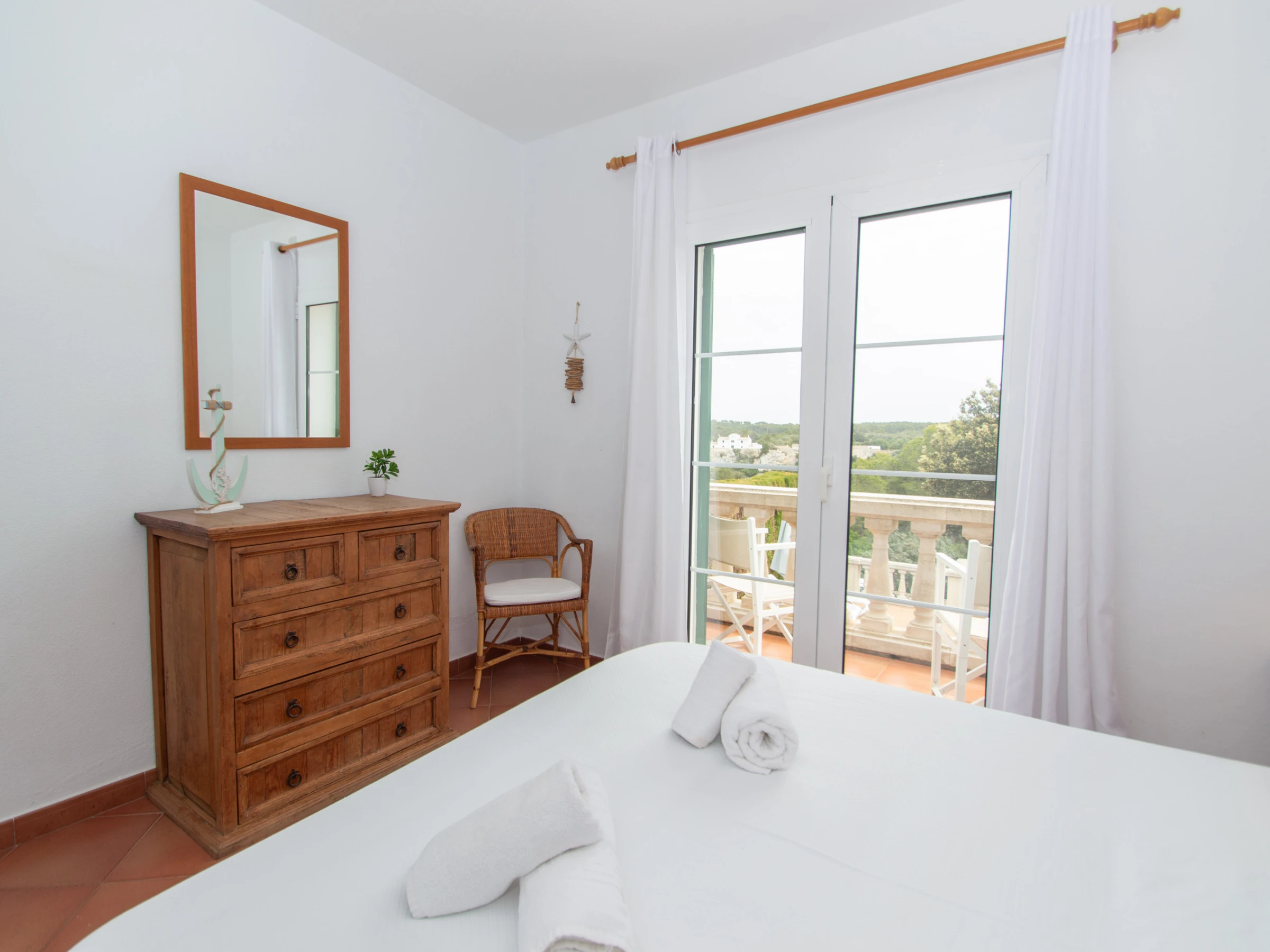 This villa rental in Menorca is equipped besides with central air conditioning, WiFi, safe, Radio-CD compatible for iPod and private parking.