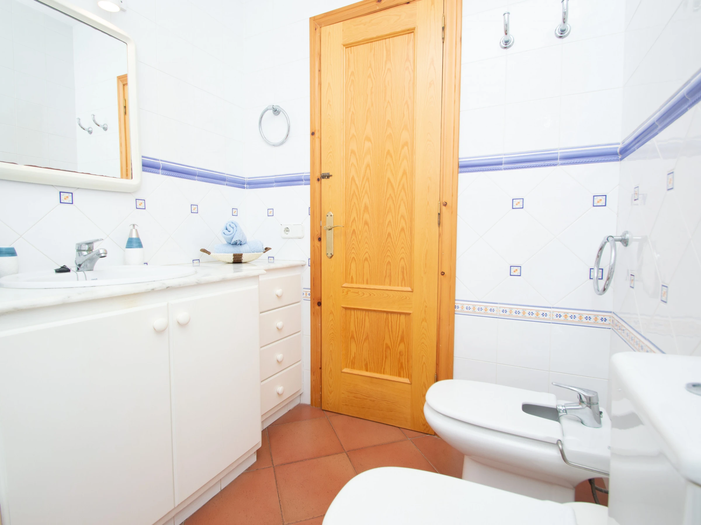 The rooms are composed on the one part of a master bedroom suite with double bed and direct access to the terrace. Moreover, the other two rooms are made up of two double bedrooms and have a family bathroom. All rooms have a fitted wardrobe to enjoy amplitude.