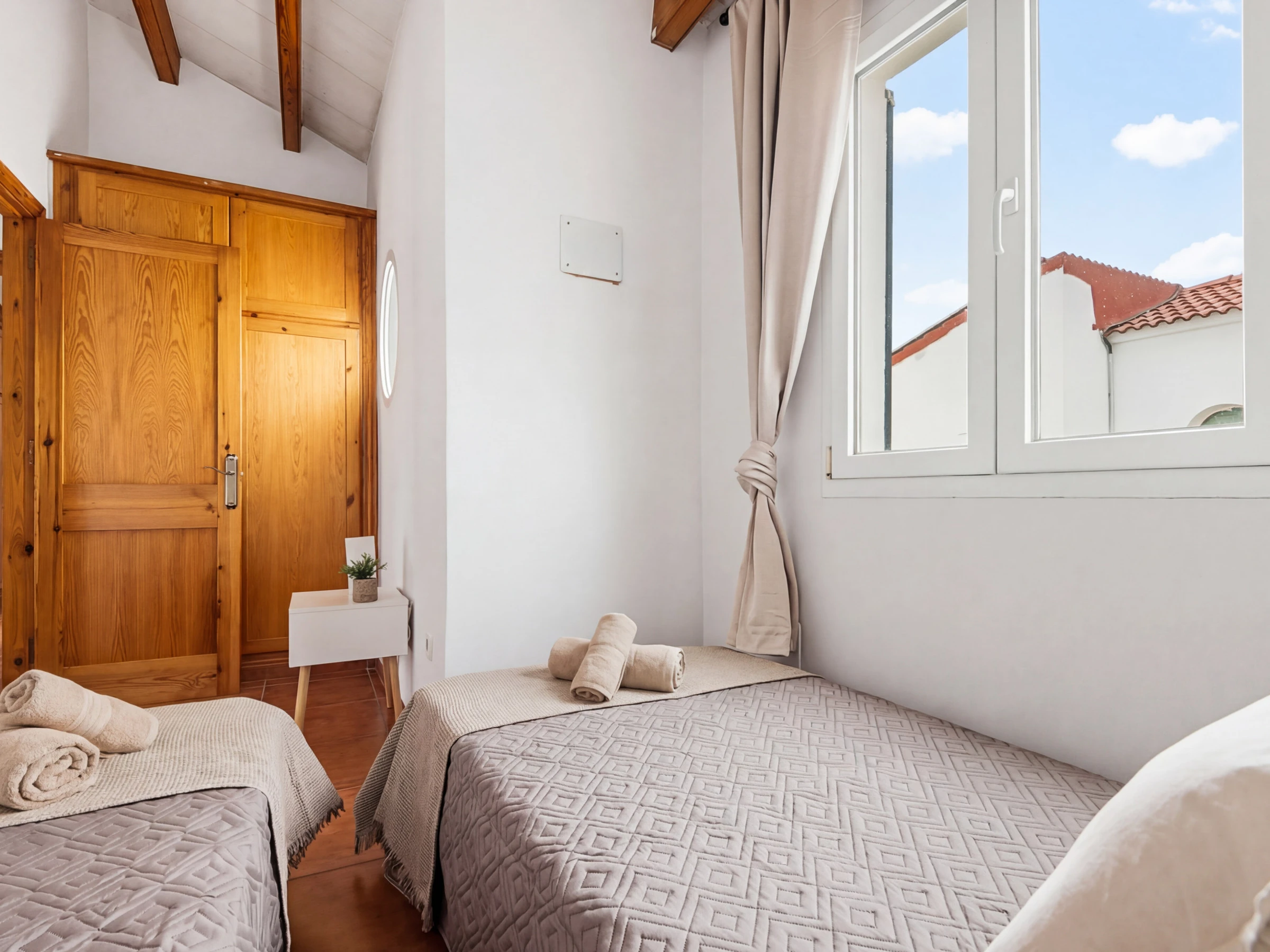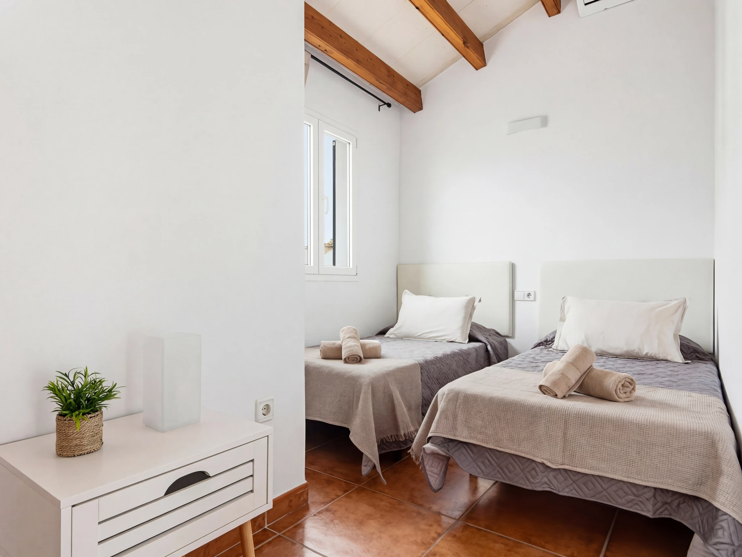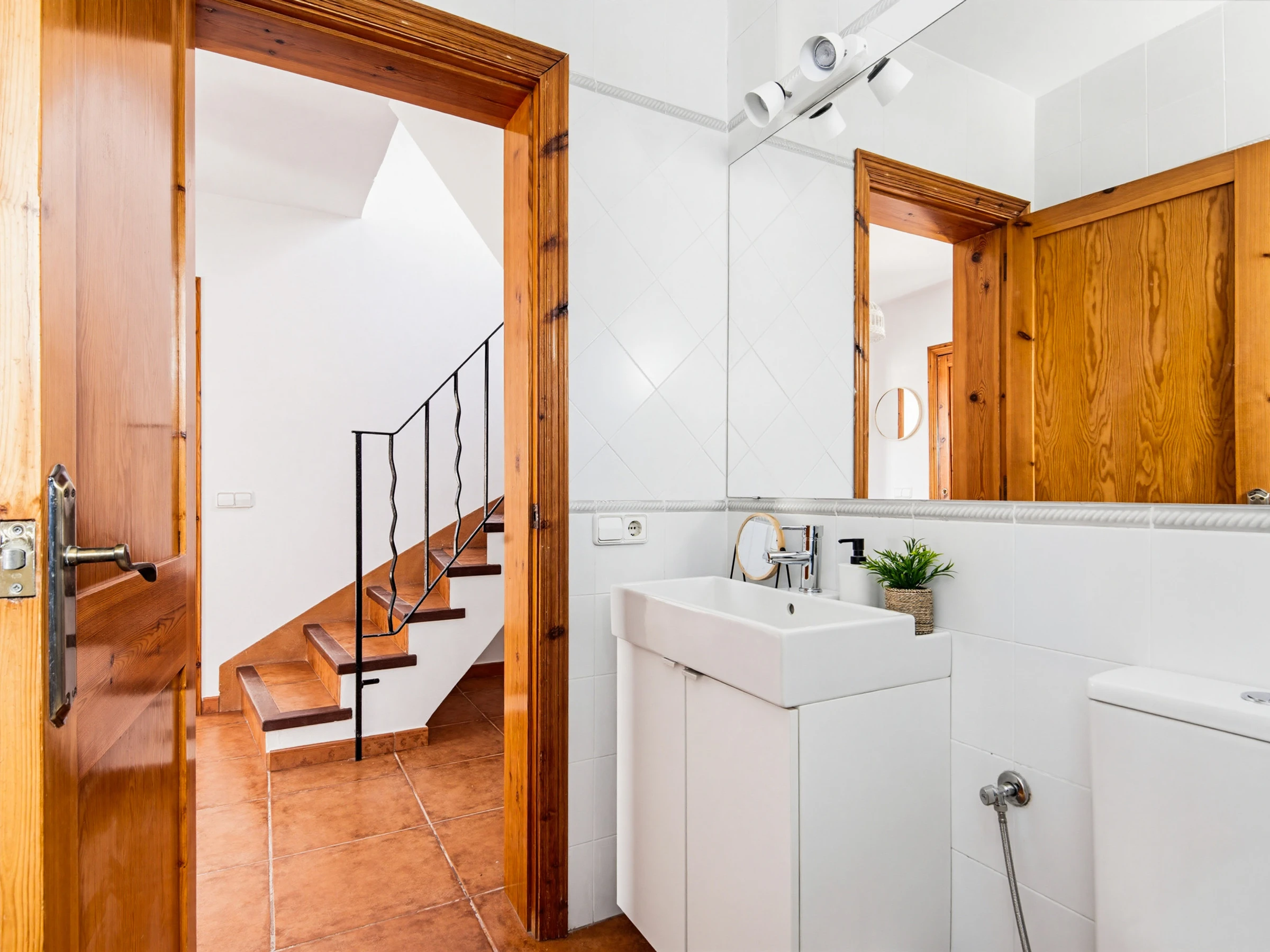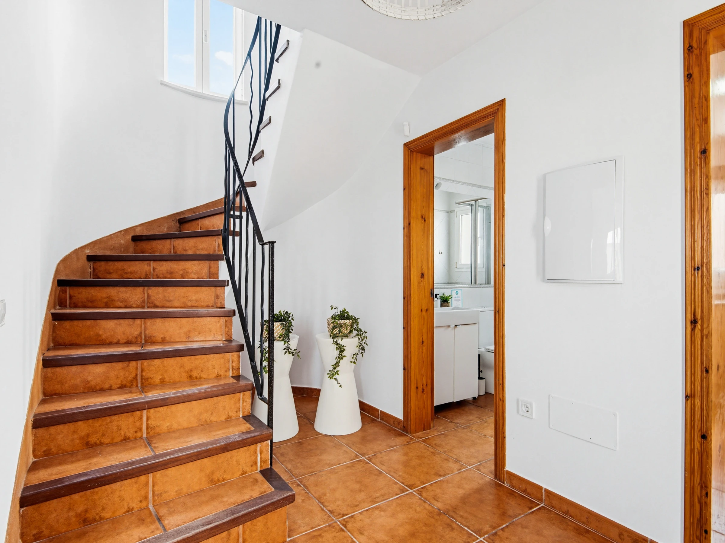 L'étage supérieur abrite trois chambres doubles avec climatisation, l'une avec lit double et les deux autres avec lits simples. À cet étage se trouve une salle de bain complète, qui sera rénovée et incorporera une douche.