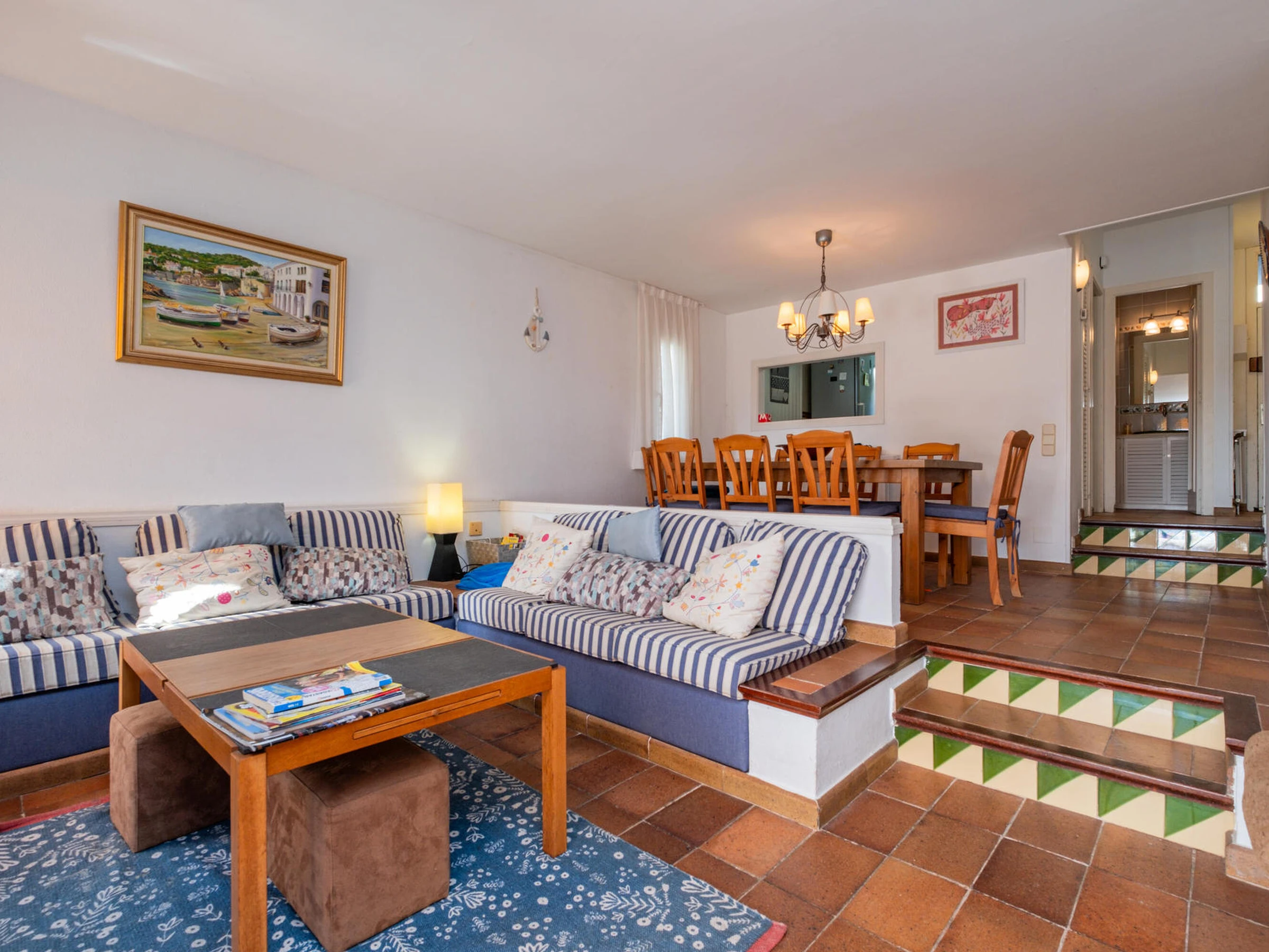 Maison mitoyenne de trois étages située dans une agréable et paisible résidence avec piscine à Calella de Palafrugell, sur la Costa Brava. Au rez-de-chaussée, vous trouverez un spacieux et lumineux salon-salle à manger avec accès direct à la terrasse, une grande cuisine entièrement équipée, une buanderie et des toilettes invités. Le premier étage comprend trois chambres doubles et une chambre individuelle, une salle de bain en suite ainsi qu’une seconde salle de bain complète. Au dernier étage se trouve un studio chaleureux avec accès à une terrasse privée, idéal pour se détendre, lire ou profiter du calme environnant. La propriété est située à seulement 500 mètres de la plage et à environ 500 mètres du centre, avec tous les services à proximité. Capacité d’accueil : 8 personnes. Pour toute question ou préoccupation concernant cette propriété, n'hésitez pas à nous contacter.