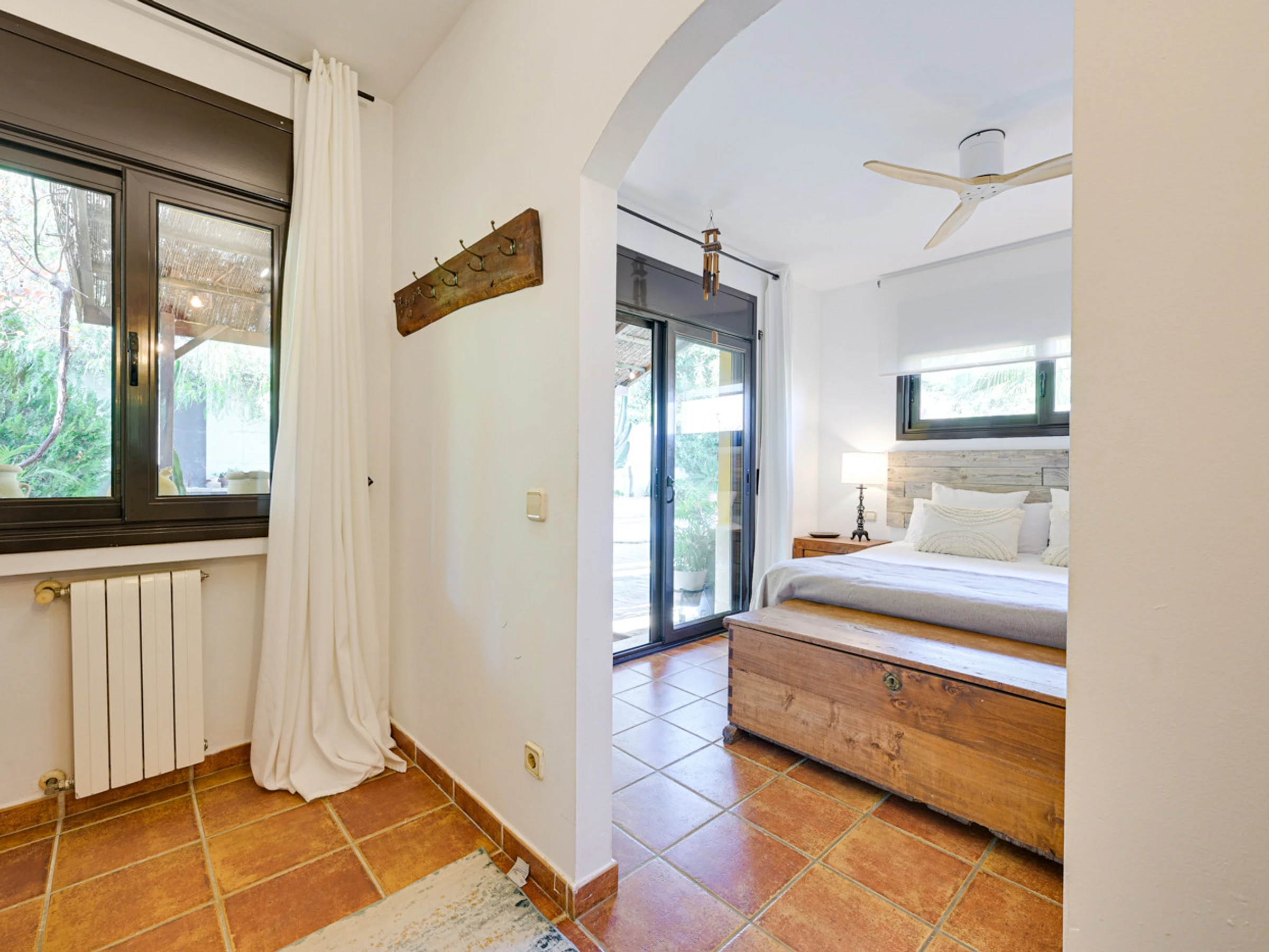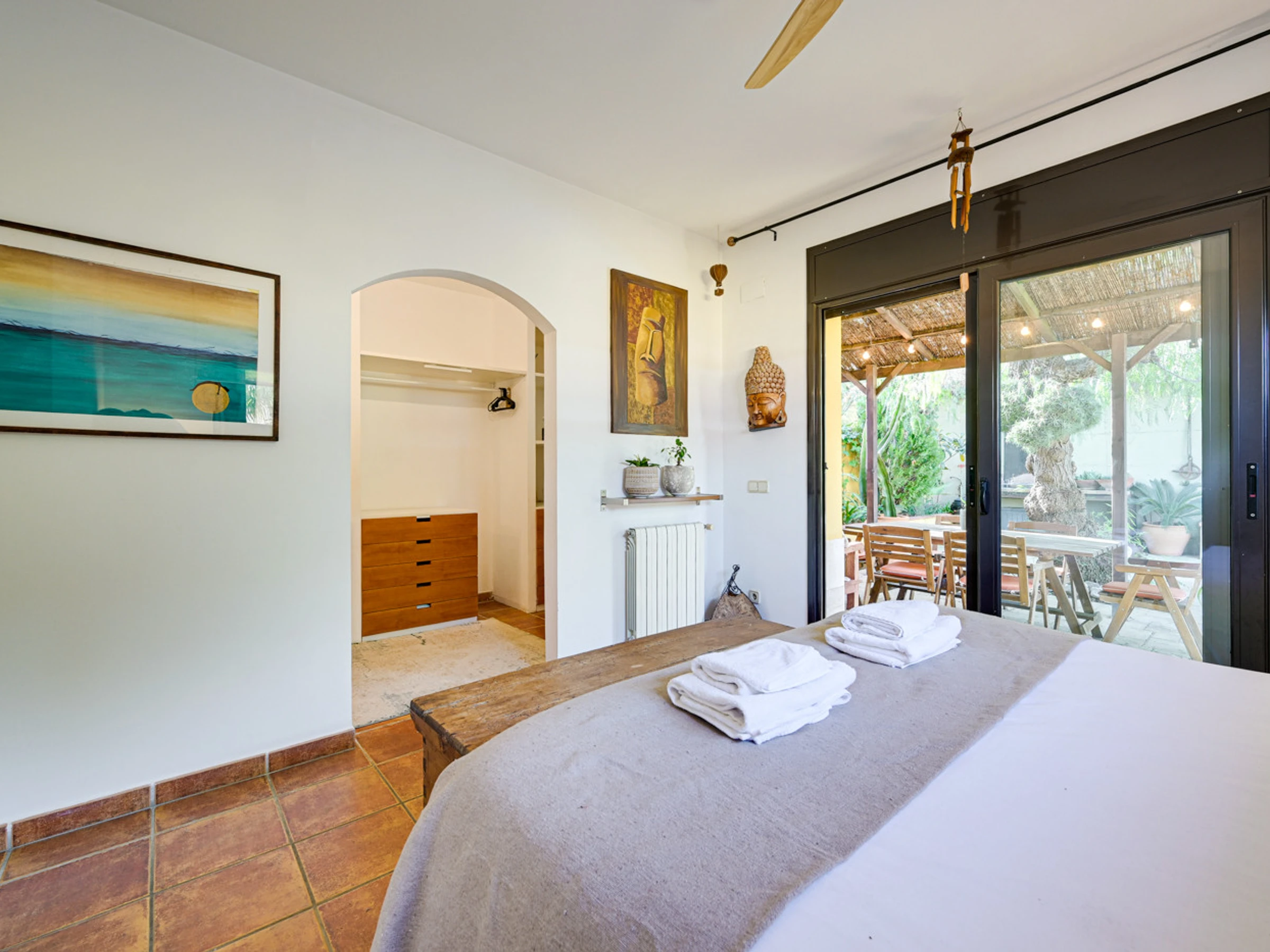 - Chambre principale avec lit double (160cm), dressing et accès direct à la terrasse et à la piscine.