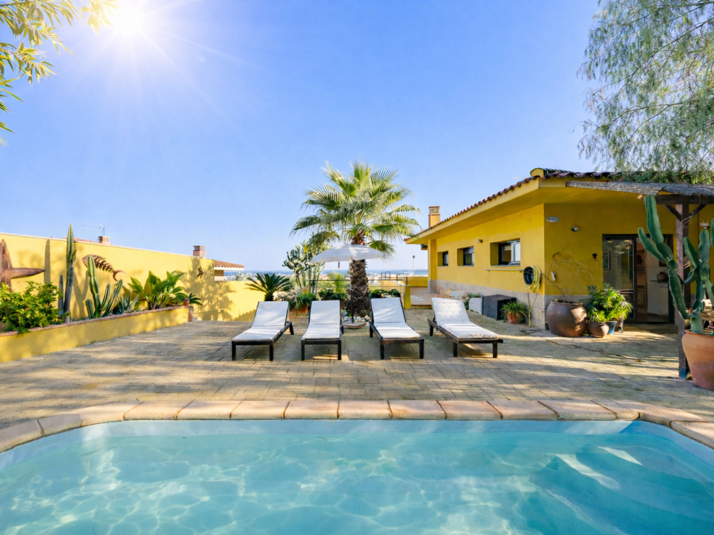 Il se caractérise par sa décoration avec des meubles rustiques restaurés et un espace extérieur plein de belles plantes, une piscine privée, deux porches et une vue sur la mer.