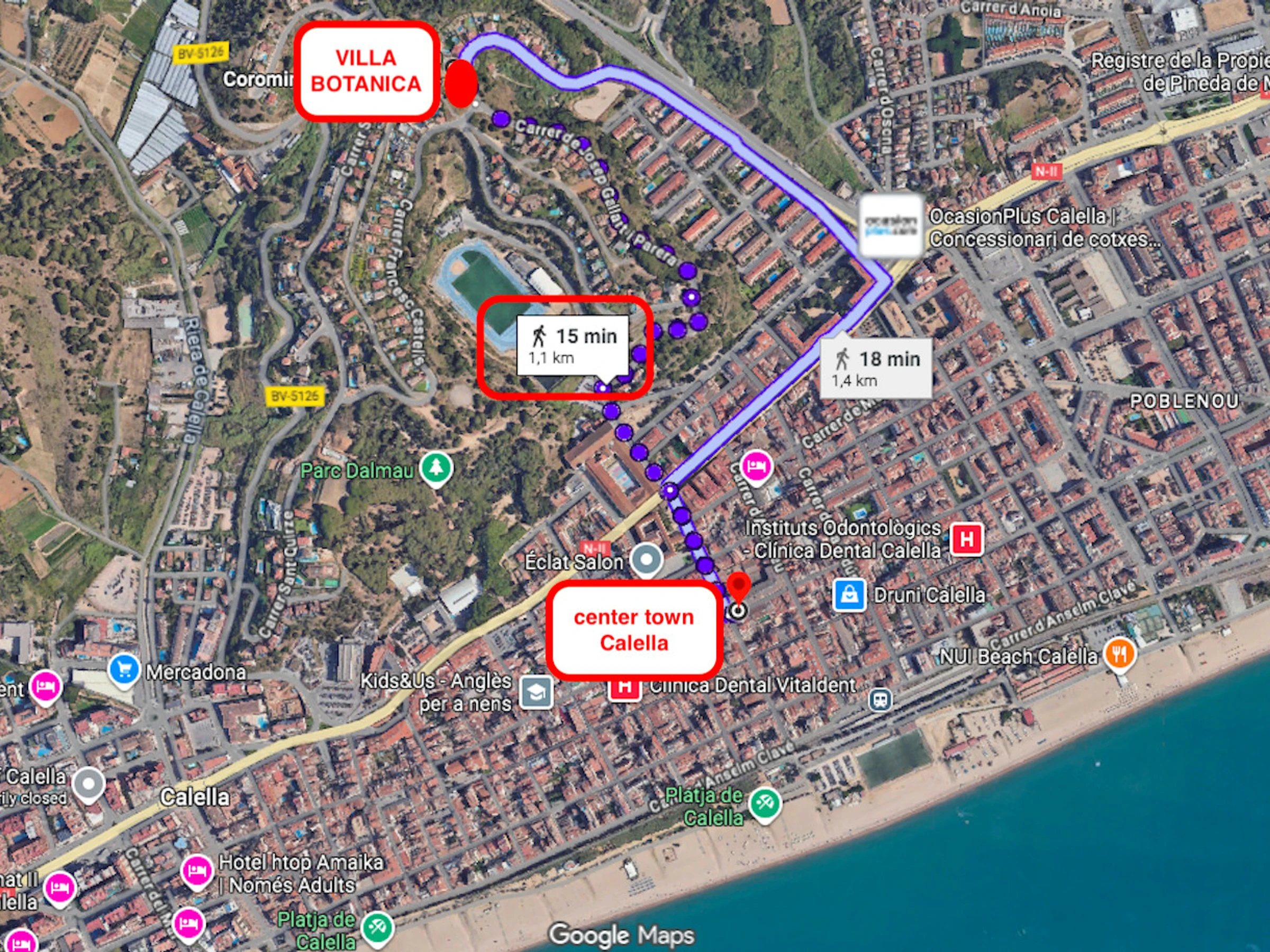 Vous pouvez facilement vous rendre à Barcelone en train qui part de Calella toutes les 30 minutes, ou en voiture (45 minutes).
