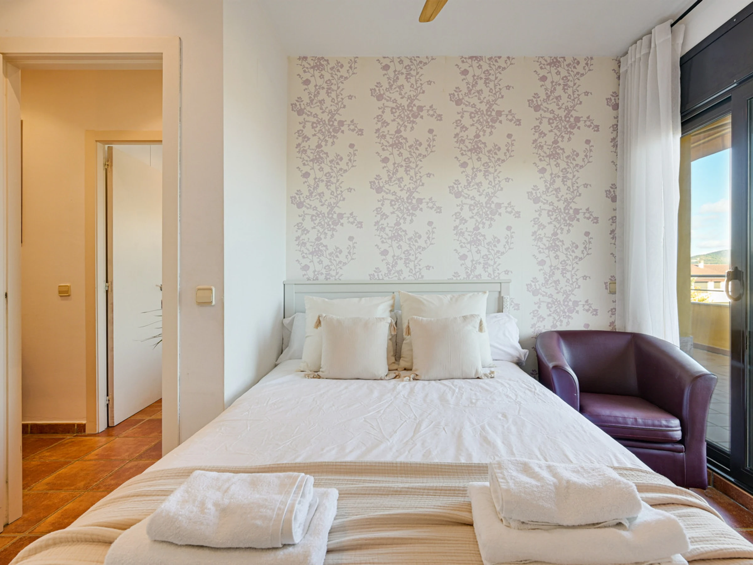 - 2 autres chambres doubles, chacune avec un lit double (140cm). Ces deux chambres ont accès au balcon avec vue sur mer.