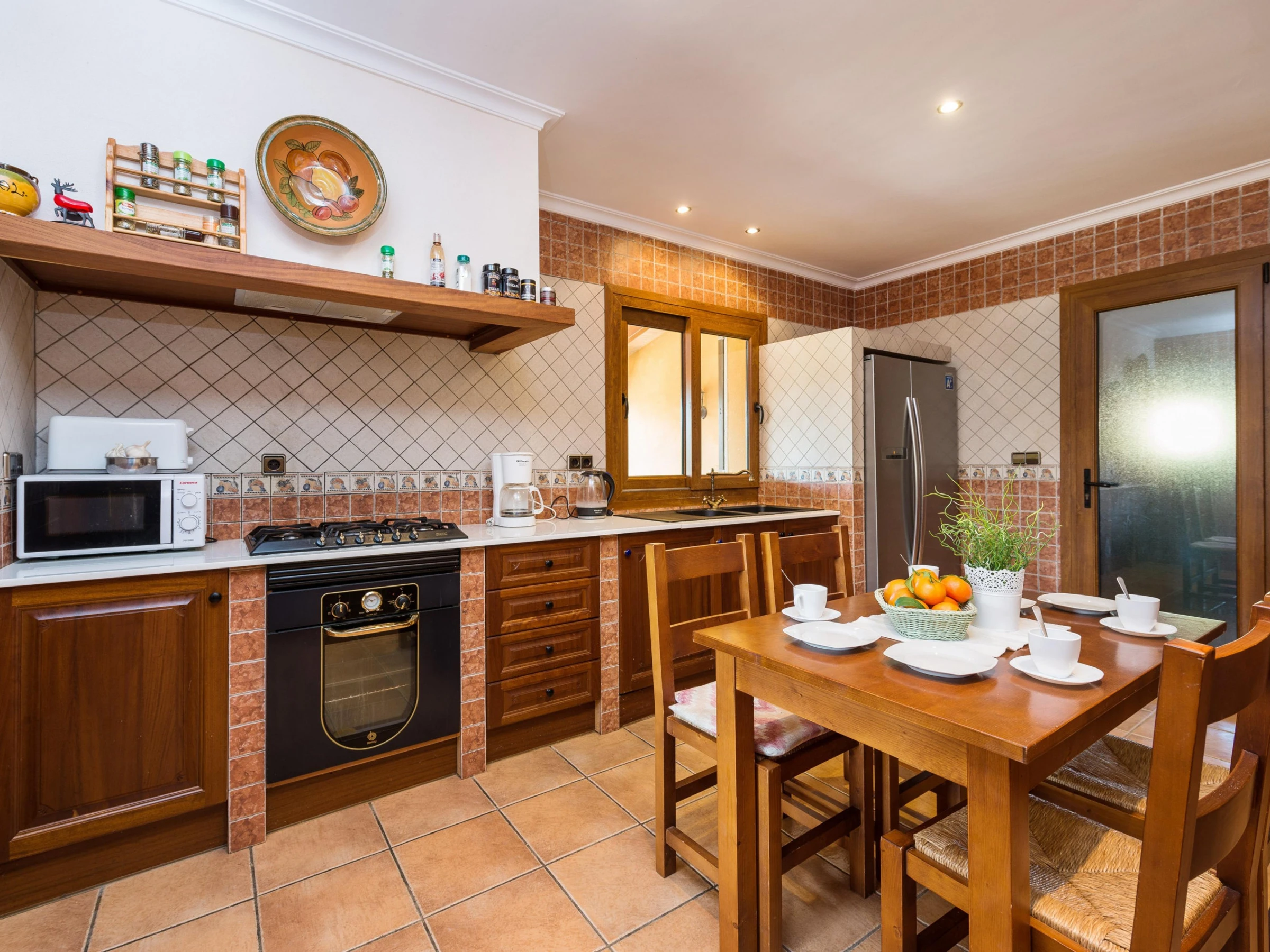 La cuisine, est équipée avec réfrigérateur, micro-ondes, four, congélateur, lave-vaisselle, cafetière et grille pain.