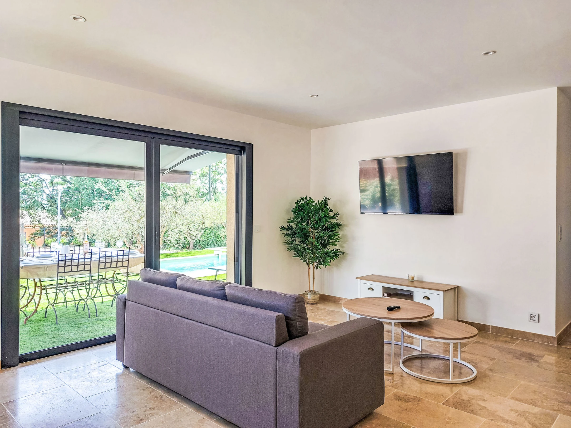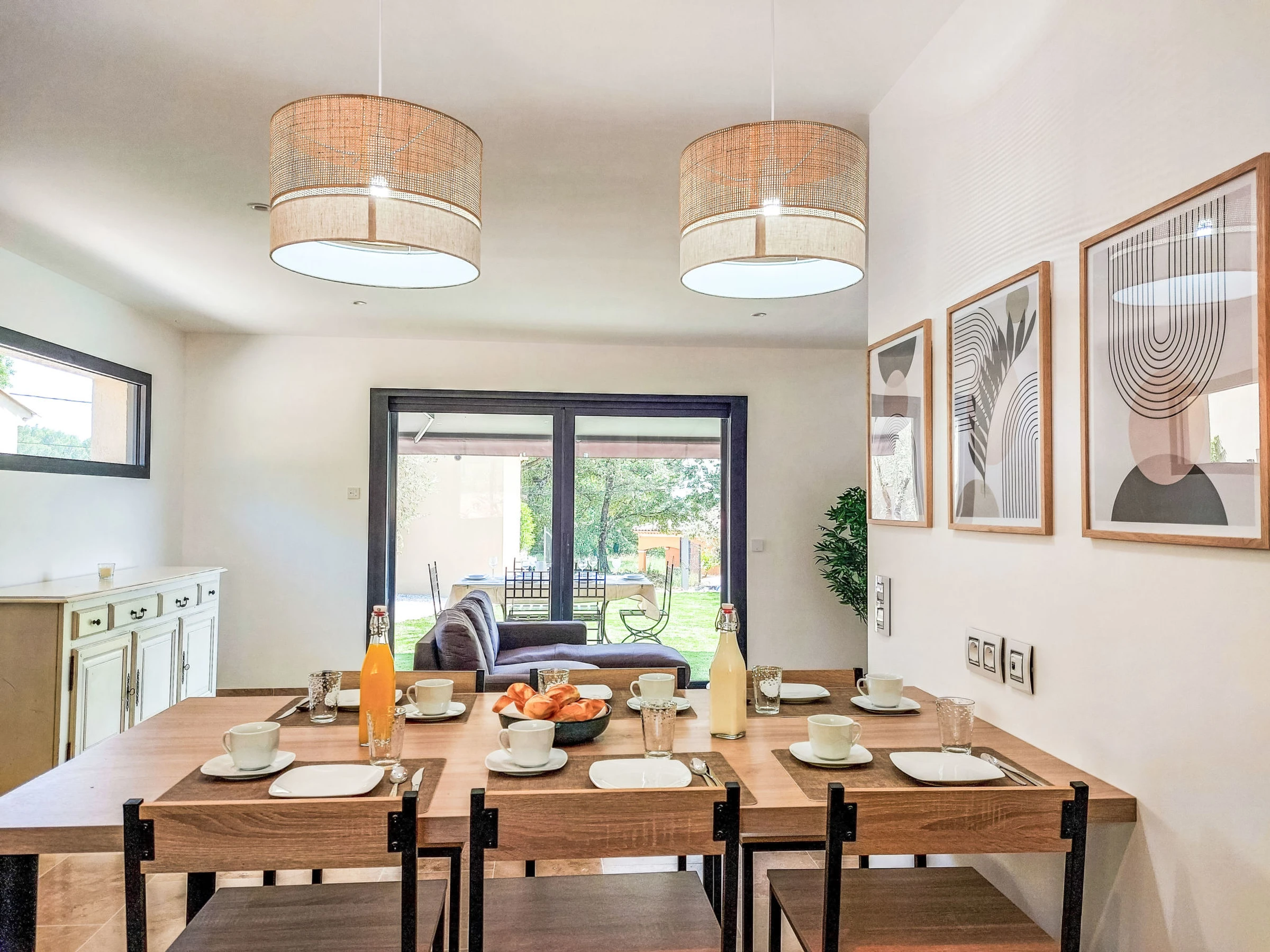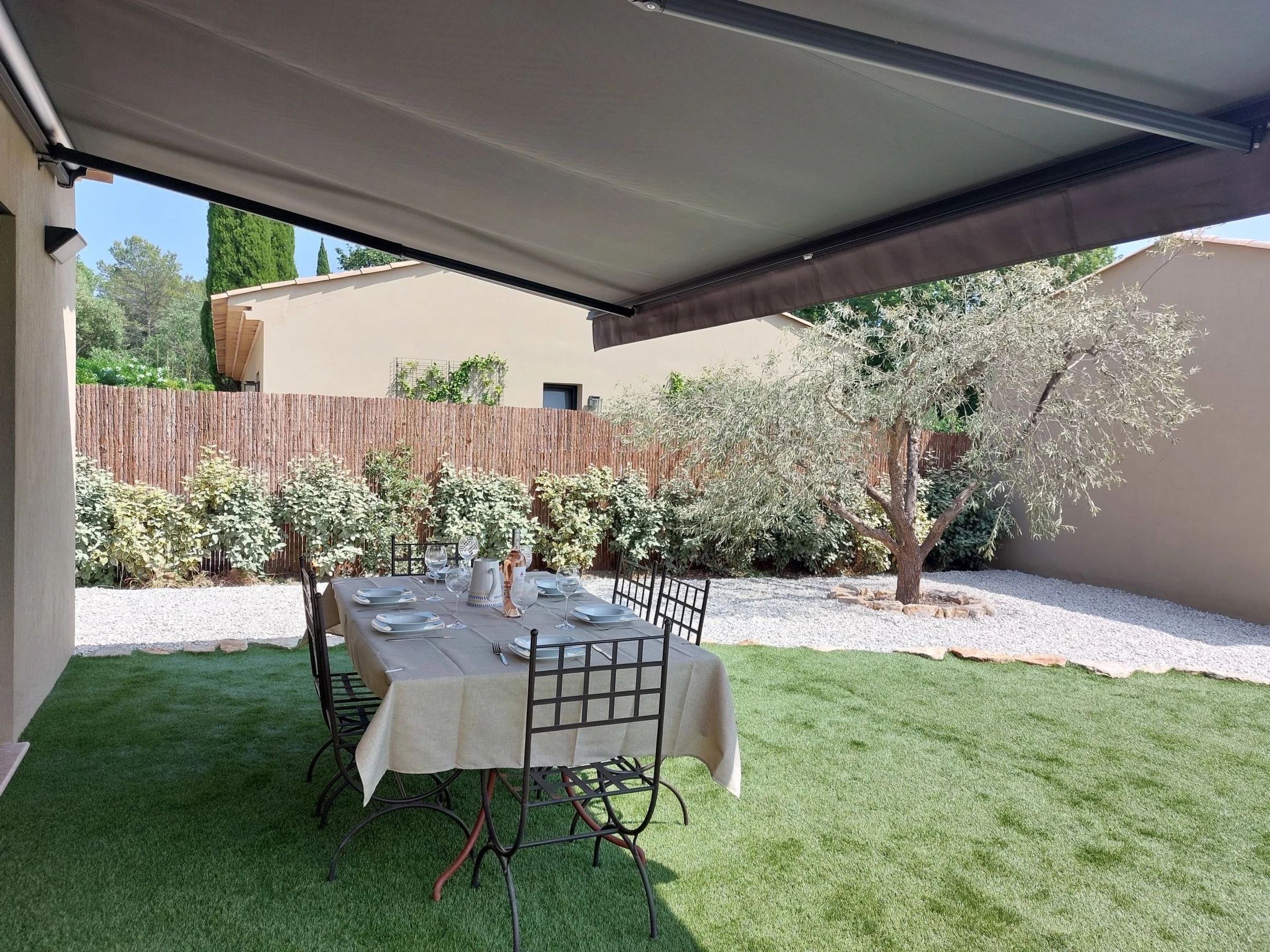 "Lou Pantaia", villa 4 pièces 95 m2. Aménagement confortable et moderne: séjour avec TV (écran plat). Sortie sur le jardin. 1 chambre avec 1 grand-lit (160 cm, longueur 200 cm), TV (écran plat). 1 chambre avec 1 grand-lit (140 cm, longueur 190 cm), TV (écran plat). 1 chambre avec 1 grand-lit (140 cm, longueur 190 cm). Cuisine ouverte (four, lave-vaisselle, 4 plaques à induction, grille-pain, bouilloire électrique, micro-ondes, congélateur, cafetière électrique, Capsules pour machine à café (Nespresso)) avec table pour les repas. Douche, WC séparé. Chauffage électrique, air-conditionné. Barbecue, chaises longues (6). A disposition: lave-linge, lit bébé jusqu'à 3 ans. Internet (Connexion WIFI, gratuit). Veuillez noter: maison non-fumeur. Maximum 1 animal/ chien autorisé. Détecteur de fumée. Annonce d'un particulier (art 155, IV du CGI).