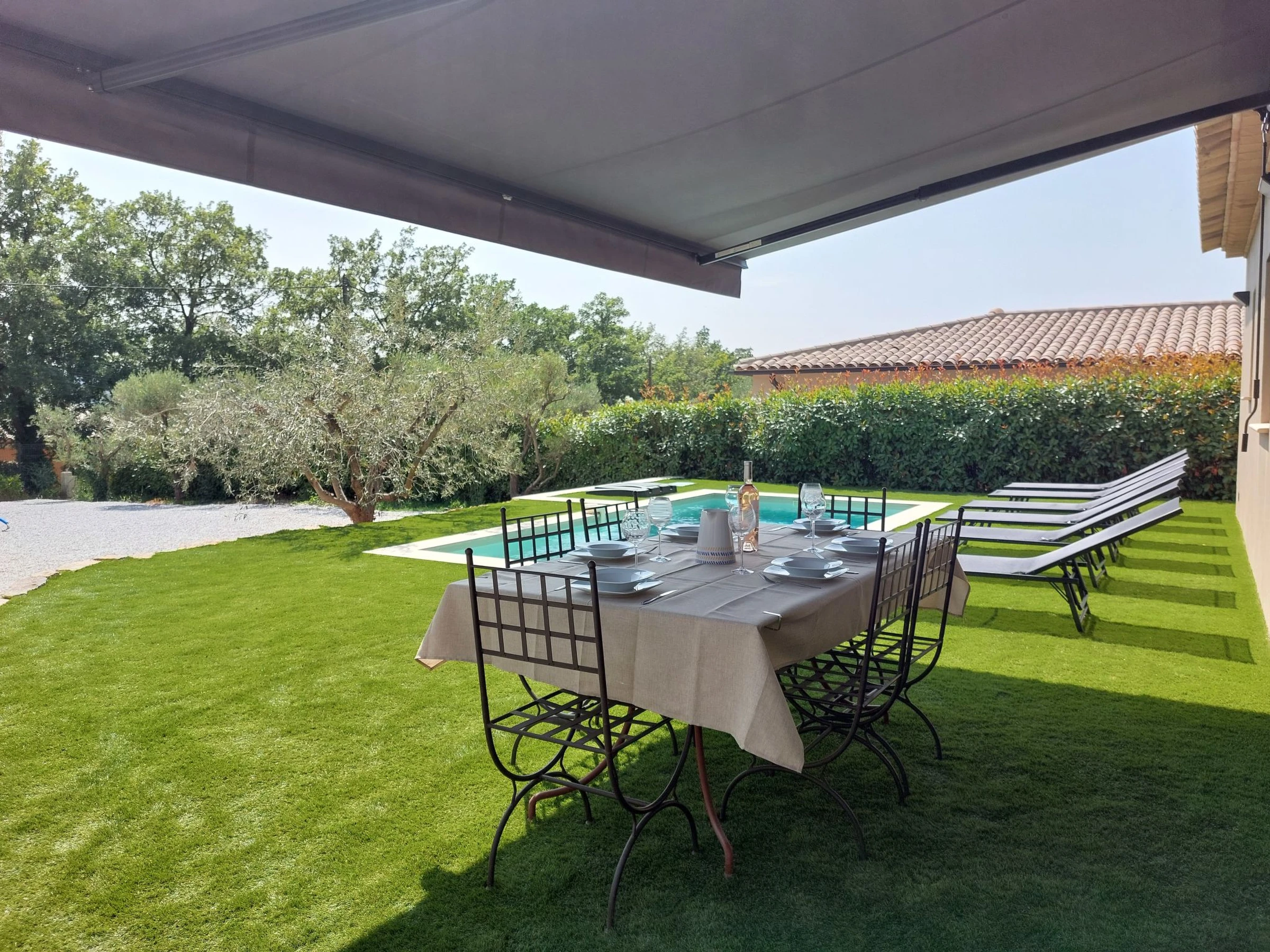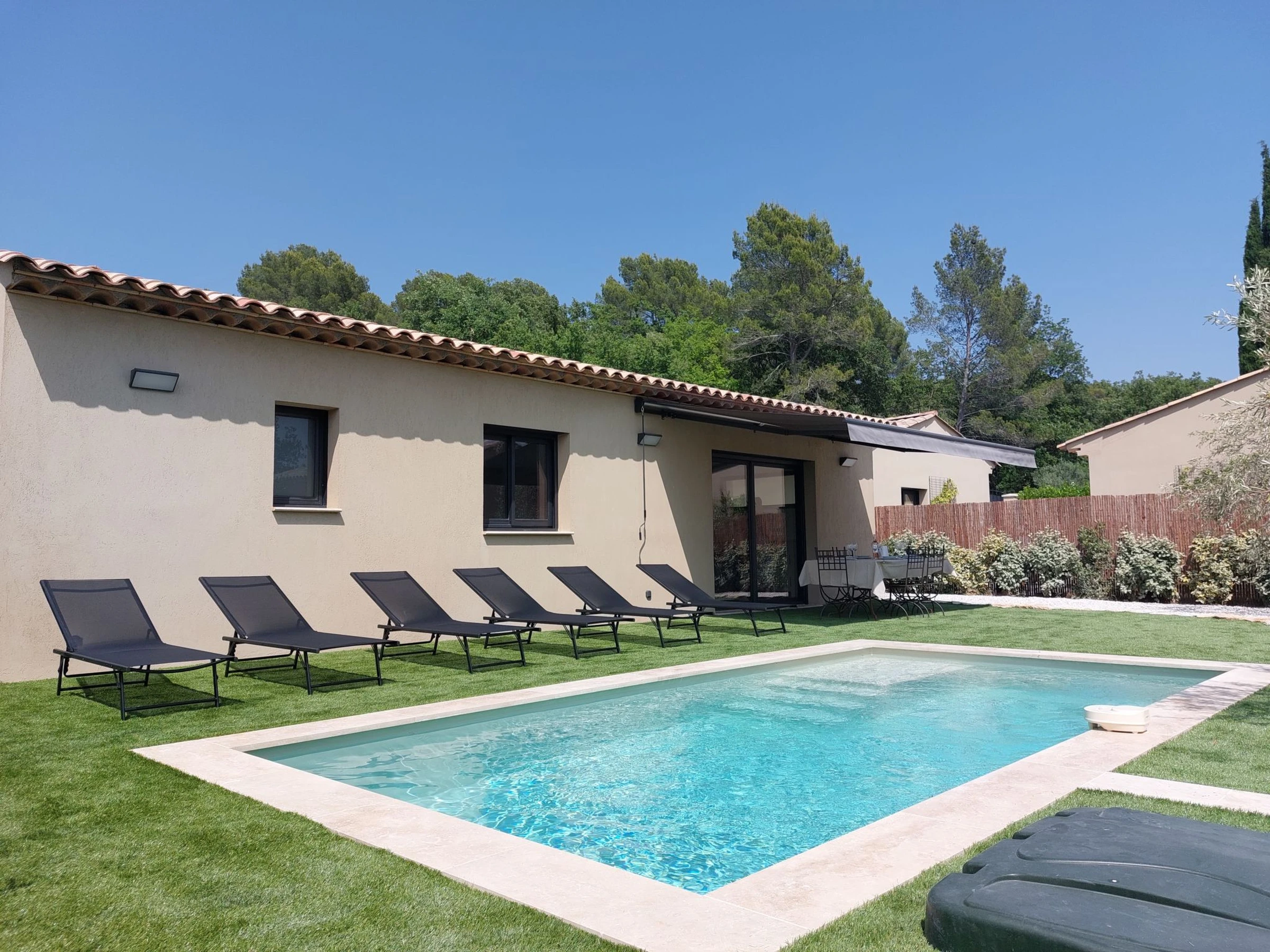 À 3 km du centre de Callas, à 12 km du centre de Draguignan, à 32 km du centre de Fréjus, dans un quartier résidentiel, à 32 km de la mer, à 26 km du lac. A usage privé: terrain 800 m2 (clôturé), piscine rectangulaire (6 x 3 m, profondeur 145 cm, disponibilité saisonnière: [hidden] - [hidden] avec alarme de sécurité. Place de parking (pour 2 voitures) sur le terrain. Magasin d'alimentation 3 km, supermarché 1400 km, restaurant 3 km, bar 3 km, boulangerie 3 km, café 3 km, arrêt de bus 1.2 km, gare ferroviaire "Les Arcs Draguignan" 23 km, plage de sable "Fréjus Plage" 32 km. Terrain de golf (18 trous) 15 km, centre équestre 3.2 km. Attractions à proximité: Gorges du Verdon, Grottes de Villecroze, La cascade de Sillans, Cotignac, Tourtour, Abbaye du Thoronet. Les lacs connus sont facilement accessibles: Lac de Sainte Croix 48 km, Lac de Saint Cassien 26 km. Région de randonnées: Gorges de Pennafort, Gorges du Verdon, Gorges du Blavet. Le propriétaire n'accepte pas les groupes de jeunes.