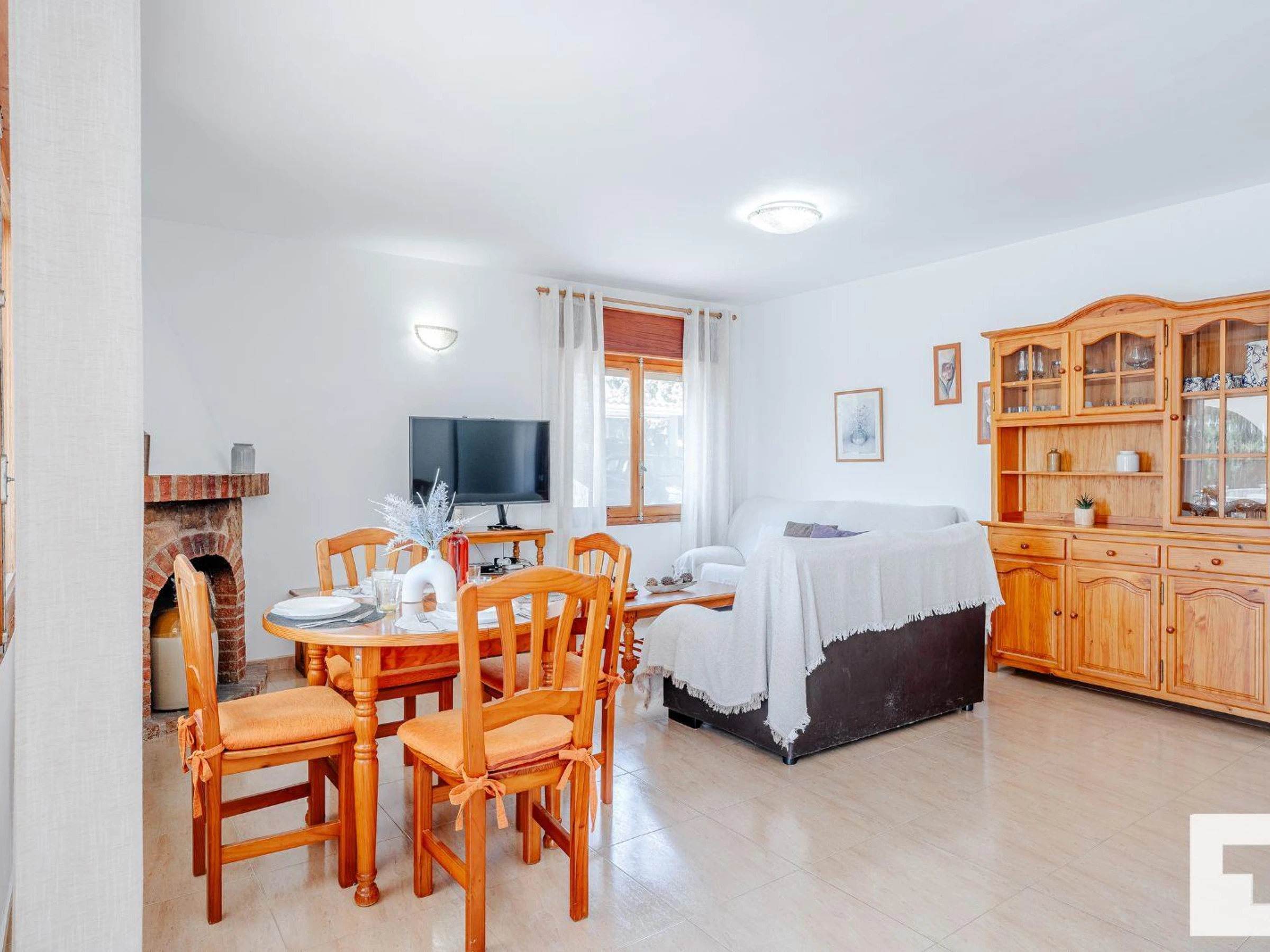 📺 Spacieux salon-salle à manger de style rustique avec cheminée.