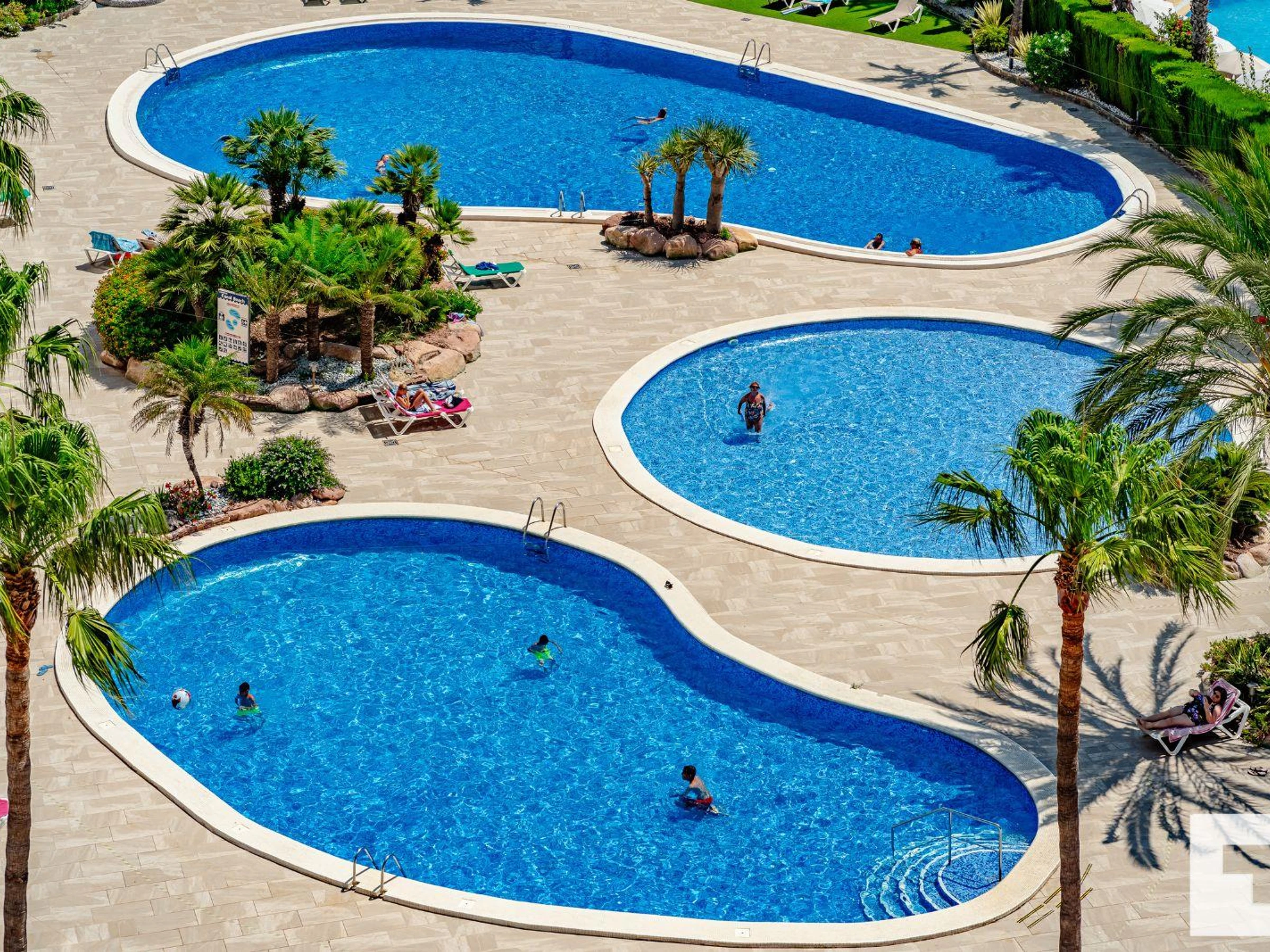 Doté d’un grand espace commun paysagé et de trois piscines, cet appartement