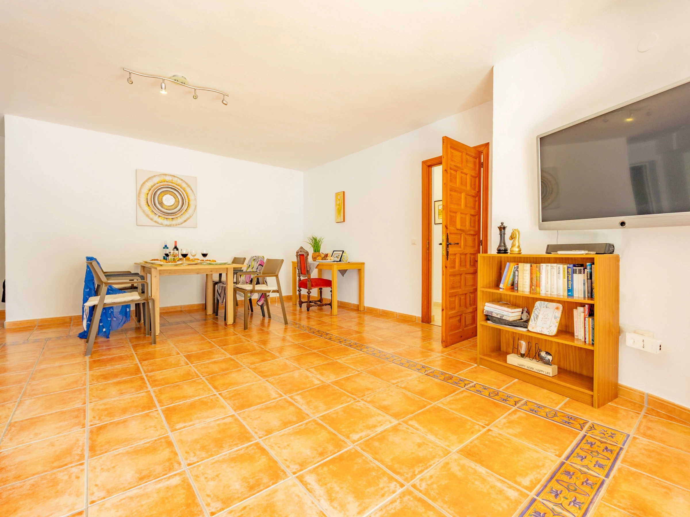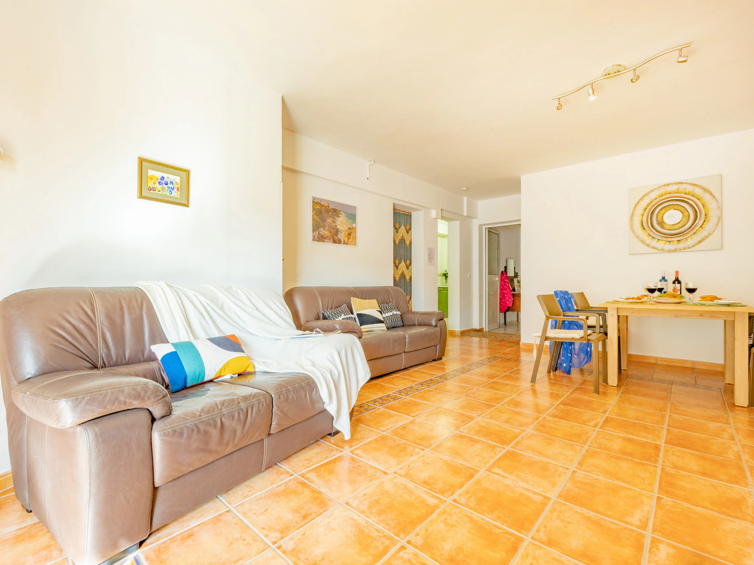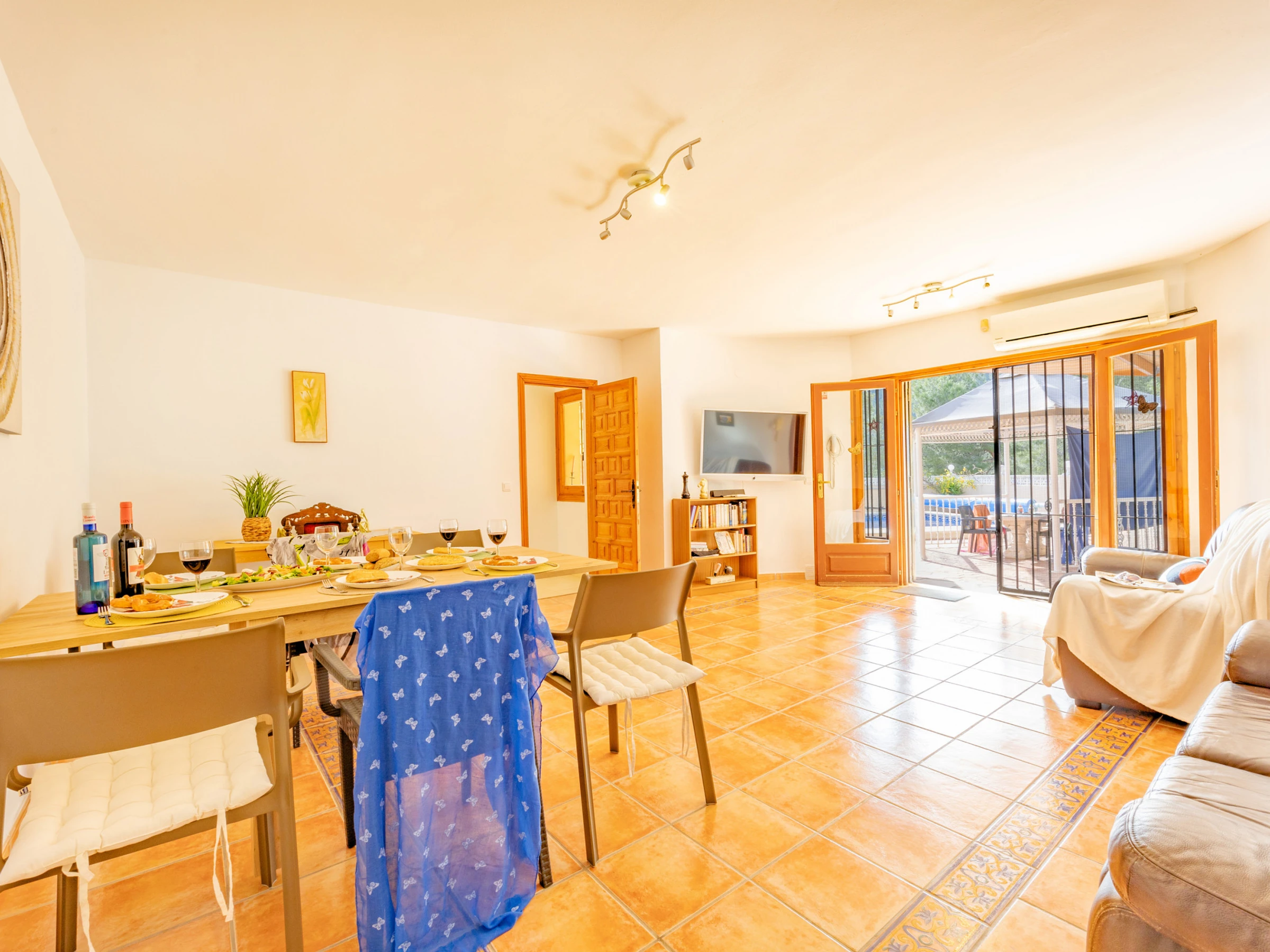 INTÉRIEUR : la villa dispose d'un salon spacieux équipé de TV SAT/TDT et d'un accès à la piscine. De là, vous pouvez accéder au jardin, aux terrasses, au barbecue et à la zone pelouse avec une vue magnifique sur Calpe et la mer Méditerranée. La cuisine indépendante, entièrement équipée avec cuisinière à gaz et lave-vaisselle. Deux chambres avec deux lits simples (chacune avec climatisation) et la troisième chambre avec DEUX lits doubles (avec ventilateur et sans climatisation). Une salle de bain attenante avec baignoire et une salle de bain séparée avec baignoire.
