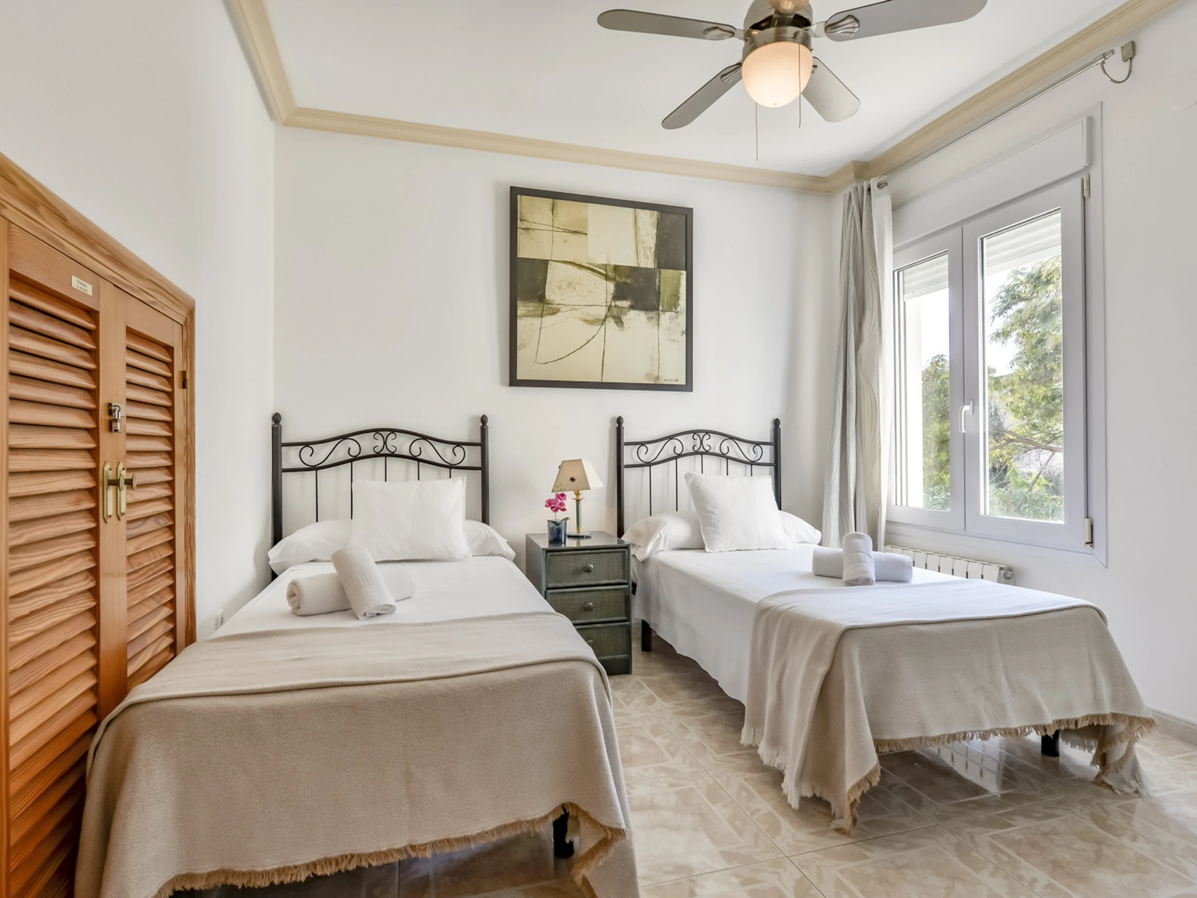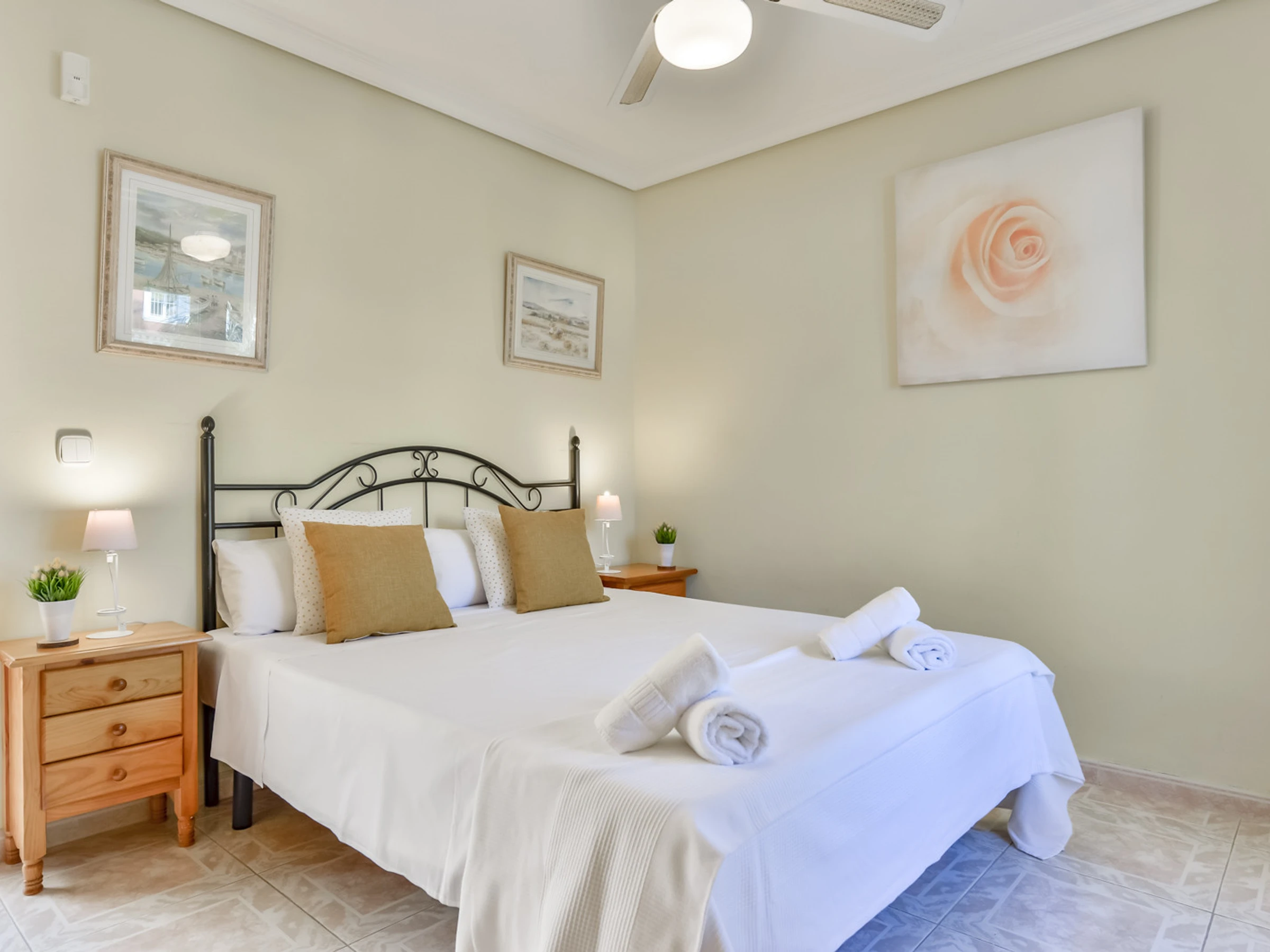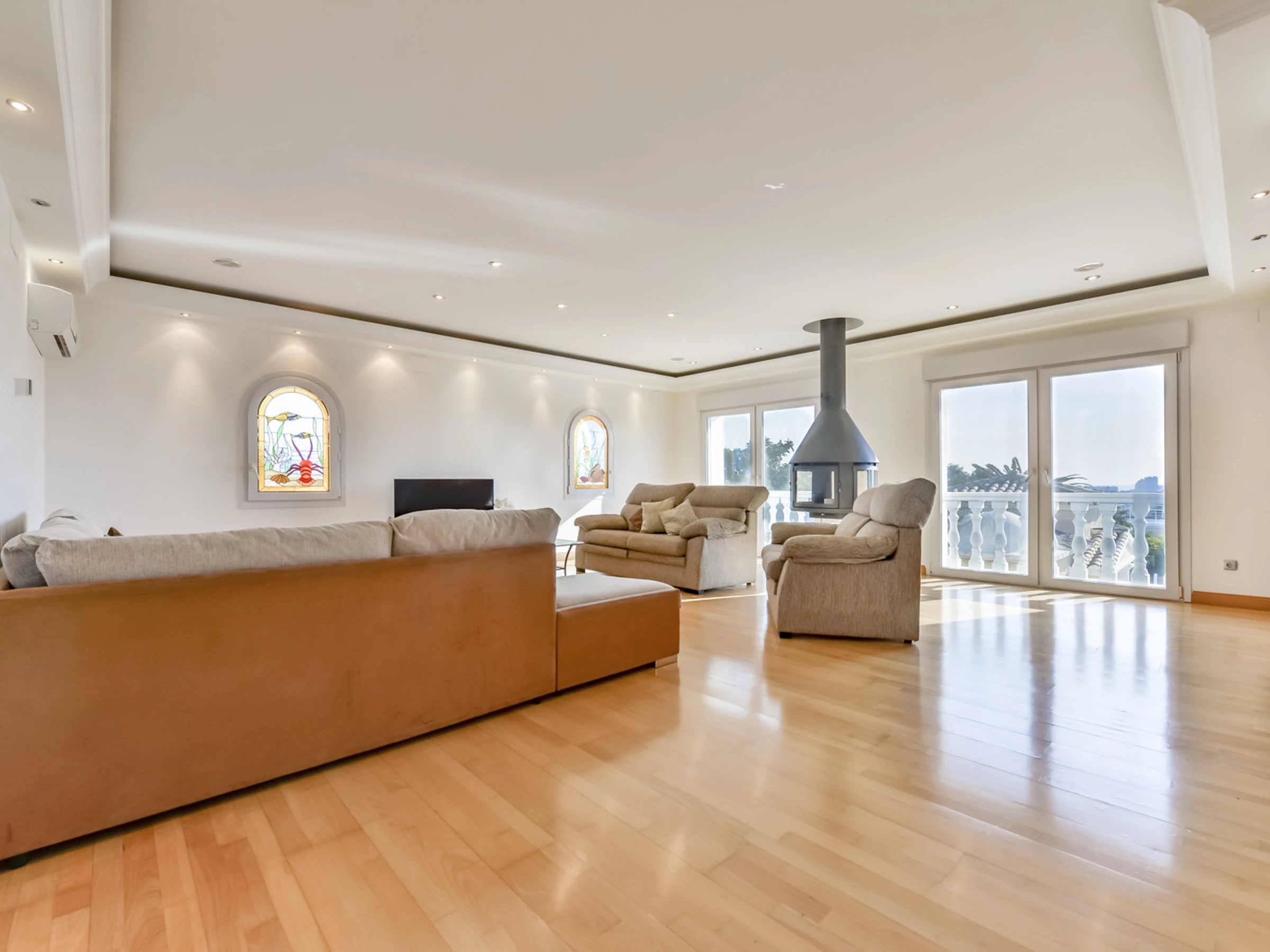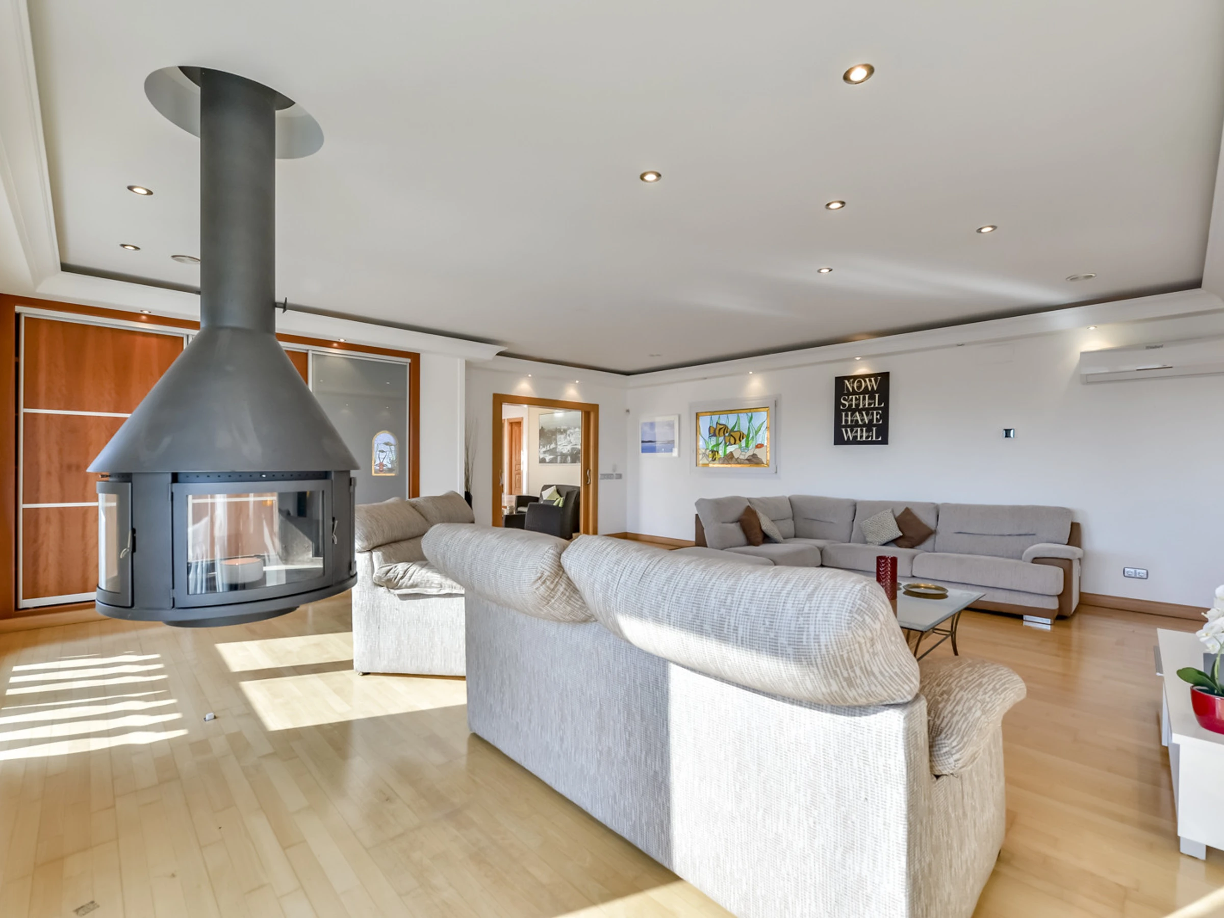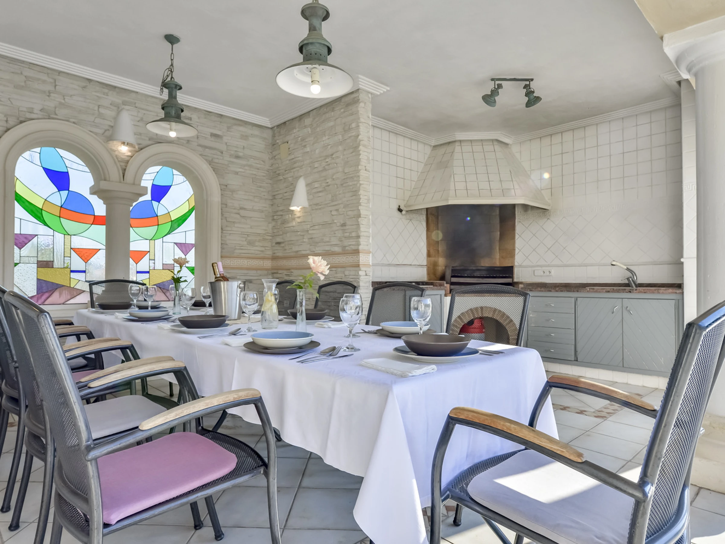 Jardin, mobilier de jardin, terrain clôturé, terrasse, barbecue, cheminée décorative, fer à repasser, accès Internet gratuit (wifi), chauffage central, piscine privée, parking couvert dans le même bâtiment, 4 ventilateurs, 1 TV, TV satellite.
