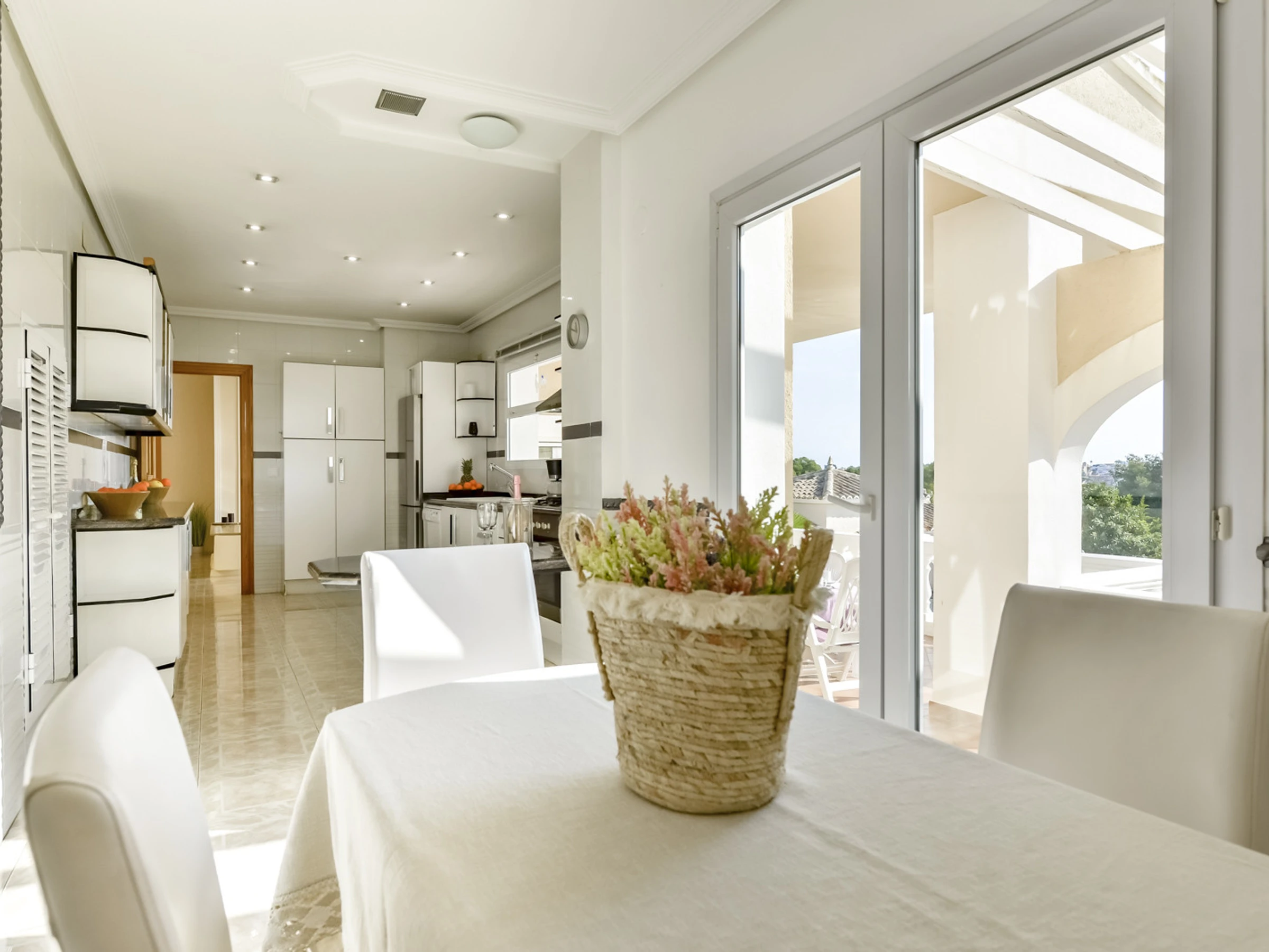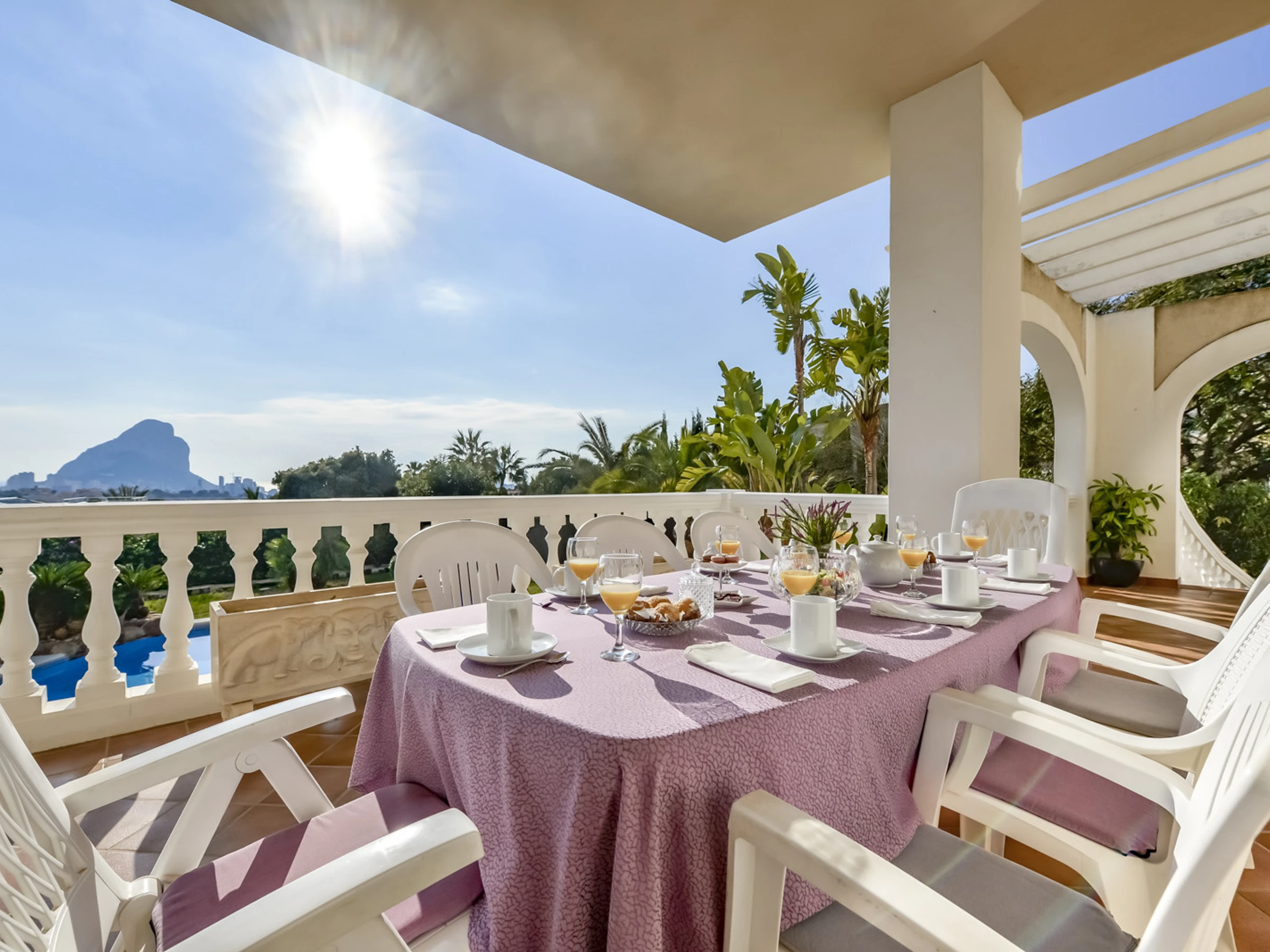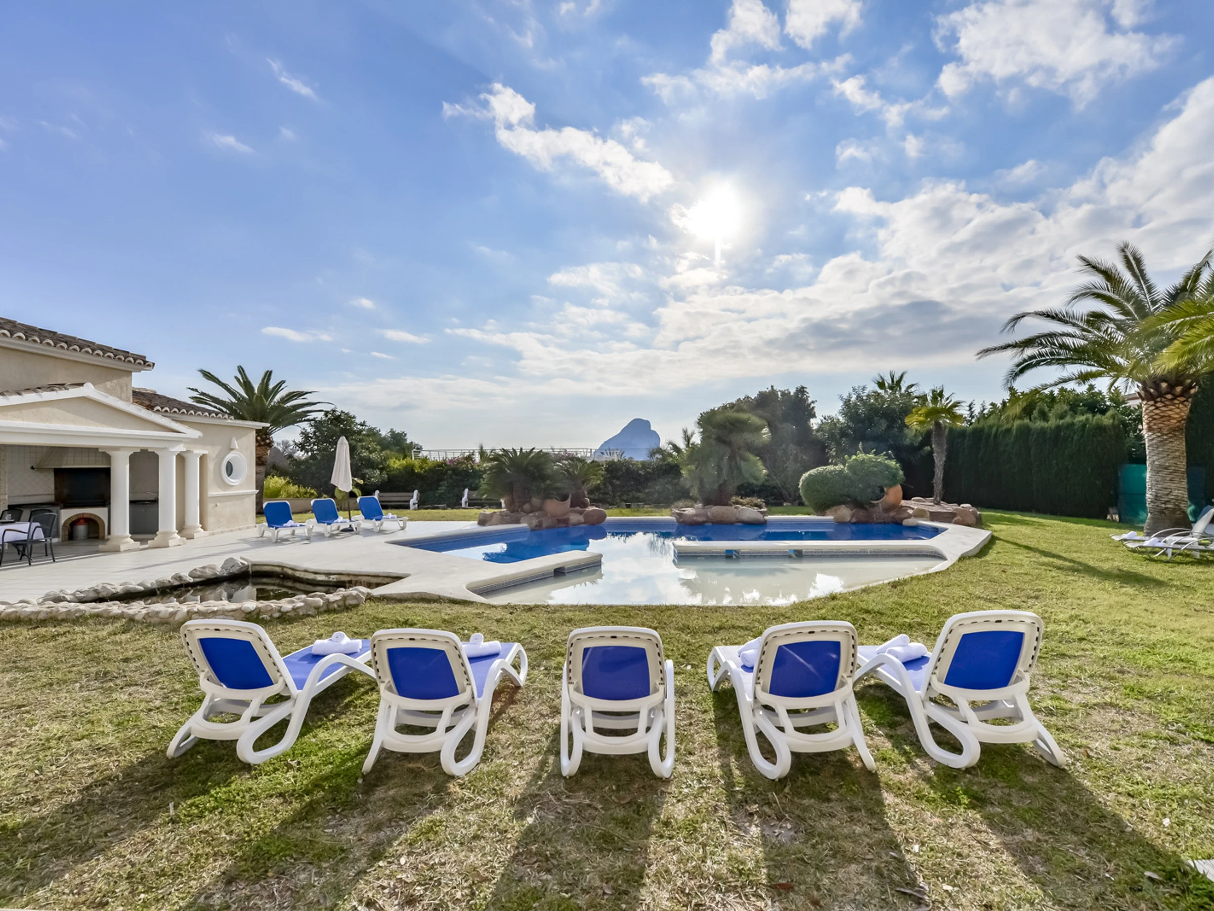 La villa Ifach dispose d'un beau jardin avec beaucoup d'espace et plusieurs terrasses où vous pourrez profiter au maximum de l'extérieur, d'un bel espace barbecue avec une table pour manger, et d'une cuisine d'été où vous pourrez profiter au maximum de votre séjour dans la villa. La piscine privée est de 8/5 et dispose d'une zone de chaises longues pour bronzer, d'une toilette de courtoisie pour que vous n'ayez pas à entrer dans la maison si vous êtes dans la zone de la piscine et d'une pièce avec la machine à laver.