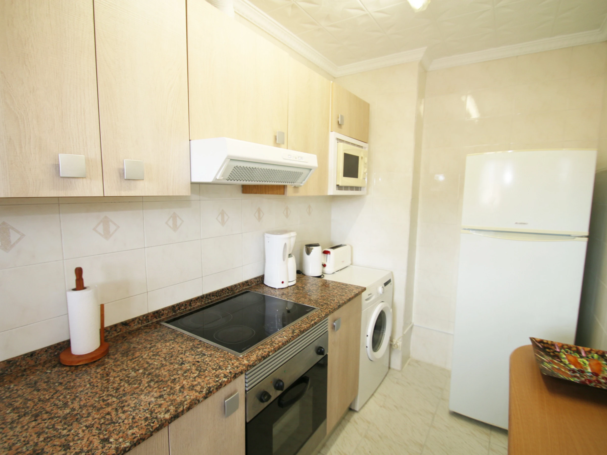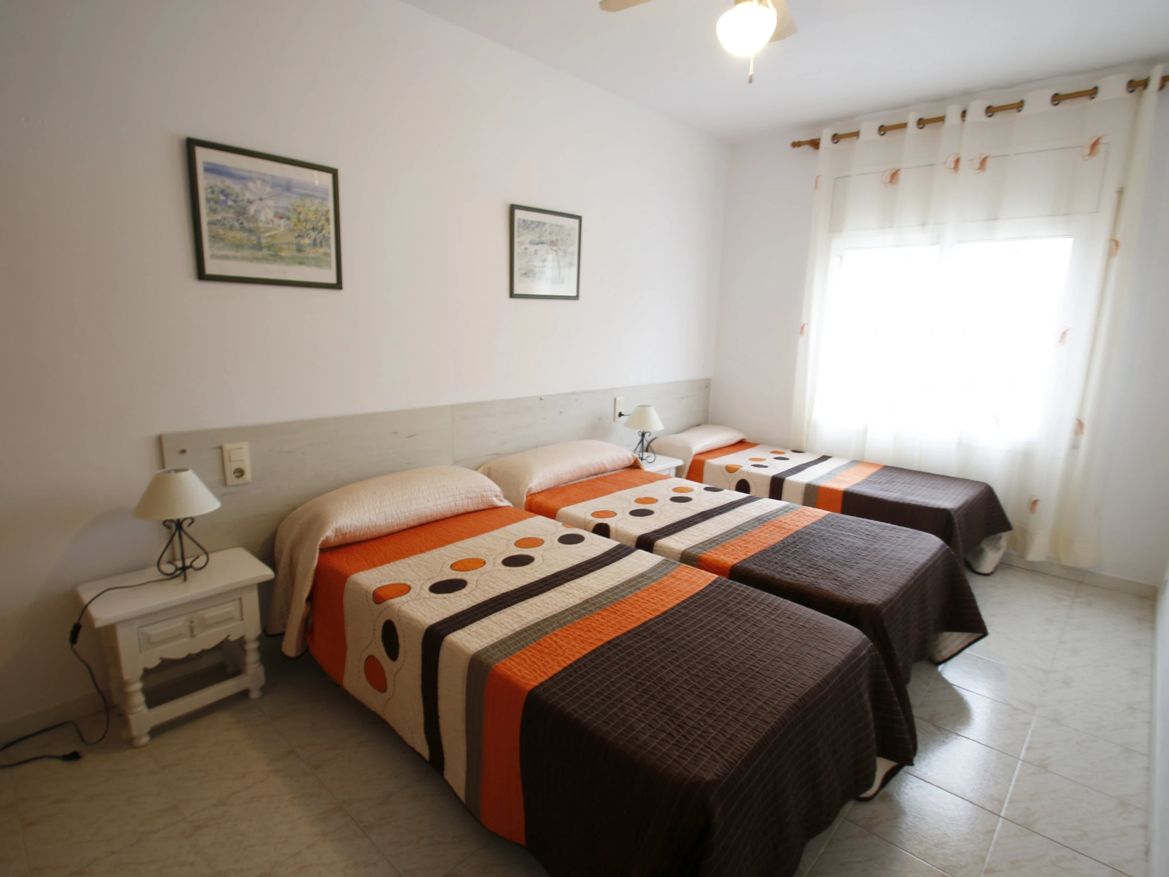 Pour vos vacances sur la Costa Dorada, nous vous proposons ce magnifique appartement de vacances à Cambrils, d'une capacité de 6 personnes, très confortable et bien équipé, dans un quartier résidentiel calme, à seulement 400 mètres de la magnifique plage de sable de La Llosa, et à 10 minutes à pied du port et de la zone commerciale de Cambrils, et à quelques km de Salou et Port Aventura. Le confortable appartement de vacances est situé au premier étage et se compose d'une chambre double, une chambre triple, un salon-salle à manger avec un canapé-lit, une salle de bains, une cuisine entièrement équipée et une agréable terrasse. Le complexe résidentiel Casa Rosales est entouré d'un jardin avec de l'herbe et des arbres fruitiers, avec une piscine commune avec des hamacs. La logement est très bien équipée pour passer des vacances confortables: climatisation partout, lave-vaisselle, lave-linge, barbecue, télévision par satellite, Internet WiFi gratuit dans toute la maison et parking.