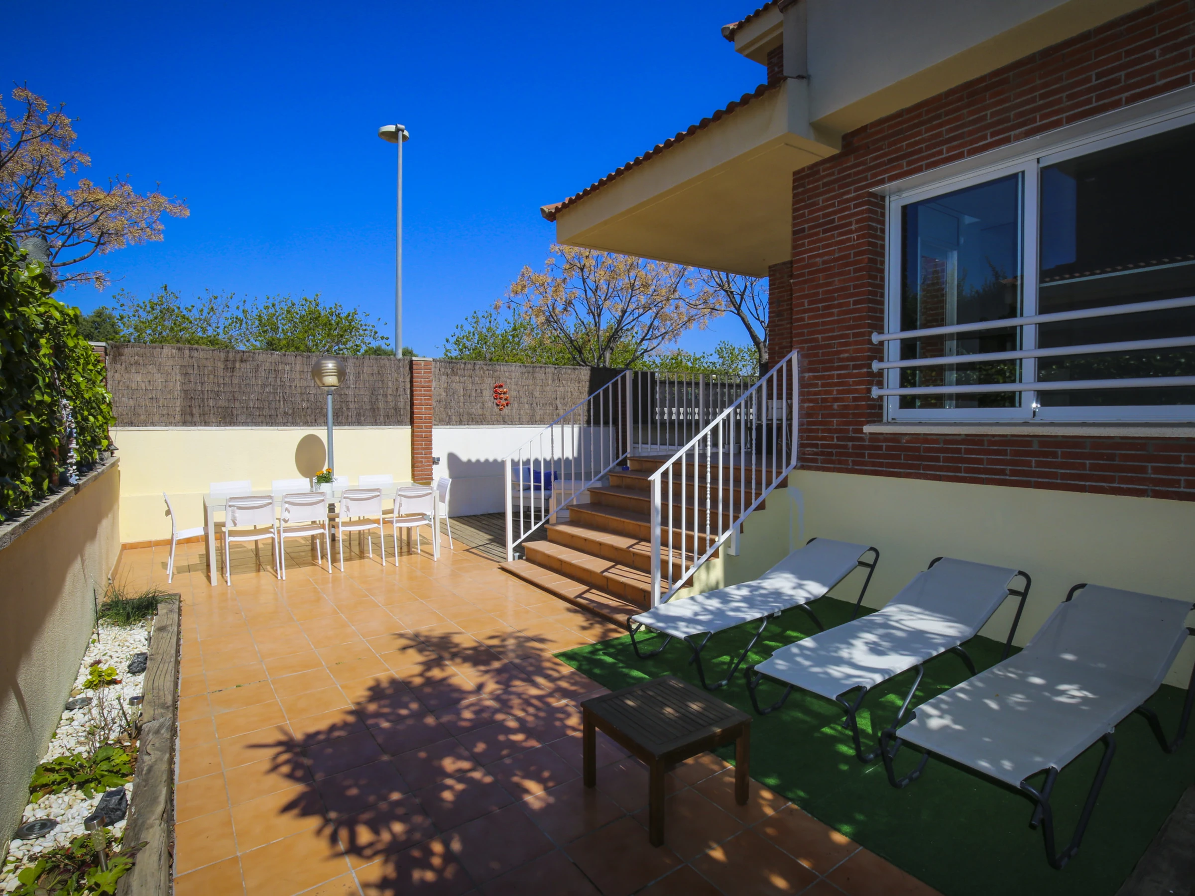 Terrasse extérieure avec mobilier de jardin et barbecue, idéale pour des repas en plein air sous le soleil méditerranéen ☀️.