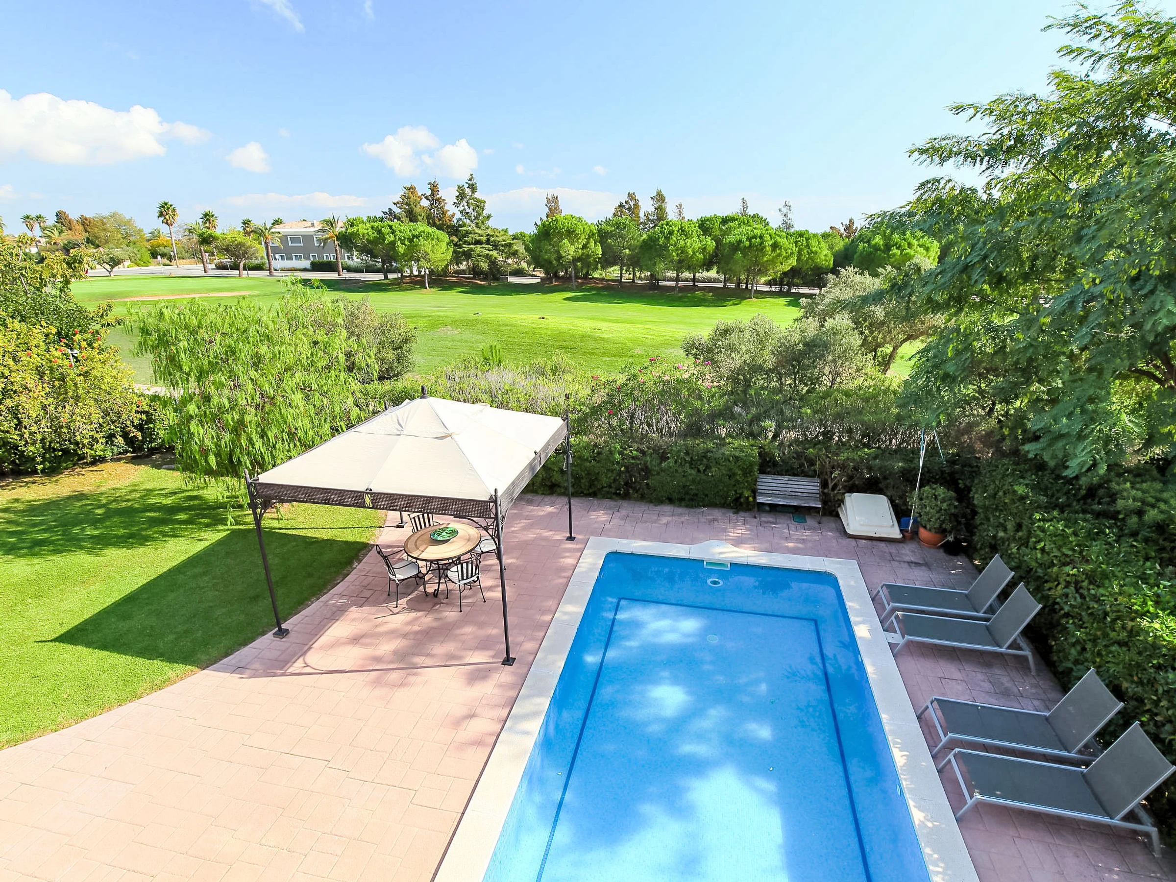 "Bertoni Golf & Sea", villa 5 pièces 185 m2 sur 2 niveaux. Logement idéal pour 7 adultes + 2 enfants. Spacieux et clair, aménagement luxueux et de style: 1 chambre 16 m2 avec 1 grand-lit (140 cm, longueur 200 cm), bain/douche/WC, Télévision numérique et air-conditionné avec WC séparés. Salon 14 m2 avec TV (écran plat), air-conditionné. Séjour/salle à manger 40 m2. Sortie sur le jardinet, sur la piscine. Grande cuisine 20 m2 (lave-vaisselle, 4 plaques à induction, grille-pain, bouilloire électrique, micro-ondes, congélateur, cafetière électrique, Capsules pour machine à café (Nespresso)) avec table pour les repas, air-conditionné et volet roulant électrique. Sortie sur le jardinet. Pas de chauffage. À l'étage supérieur: 1 chambre 20 m2 avec 1 grand-lit (140 cm, longueur 200 cm), bain/douche/WC et air-conditionné. Sortie sur la terrasse. 16 m2, 1 chambre avec 1 grand-lit (140 cm, longueur 200 cm). 16 m2, 1 chambre avec 1 lit gigogne (2 pers.) avec bain/douche/WC. 2 grandes terrasses 21 m2, grand, pelouse, grande tonnelle. Meubles de terrasse, barbecue, chaises longues (6), loggia, place pour s'asseoir. Vue sur la piscine, le jardin et Terrain de golf. A disposition: lave-linge, sèche-linge, chaise haute pour enfant, lit bébé jusqu'à 3 ans, sèche-cheveux. Internet (Connexion WIFI, gratuit). Veuillez noter: maison non-fumeur. [hidden] // Reg. Nr.: ESFCTU[hidden][hidden]0000000[hidden]-198
