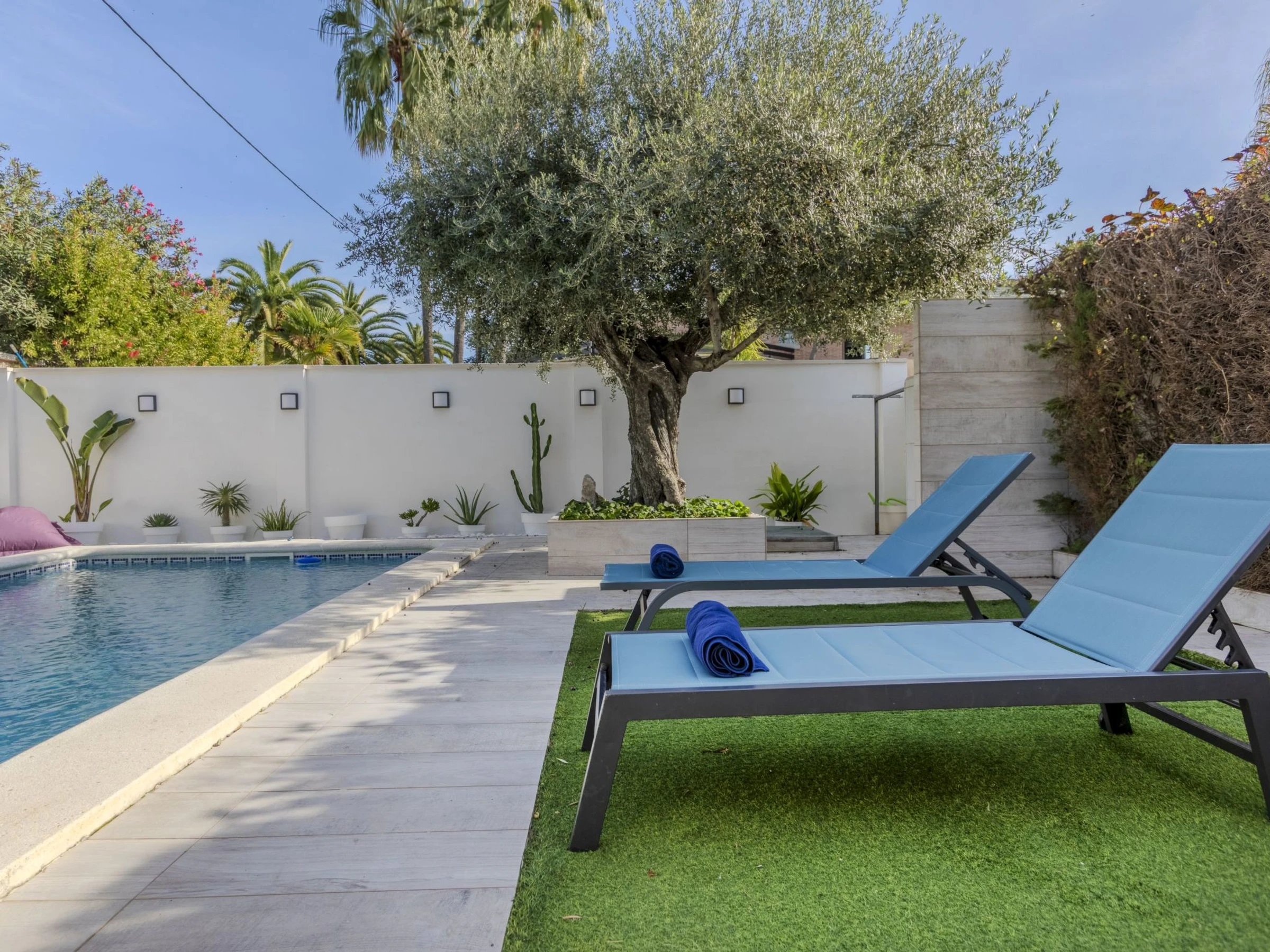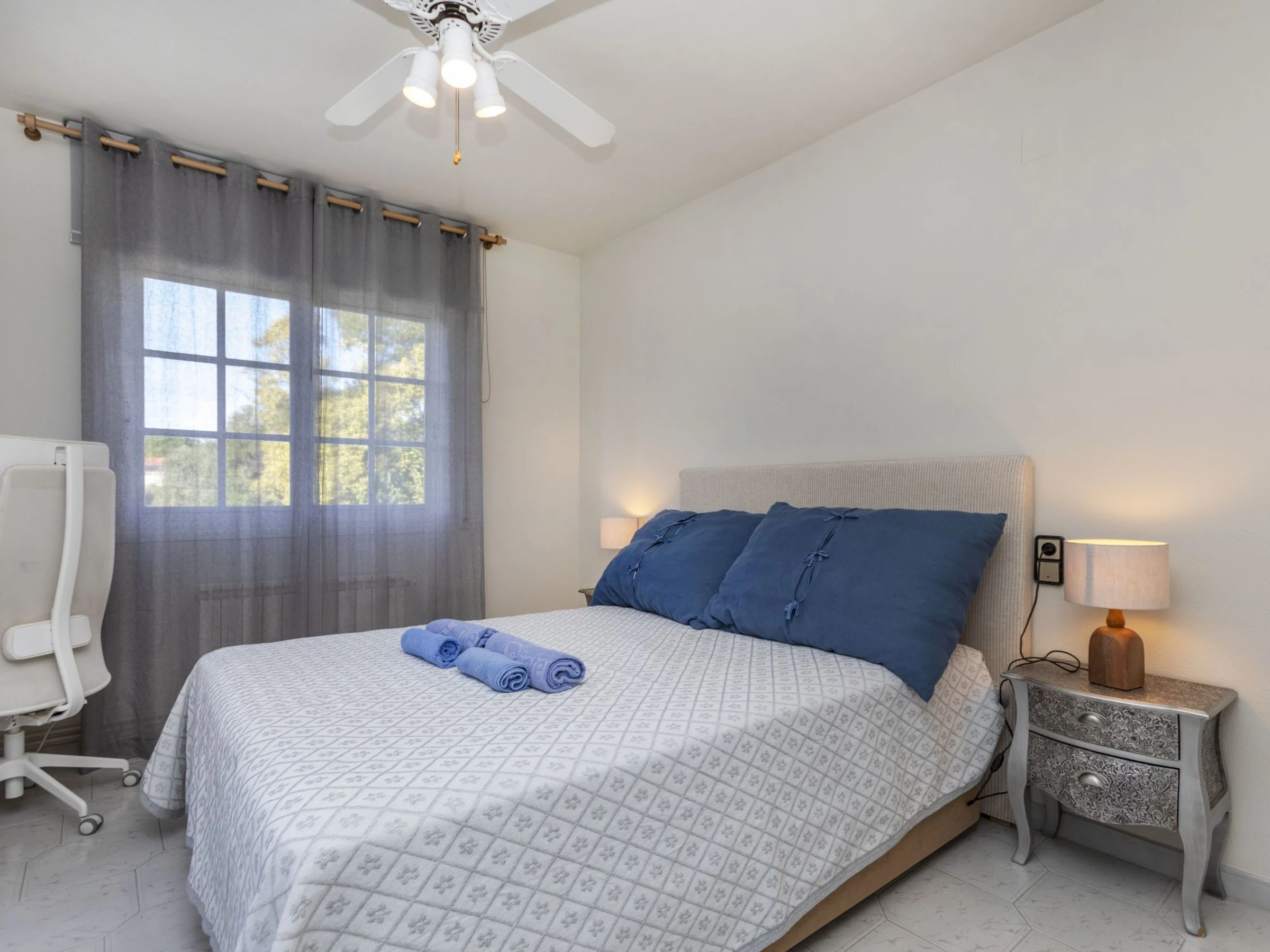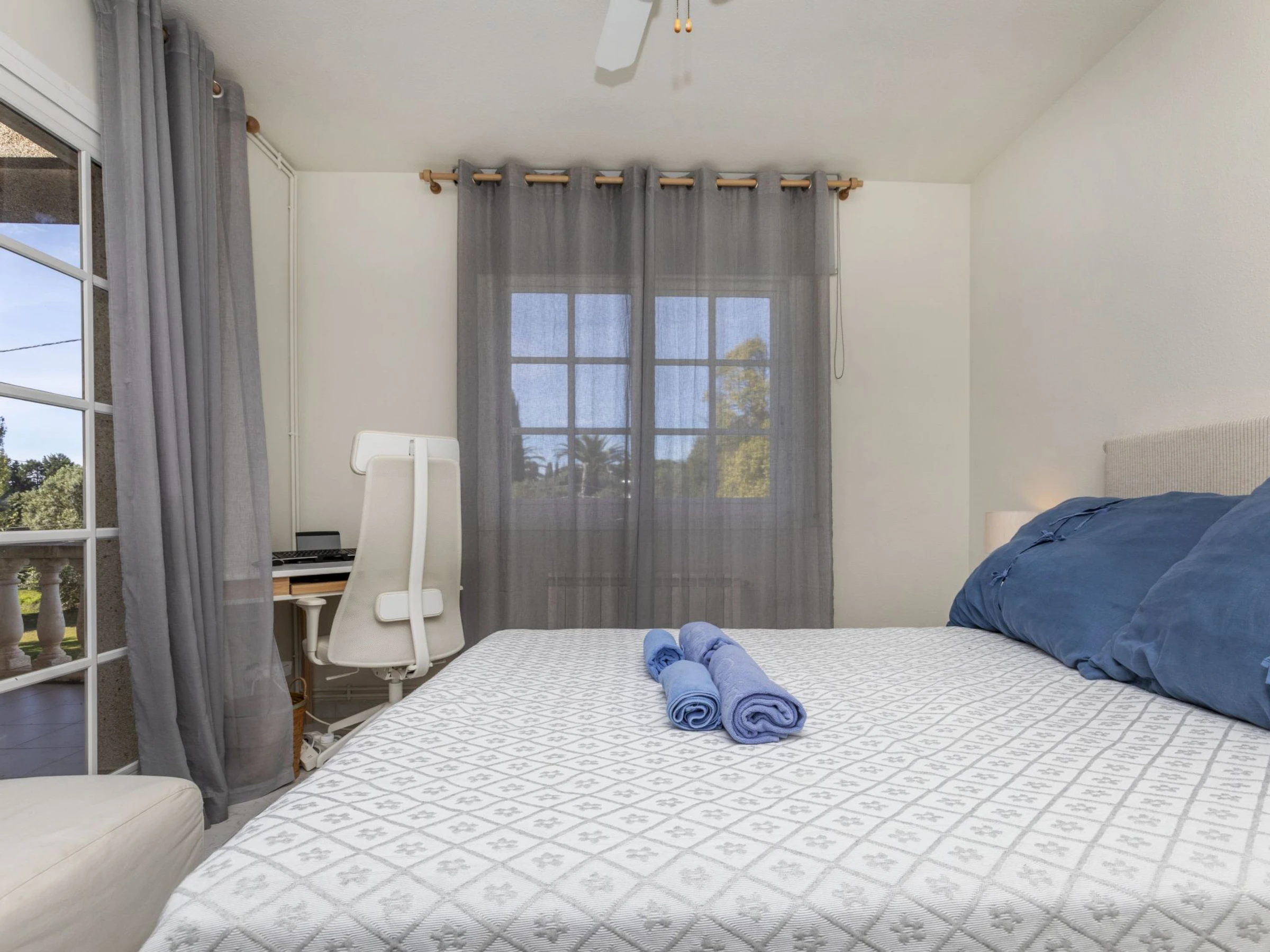 "El Olivo", villa 5 pièces 216 m2. Spacieux et clair, aménagement confortable: séjour/salle à manger avec Télévision numérique et écran plat. Sortie sur le jardinet. Grande cuisine (four, lave-vaisselle, 4 plaques vitrocéramiques, grille-pain, bouilloire électrique, micro-ondes, cafetière électrique, Capsules pour machine à café (Nespresso) (NON INCLUSES)). Bain/bidet/WC, double vasque. Air-conditionné, chauffage à air chaud. À l'étage supérieur: 1 chambre avec 1 grand-lit (150 cm, longueur 190 cm), douche/bidet/WC, air-conditionné et ventilateur. Sortie sur la loggia. 1 chambre avec 1 grand-lit (150 cm, longueur 190 cm), bain/bidet/WC, air-conditionné et ventilateur. 1 chambre avec 2 lits (90 cm, longueur 190 cm), air-conditionné et ventilateur. 1 chambre avec 1 grand-lit (150 cm, longueur 190 cm), air-conditionné et ventilateur. Grande terrasse, jardinet, tonnelle. Meubles de terrasse, barbecue, chaises longues, place pour s'asseoir, réduit. Belle vue sur la piscine, le jardin et la localité. A disposition: lave-linge, sèche-linge, fer à repasser, chaise haute pour enfant, lit bébé, sèche-cheveux. Internet (Connexion WIFI, gratuit). Garage. Veuillez noter: adapté(e) aux familles. Maison non-fumeur. [hidden]-02