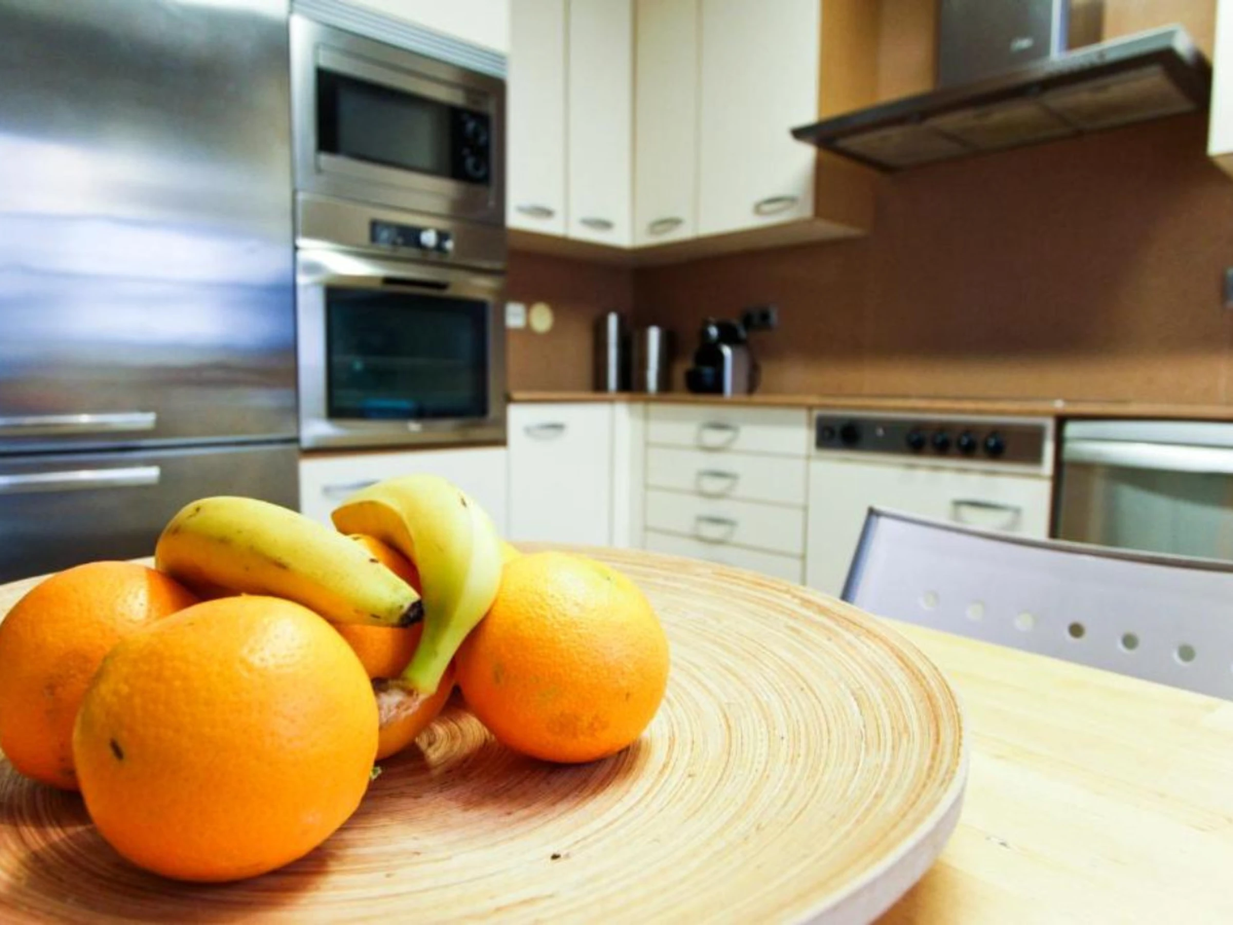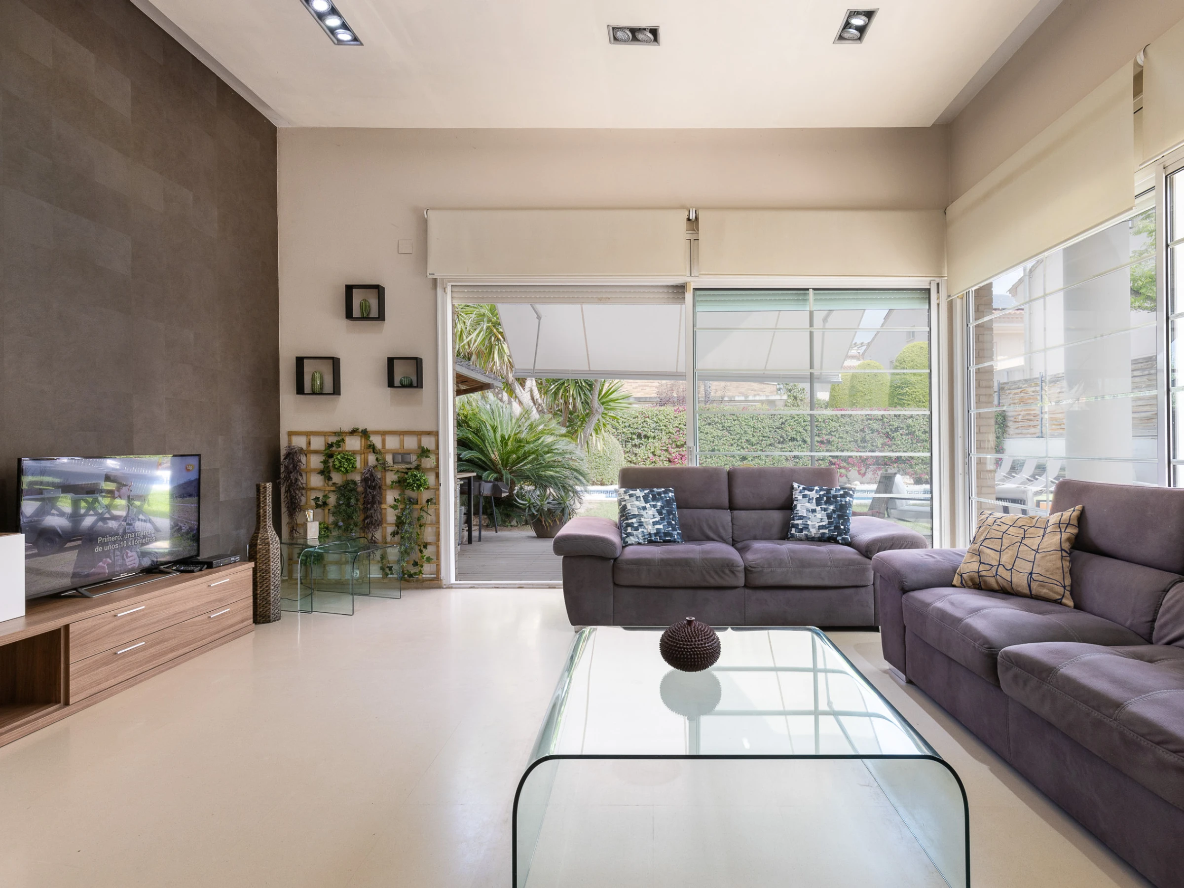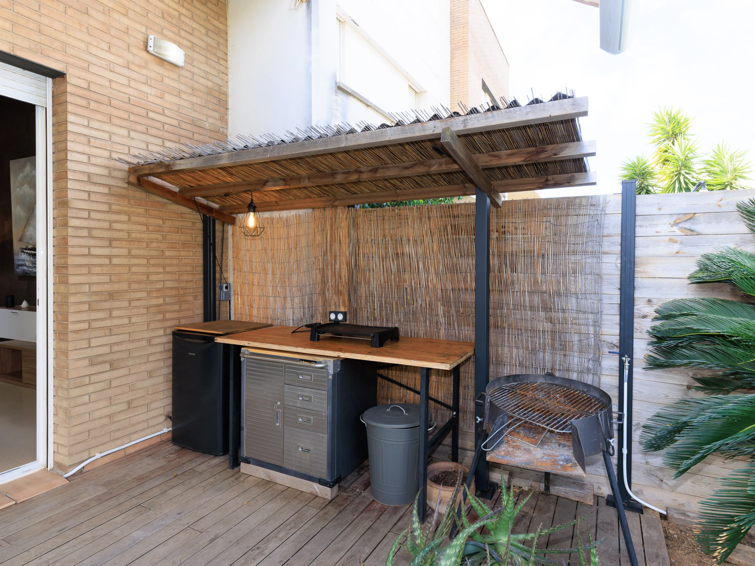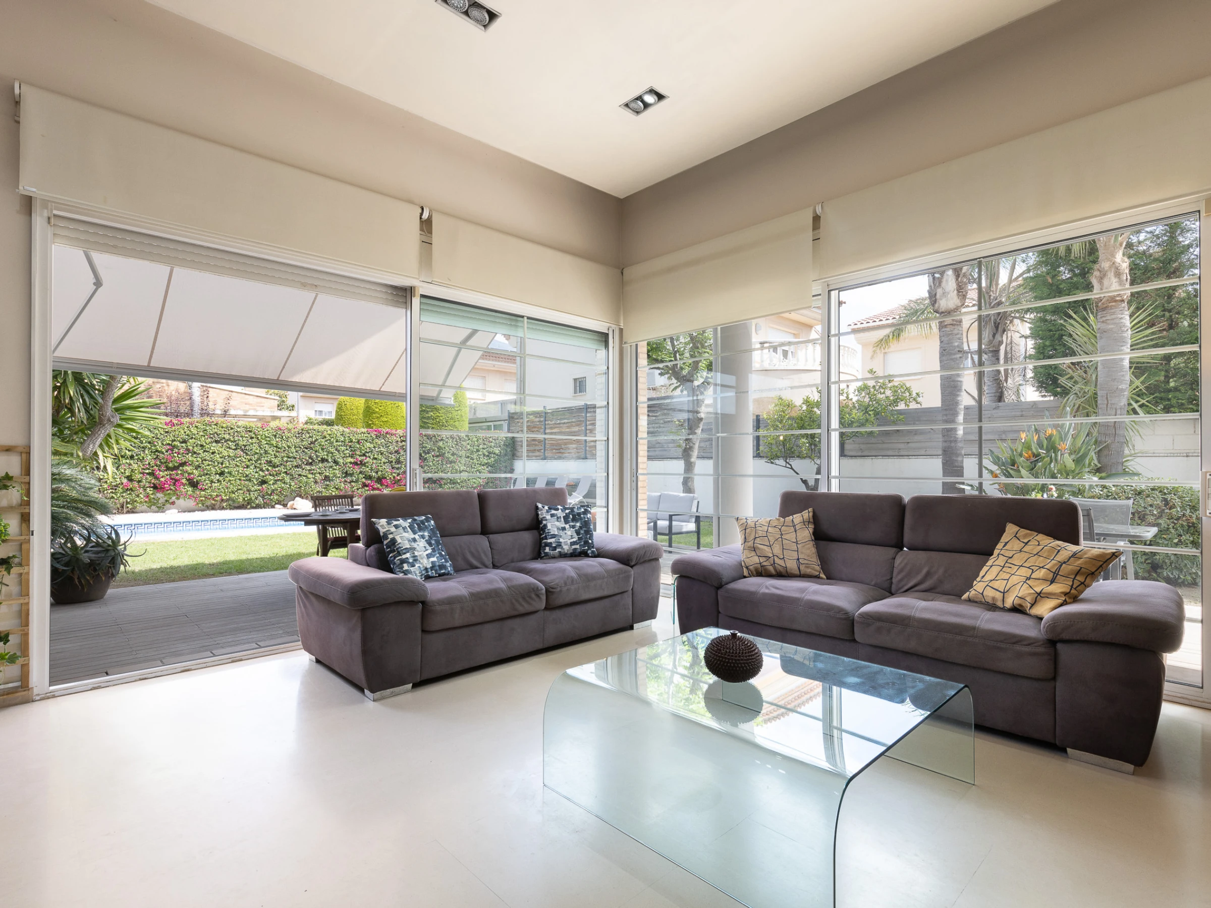 Grande villa avec des espaces spacieux, cuisine indépendante équipée, climatisation dans tout le logement, jardin privé avec mobilier extérieur, barbecue et terrasse.