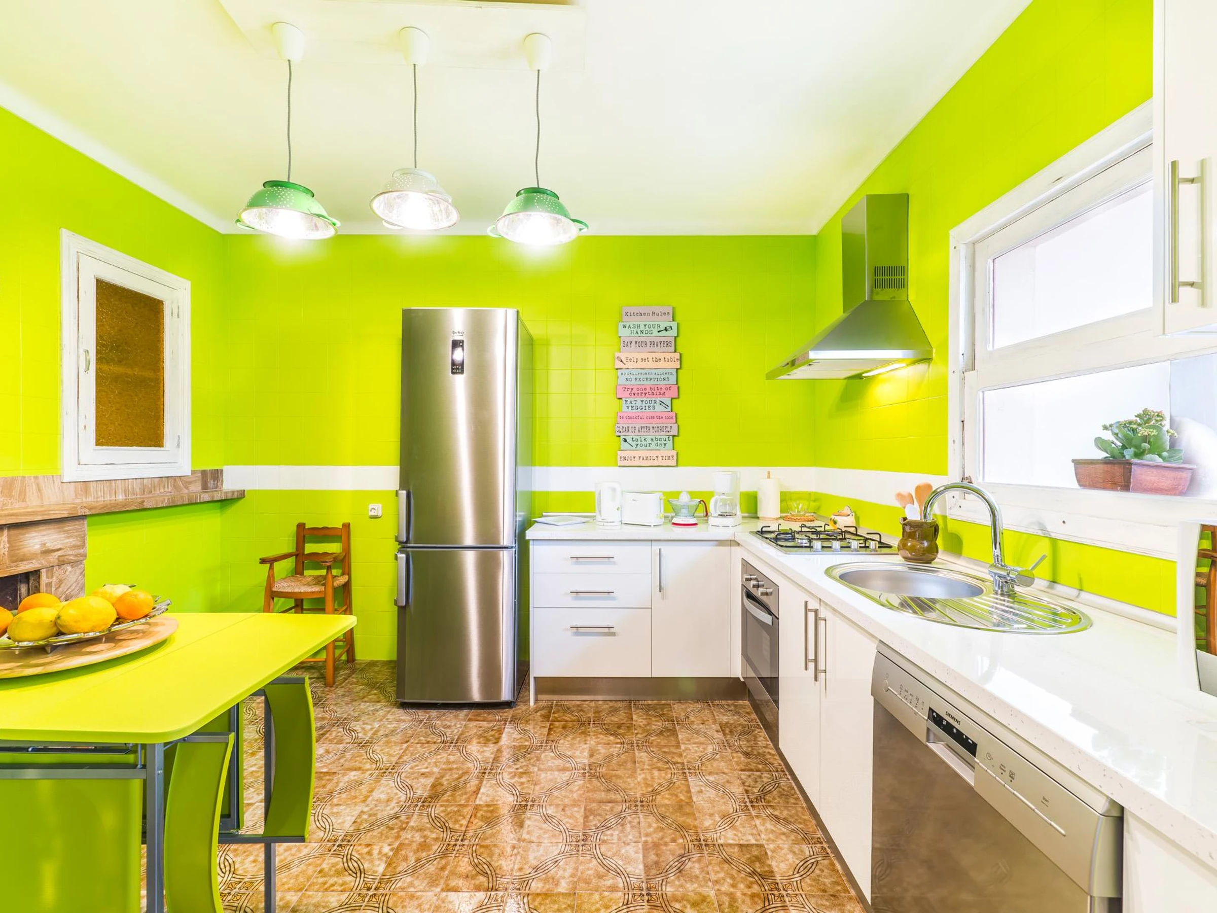La cuisine, est équipée avec réfrigérateur, micro-ondes, four, congélateur, lave-vaisselle, cafetière et grille pain.
