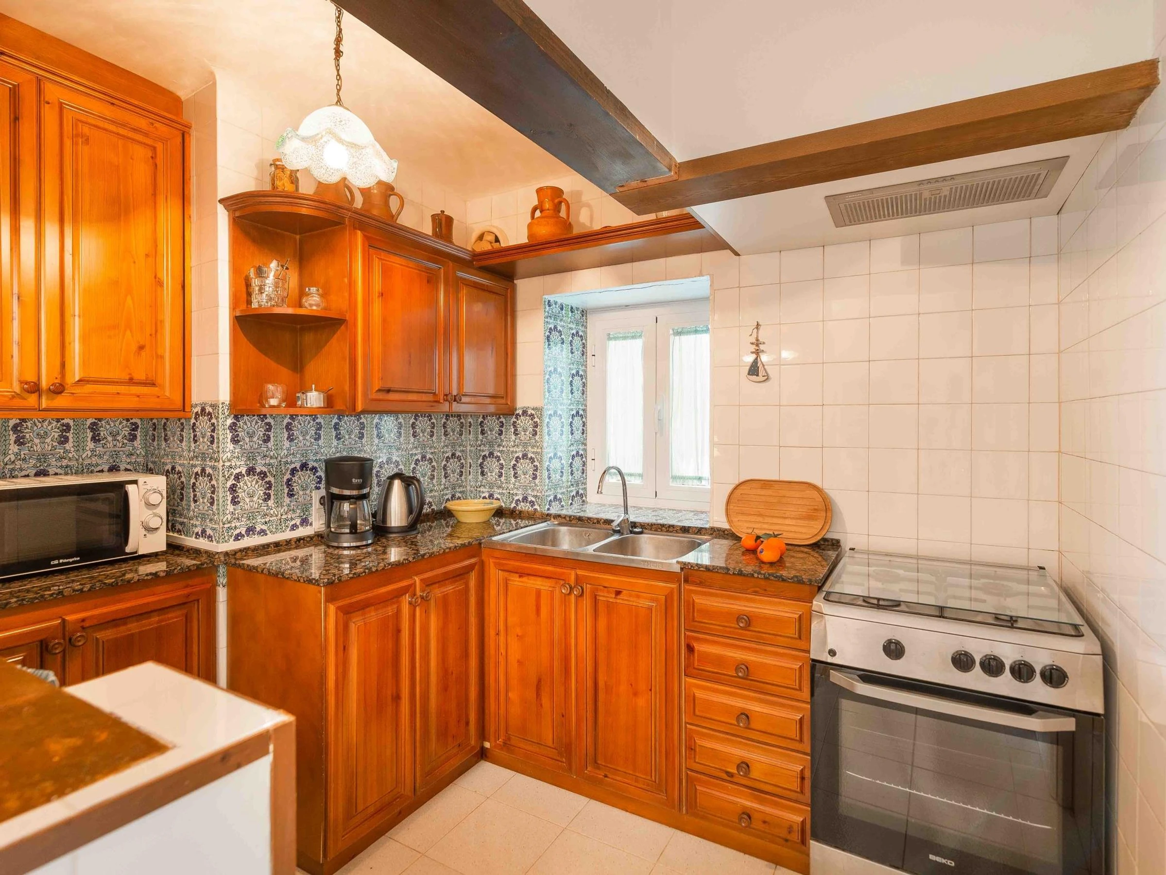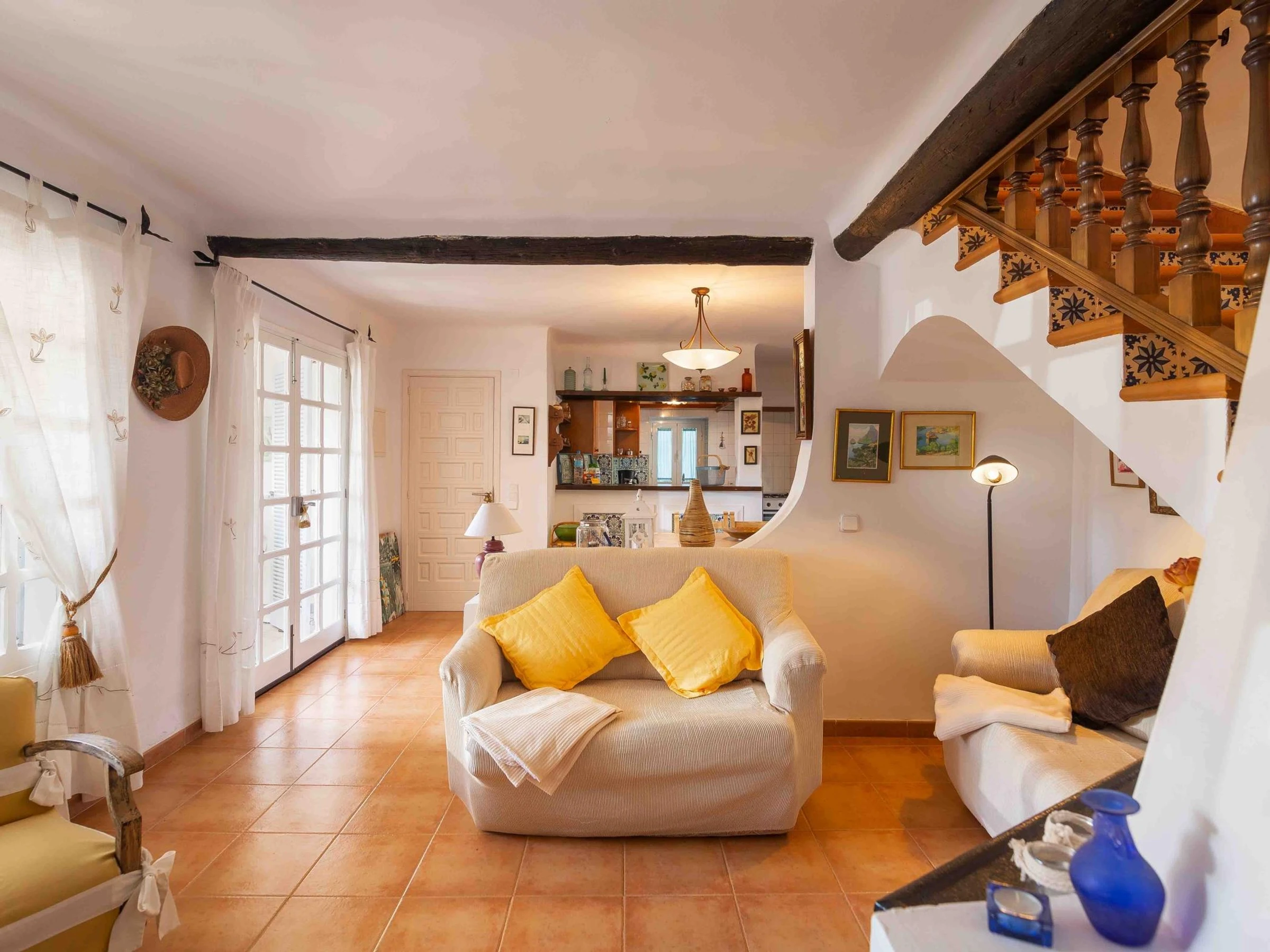 La maison comprend trois chambres doubles, deux salles de bains, une cuisine entièrement équipée, un salon spacieux et lumineux, ainsi qu'une buanderie. À l'extérieur, vous trouverez un jardin avec mobilier de jardin et barbecue. Climatisation, chauffage et télévision par satellite sont également fournis.