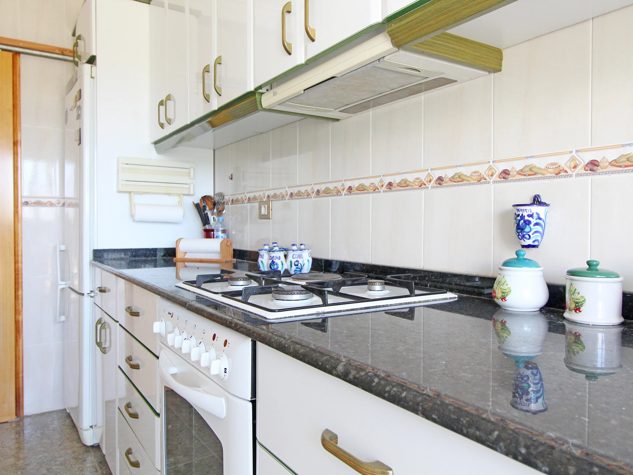 La cuisine indépendante, à vitrocéramique, est équipée avec réfrigérateur, micro-ondes, four, congélateur, vaisselle/couverts, ustensiles/cuisine, cafetière, grille pain, bouilloire et presse-agrumes.