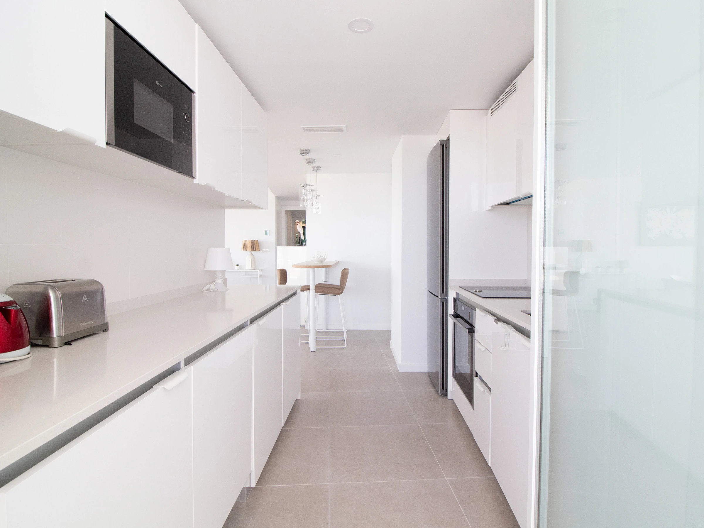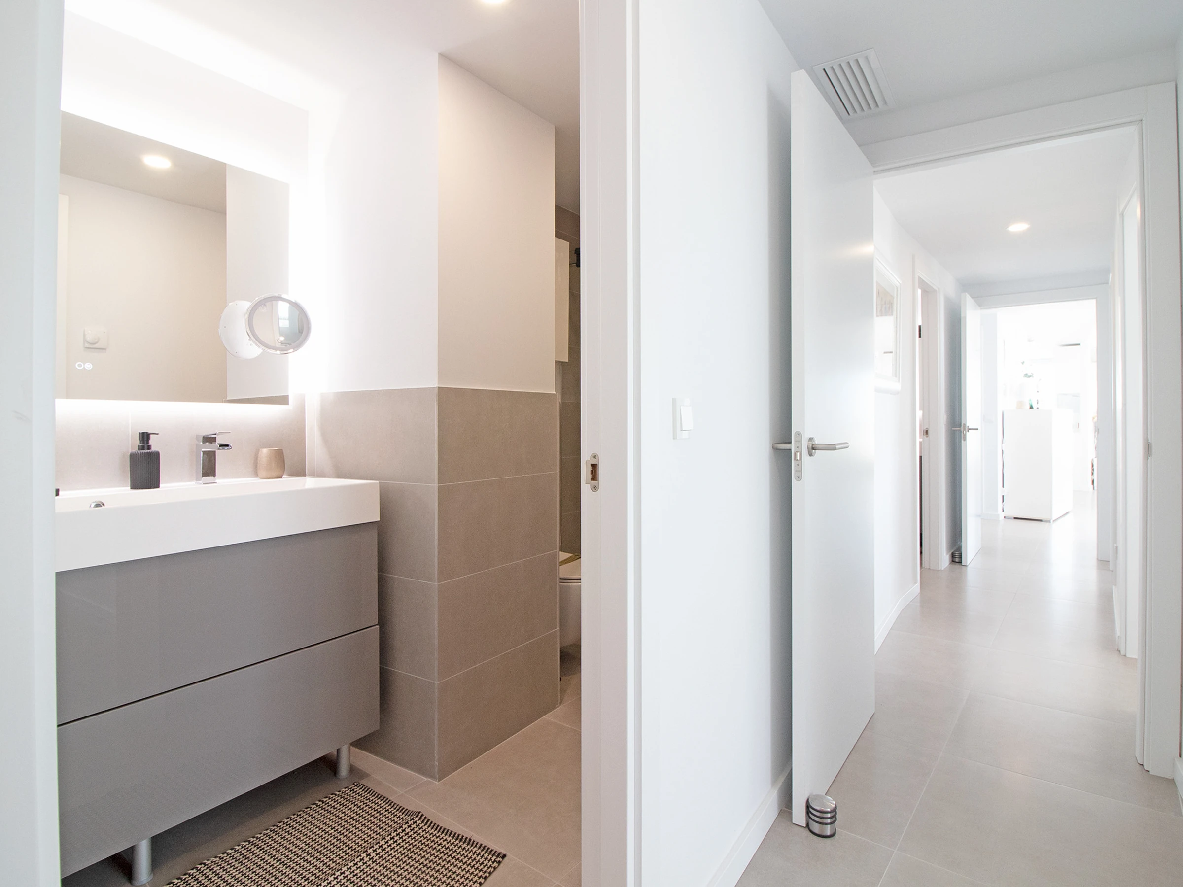 L'appartement comprend 3 chambres, 2 salles de bains et des toilettes. En outre, il dispose d'un salon avec de grandes fenêtres qui donnent accès à la terrasse. La terrasse est entièrement équipée et constitue l'endroit idéal pour profiter de la vie en famille ou entre amis.