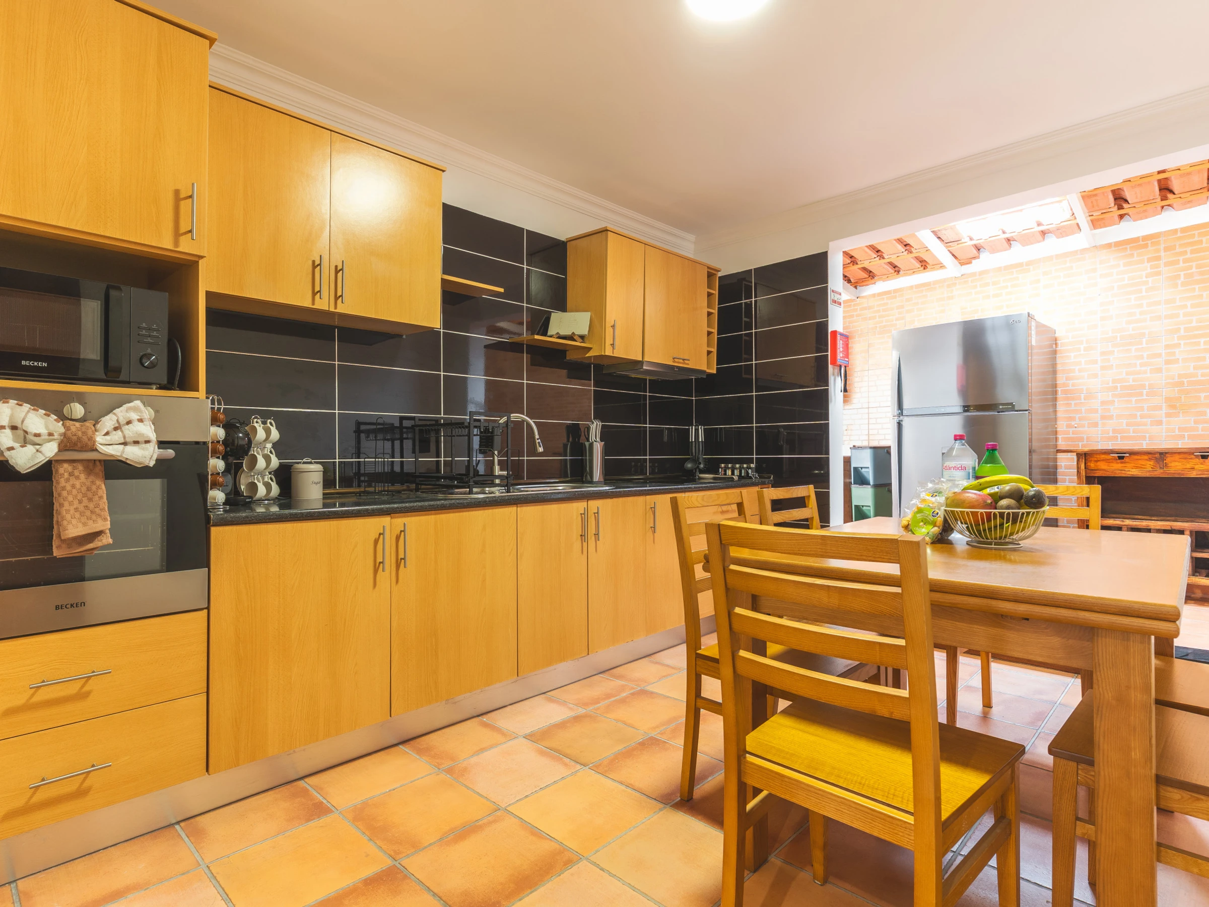 La cuisine est équipée de tout le nécessaire pour cuisiner : réfrigérateur, congélateur, four, plaques, micro-ondes et ustensiles. Un lave-linge est également disponible pour les séjours plus longs. Le salon dispose d’une Smart TV avec box. La maison possède également un coin barbecue. Veuillez noter que le charbon et le bois ne sont pas fournis et doivent être apportés par les invités. Il n’y a pas d’eau chaude au robinet de la cuisine.
