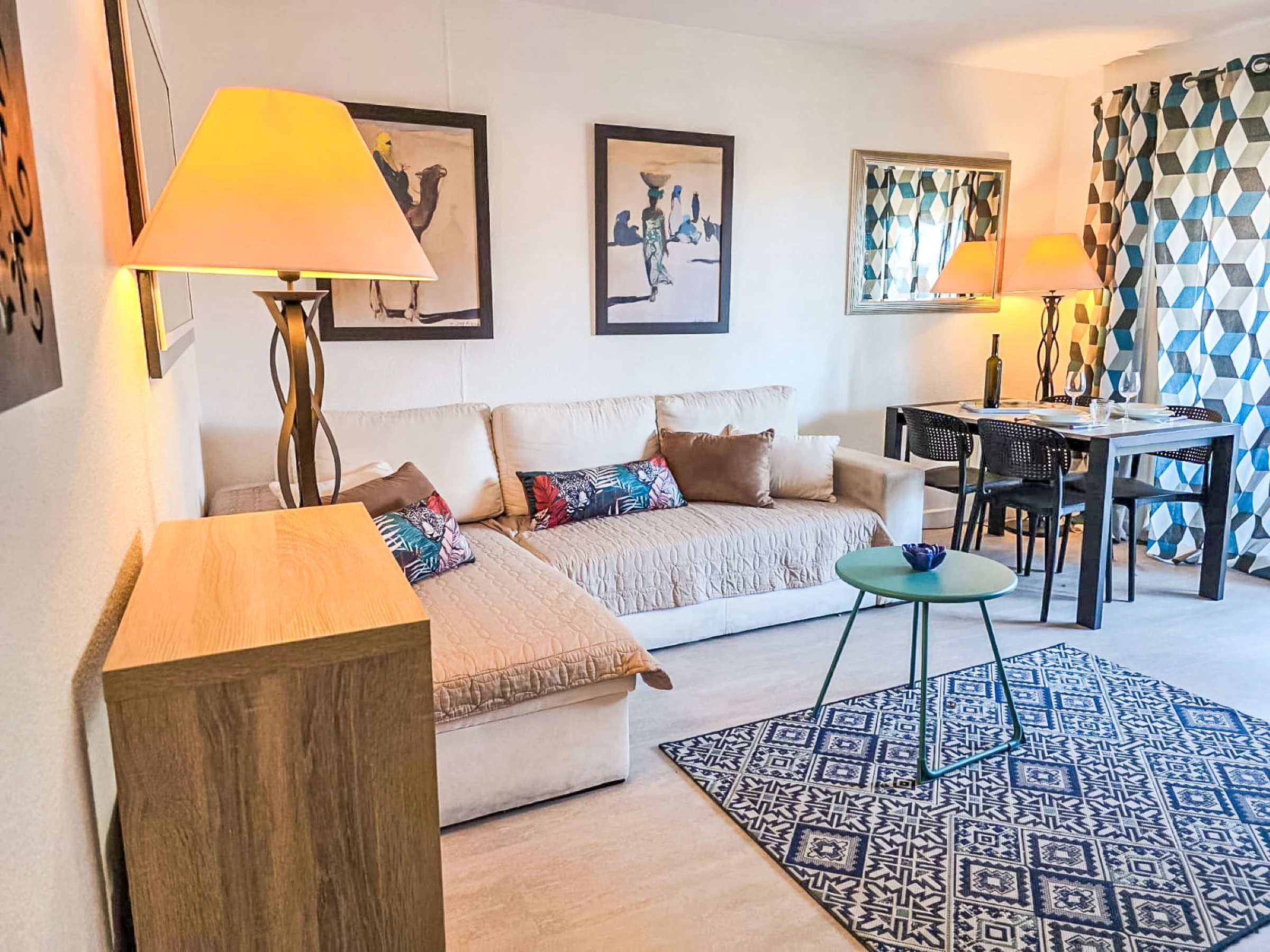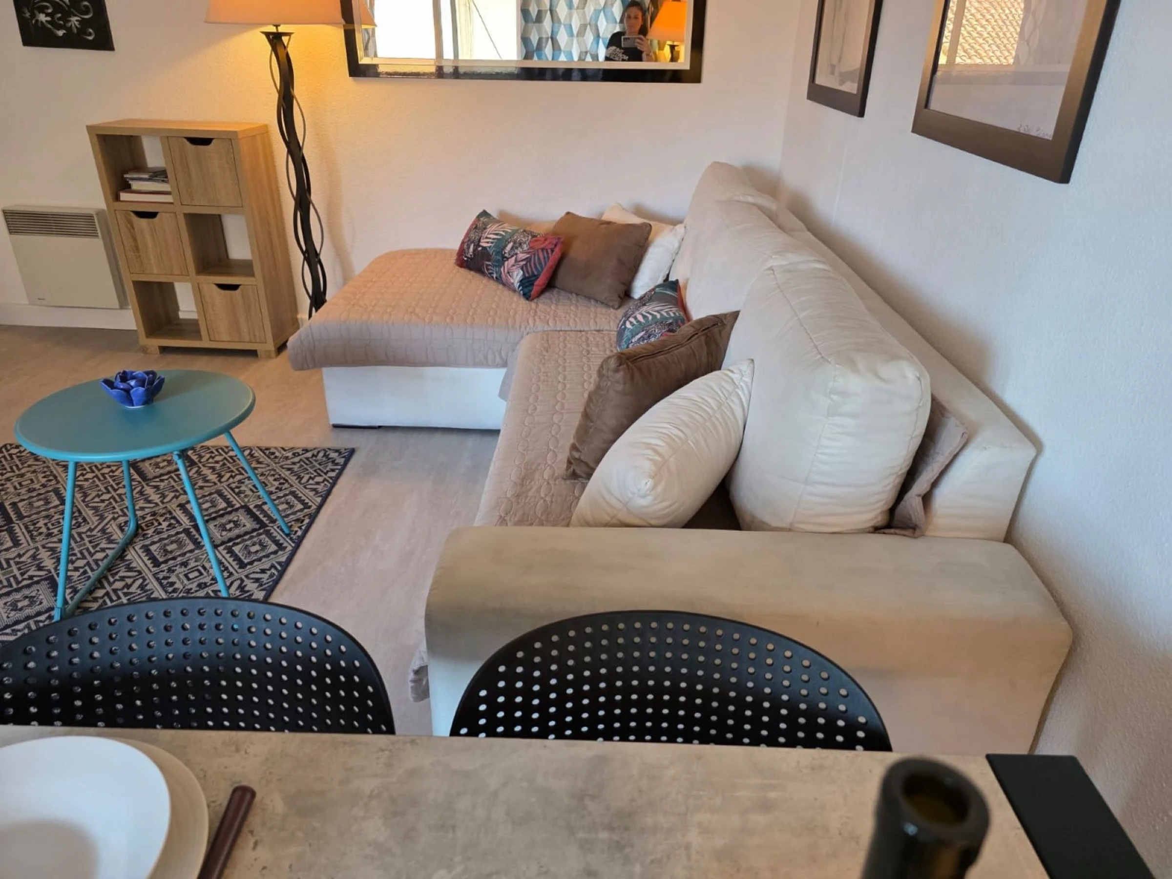 Apt 2 pièces 45 m2 au 2ème étage. Aménagement confortable et agréable: séjour/salle à manger avec TV (écran plat), air-conditionné. Sortie sur le balcon. 1 chambre avec 1 grand-lit (140 cm, longueur 190 cm), air-conditionné. Cuisine (four, lave-vaisselle, 3 feux, grille-pain, bouilloire électrique, micro-ondes, congélateur, cafetière électrique, Capsules pour machine à café (Nespresso) (NON INCLUSES)). Douche, WC séparé. Air-conditionné, chauffage à air chaud. Balcon 10 m2. Mobilier de balcon. Vue latérale sur la mer. A disposition: lave-linge, sèche-cheveux. Internet (Connexion WIFI, gratuit). Place de parking (1 Voiture). Veuillez noter: détecteur de fumée. Annonce d'un particulier (art 155, IV du CGI). [hidden]