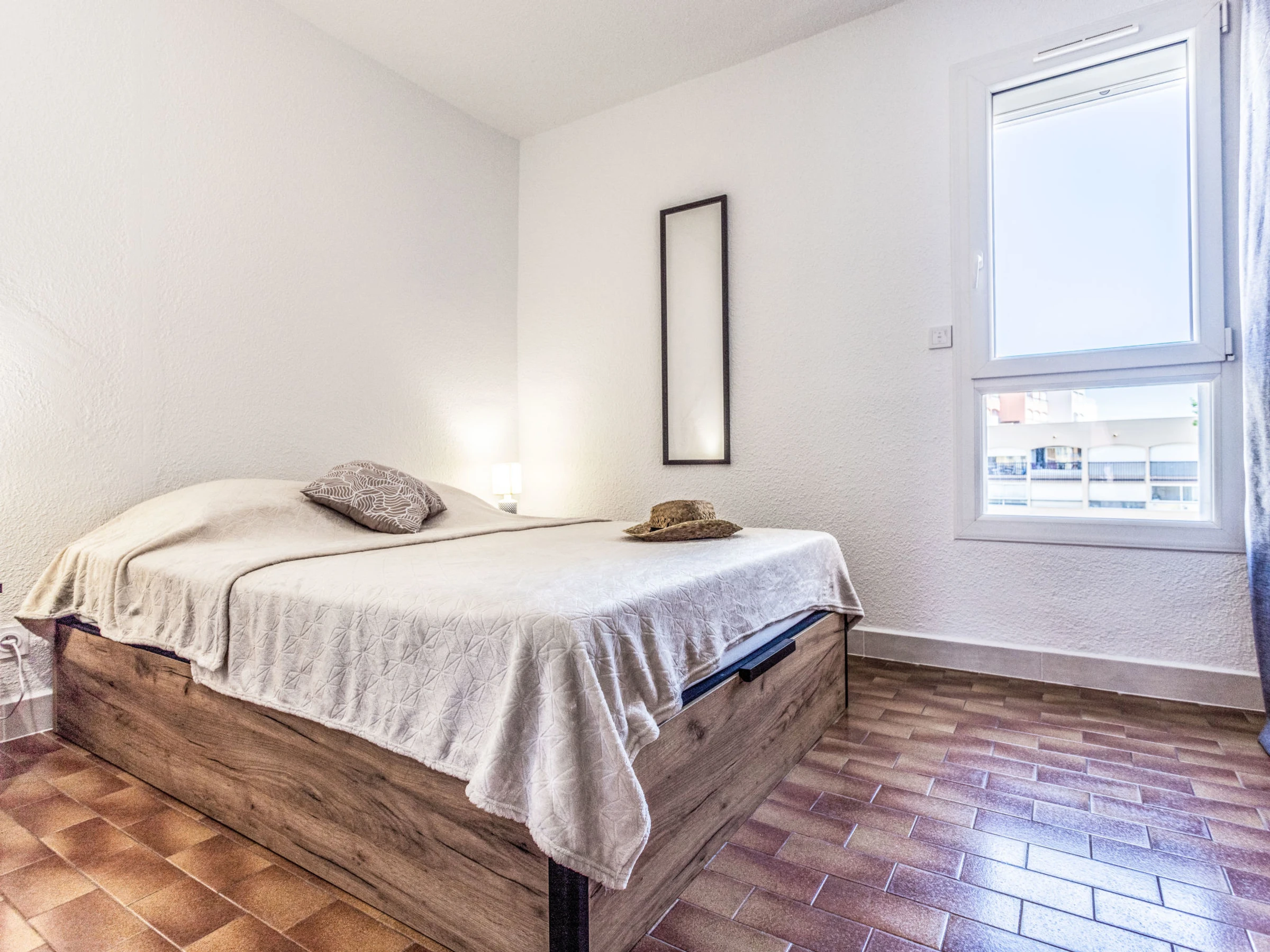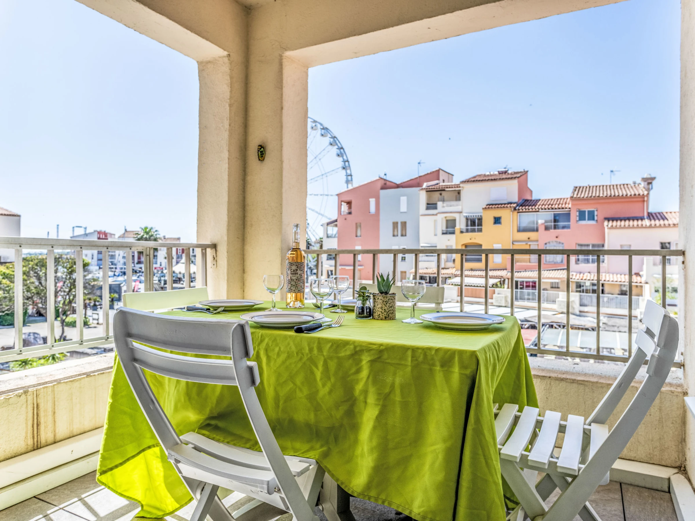 Apt 3 pièces 47 m2 au 2ème étage. Séjour/salle à manger avec TV (écran plat), air-conditionné. Sortie sur la terrasse. 1 chambre 10 m2 avec 1 grand-lit (140 cm, longueur 190 cm). 1 chambre 10 m2 avec 1 grand-lit (140 cm, longueur 190 cm). Cuisine ouverte (four, lave-vaisselle, 3 plaques à induction, grille-pain, bouilloire électrique, micro-ondes, cafetière électrique). Douche, WC séparé. Terrasse 10 m2. Meubles de terrasse. Latérale vue éloignée sur le port. A disposition: lave-linge. Internet (Connexion WIFI, en sus). Place de parking No 51. Annonce d'un particulier (art 155, IV du CGI).