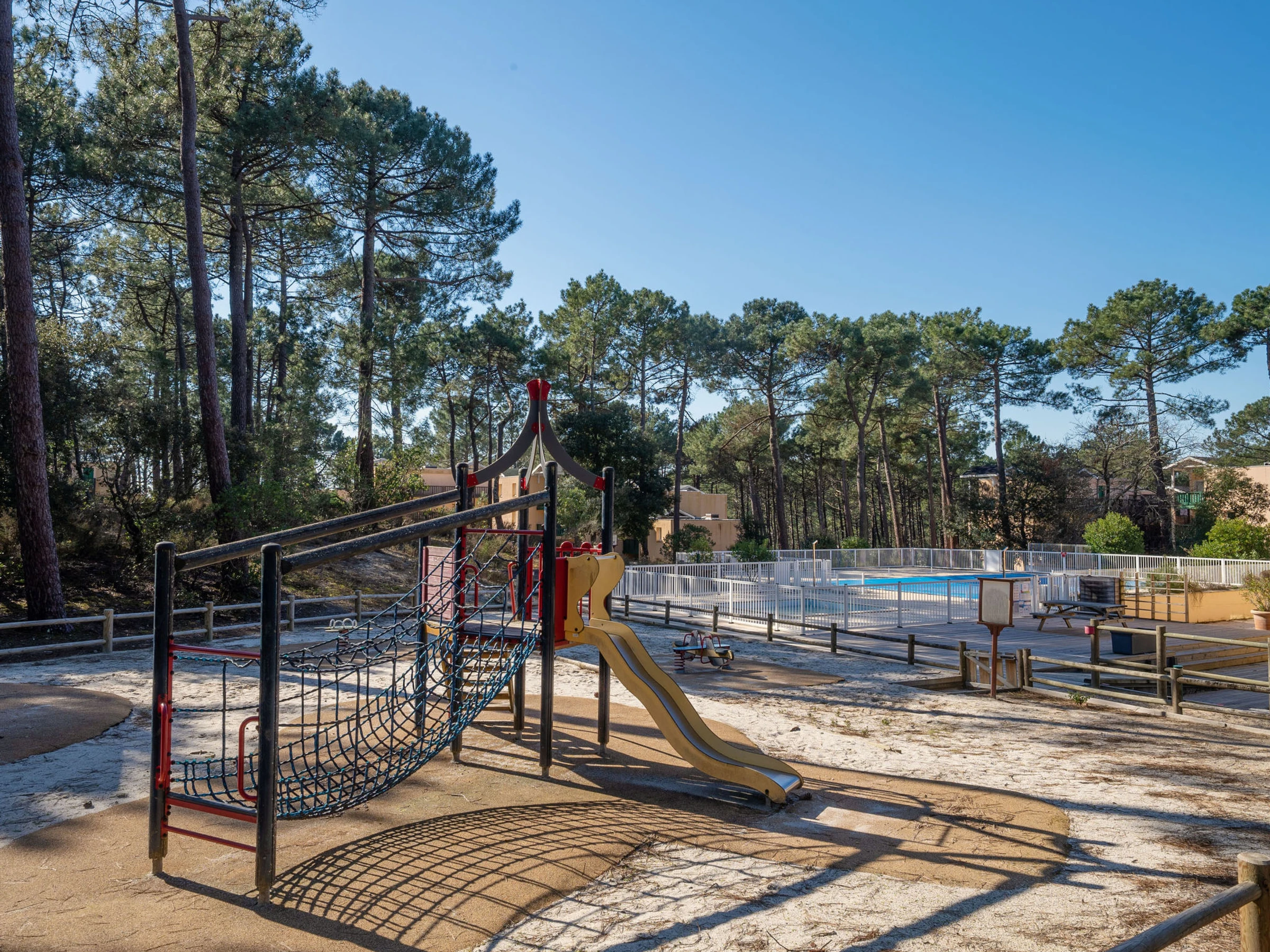 Maubuisson: Résidence "Les Grands Pins", de 2 étages, environnée par les arbres. En bordure de la localité, à 1 km du centre, à 4 km de la mer, à 1.5 km du lac, à 1.5 km de la plage. En commun: terrain à l'état naturel, piscine cloturée (12 x 6 m, profondeur 80 - 150 cm, disponibilité saisonnière: [hidden] - [hidden] Bassin pour les enfants, douche extérieure, terrain de volley-ball, espace de jeux pour les enfants. Infrastructures de la Maison: lave-linge (en commun, en sus), location de bicyclettes. Magasins 1.5 km, restaurant 1.5 km, arrêt de bus "Bombannes" 2.1 km, plage de sable "Carcans-Plage" 4 km, lac de Maubuisson 1.5 km. Terrain de golf (18 trous) 11 km, ecole de voile 1.3 km, tennis 1.5 km. Attractions à proximité: Dune du Pilat 65 km, Saint Emilion 100 km, Bordeaux 60 km, Cap Ferret 65 km. Les lacs connus sont facilement accessibles: Moutchic 14 km, Maubuisson 1.5 km. La remise des clés a lieu à l’agence de Lacanau, 14 km.