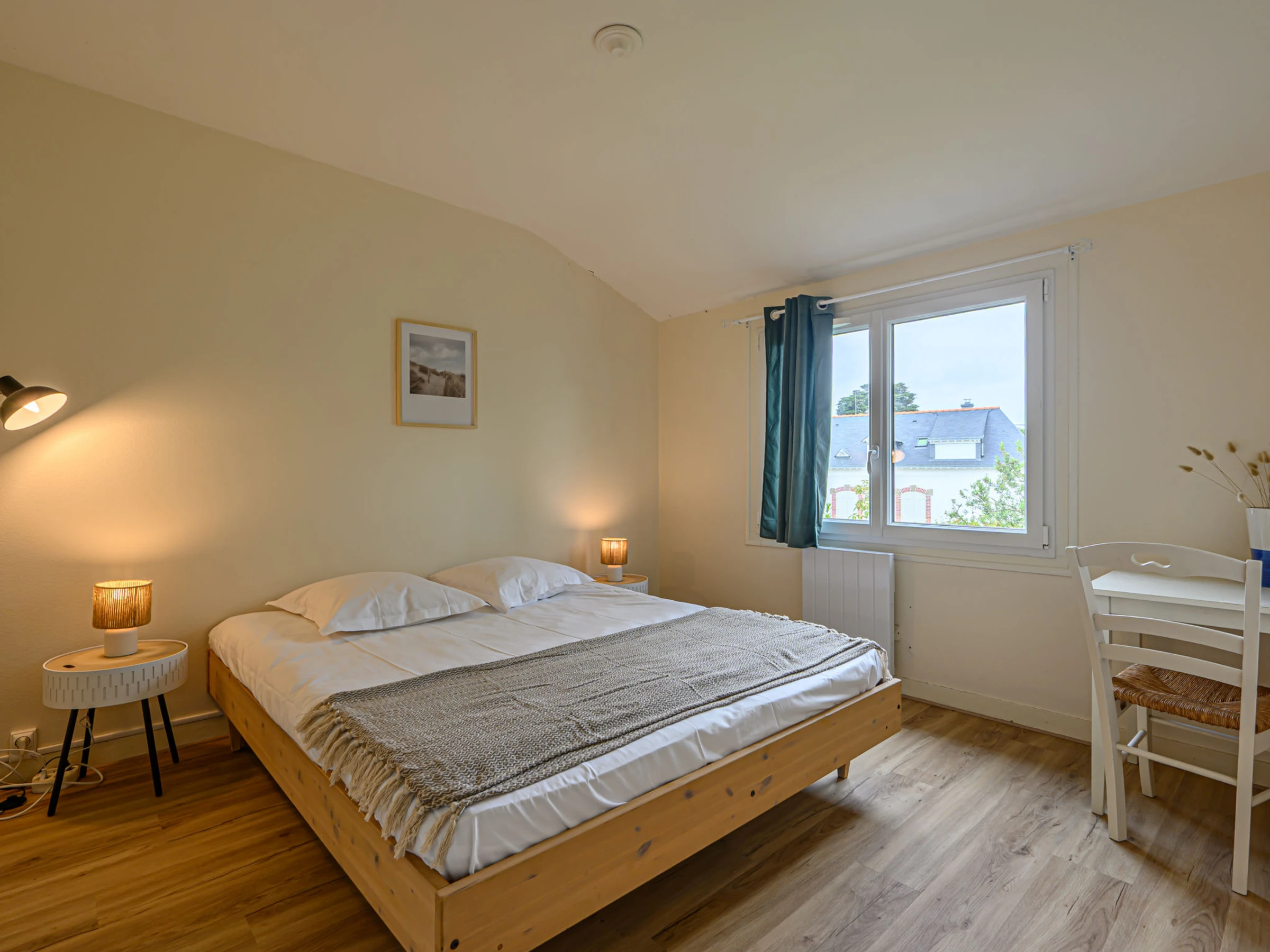 "Ker Arvor", maison mitoyenne 4 pièces 68 m2. Aménagement confortable: séjour/salle à manger avec TV (écran plat). Sortie sur le jardin. 1 chambre avec 1 lit gigogne (2 pers. 2 x 90 cm, longueur 190 cm). Cuisine (3 plaques de cuisson, four, lave-vaisselle, grille-pain, bouilloire électrique, micro-ondes, cafetière électrique). Sortie sur le jardin. WC séparé. À l'étage supérieur: 1 chambre avec 1 grand-lit (1 x 160 cm, longueur 190 cm). 1 chambre avec 2 lits (90 cm, longueur 190 cm). Douche. Meubles de terrasse. A disposition: lave-linge, sèche-cheveux. Internet (Connexion WIFI, gratuit). Place de parking. Veuillez noter: détecteur de fumée. Annonce d'un particulier (art 155, IV du CGI). [hidden]