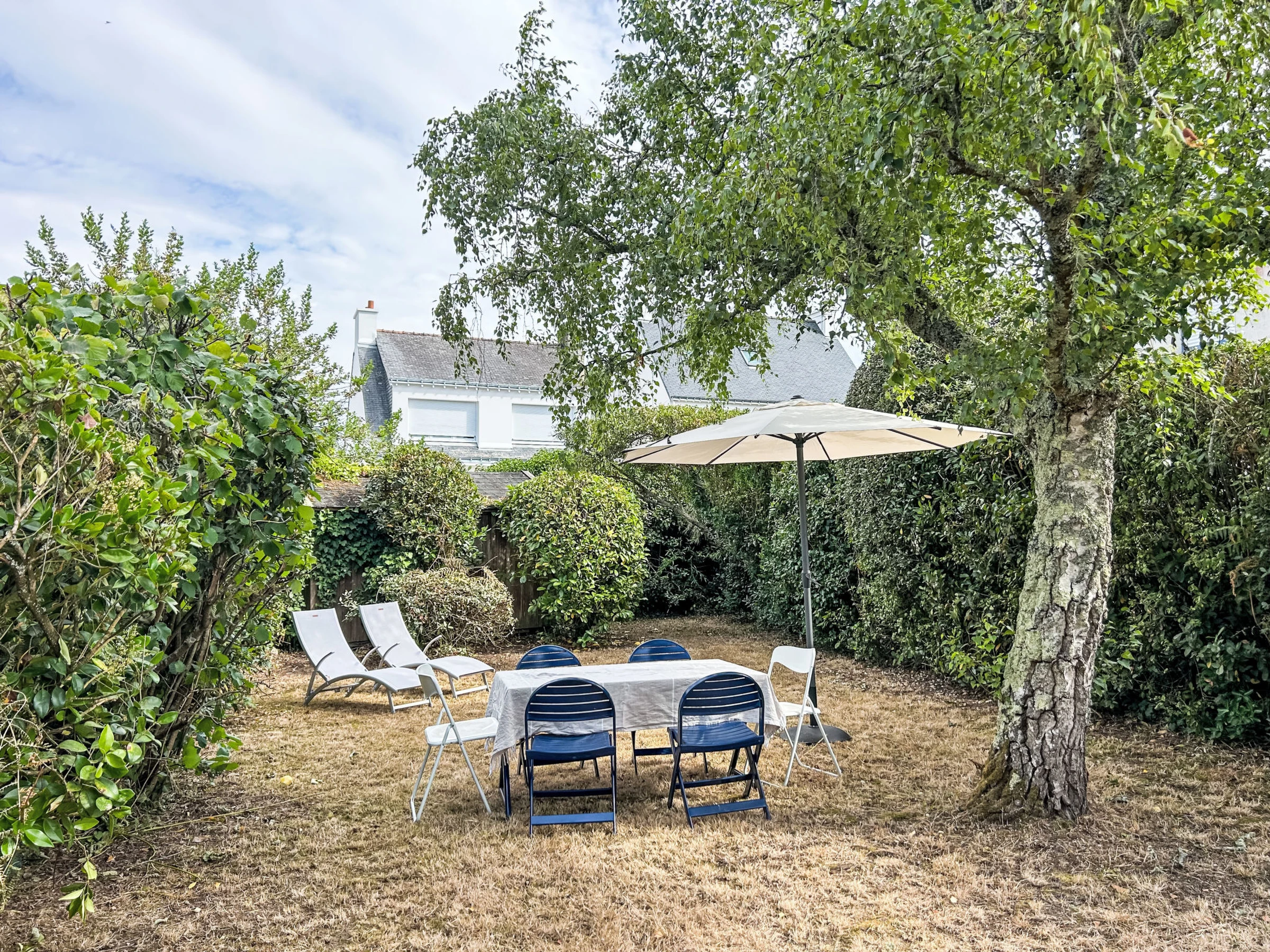 Maison mitoyenne de 2 étages. Au centre de Carnac Plage, excellente situation: centrale mais tranquille, à 300 m de la mer, à 300 m de la plage. A usage privé: jardin (clôturé), place de parking sur le terrain. Magasins, supermarché 700 m, restaurant, bar 100 m, boulangerie 100 m, centre à 2 minutes à pieds, arrêt de bus "Office de tourisme" 100 m, plage de sable "Grande plage" 300 m, centre thermal "Thalassothérapie Thalazur" 700 m. Port plaisance 4 km, terrain de golf (18 trous) 15 m, ecole de surf 2 km, ecole de voile 800 m. Attractions à proximité: Les alignements de Carnac, La Trinité sur Mer 4 km, Presqu'ile de Quiberon 15 km, Vannes 35 km, Lorient 55 km, Belle île en mer, Houat, Hoedic. Région de randonnées: le Golfe du Morbihan 25 m.