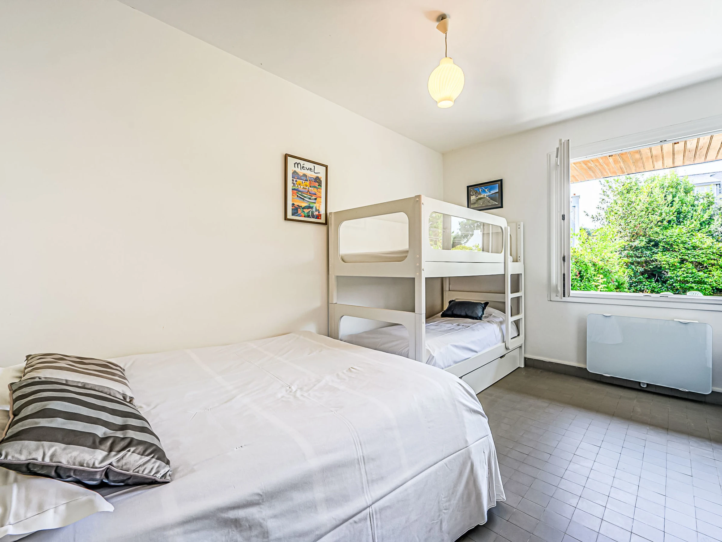 "L'Oasis 1", apt 4 pièces 70 m2, au rez-de-chaussée. Partiellement rénové, aménagement confortable: séjour/salle à manger avec TV (écran plat). Sortie sur la terrasse. 1 chambre avec 1 grand-lit (1 x 160 cm, longueur 200 cm). 1 chambre avec 2 lits (90 cm, longueur 190 cm). 1 chambre avec 1 x 2 lits superposés (90 cm, longueur 190 cm), 1 grand-lit (1 x 140 cm, longueur 190 cm). Cuisine (four, lave-vaisselle, 3 plaques vitrocéramiques, grille-pain, bouilloire électrique, micro-ondes, cafetière électrique). Douche, WC séparé. Sol en pierres naturelles. Terrasse 40 m2, situation sud, grand jardin 800 m2, situation sud. Meubles de terrasse, barbecue. A disposition: lave-linge, sèche-cheveux. Internet (Connexion WIFI, gratuit). Veuillez noter: détecteur de fumée. Annonce d'un particulier (art 155, IV du CGI). [hidden]