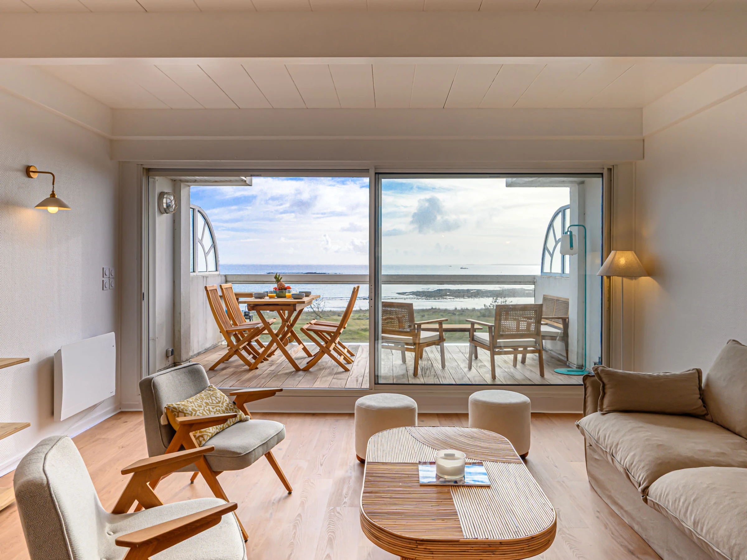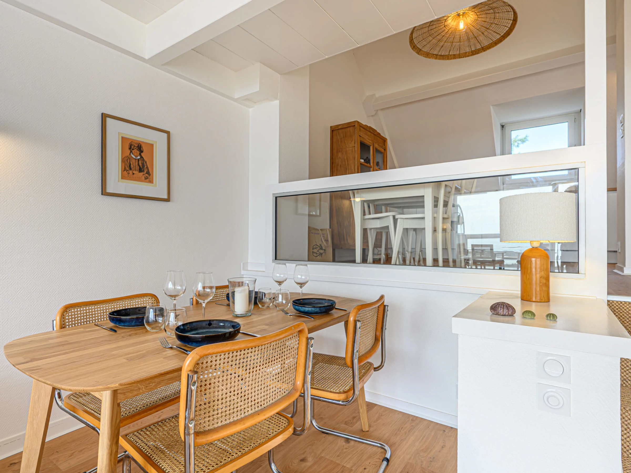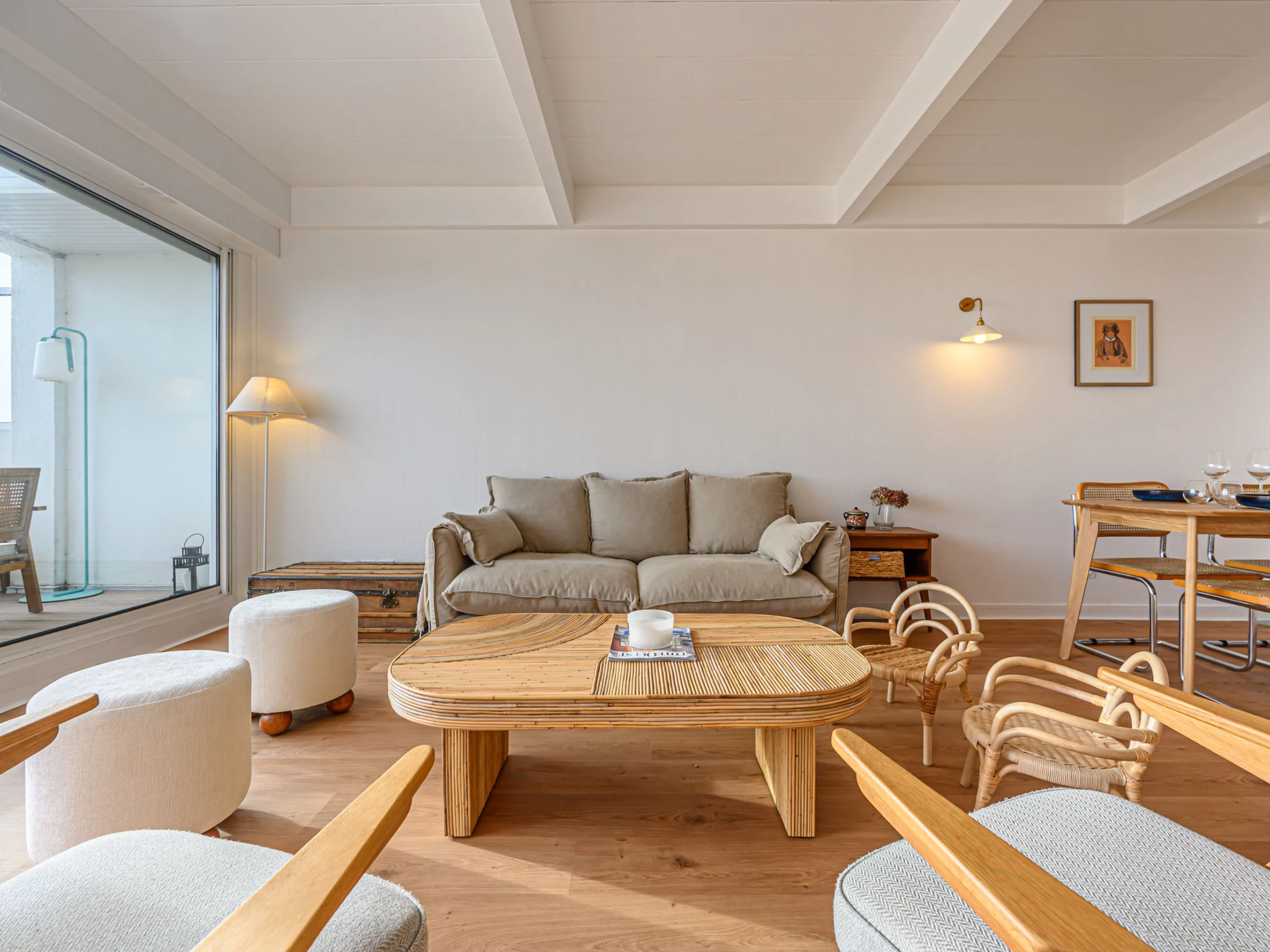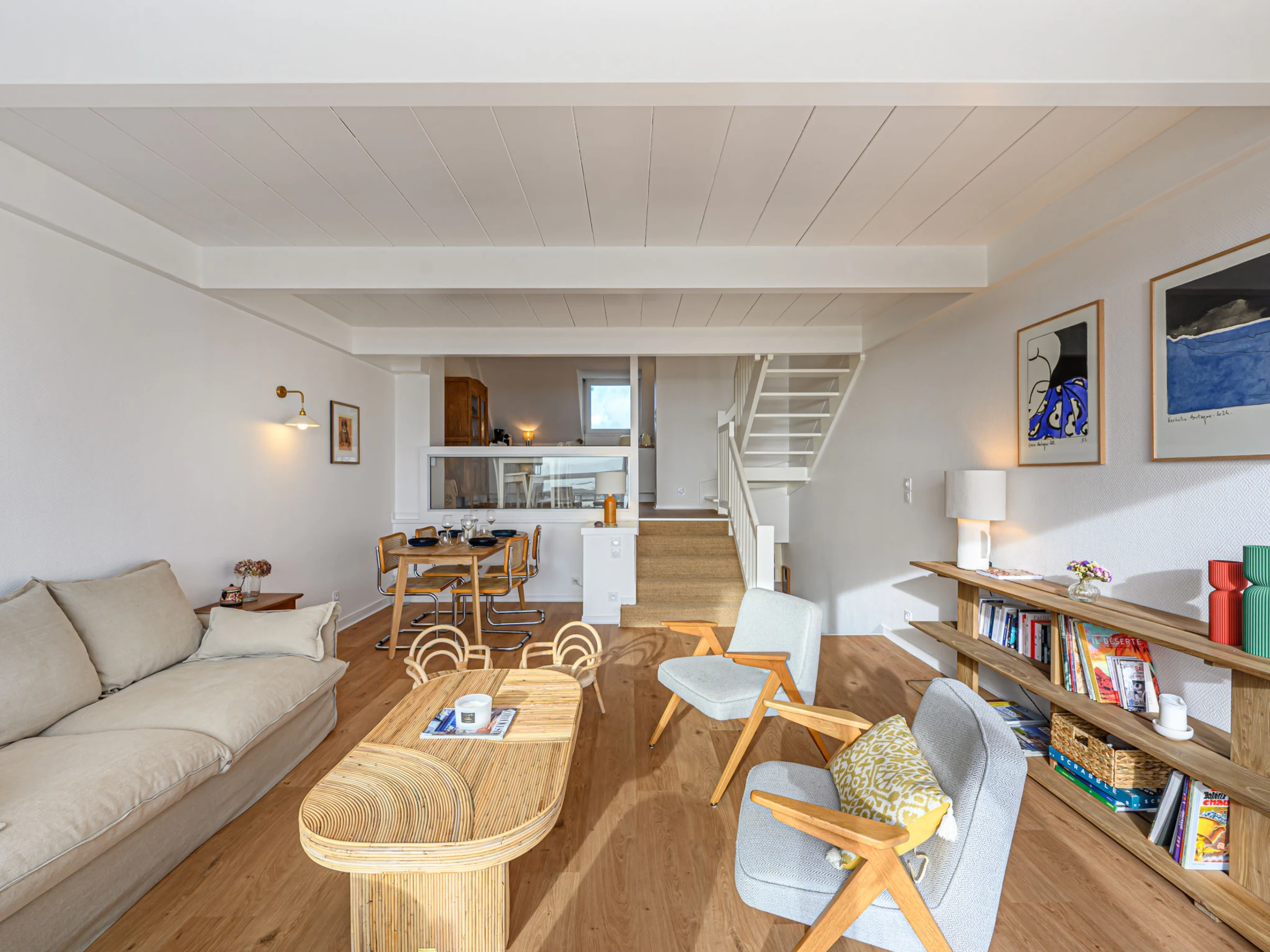 Appartement sur 2 niveaux 3 pièces 80 m2 au 1er étage. Complètement rénové en 2025, aménagement agréable: séjour/salle à manger avec TV (écran plat). Sortie sur la terrasse. 1 chambre avec 2 lits (90 cm, longueur 190 cm). Cuisine ouverte (four, lave-vaisselle, 3 plaques à induction, grille-pain, bouilloire électrique, cafetière électrique, Capsules pour machine à café (Nespresso)). Salle de bains, WC séparé, double vasque. À l'étage supérieur: 1 chambre avec 1 grand-lit (1 x 160 cm, longueur 180 cm) avec salle de bains et WC séparés. Terrasse 13 m2, situation sud. Meubles de terrasse. Vue panoramique sur la mer. A disposition: lave-linge, chaise haute pour enfant, lit bébé jusqu'à 2 ans, sèche-cheveux. Internet (Connexion WIFI, gratuit). Place de parking No 2.3. Veuillez noter: logement non-fumeur. Détecteur de fumée. Plancha électrique. Annonce d'un particulier (art 155, IV du CGI). [hidden]