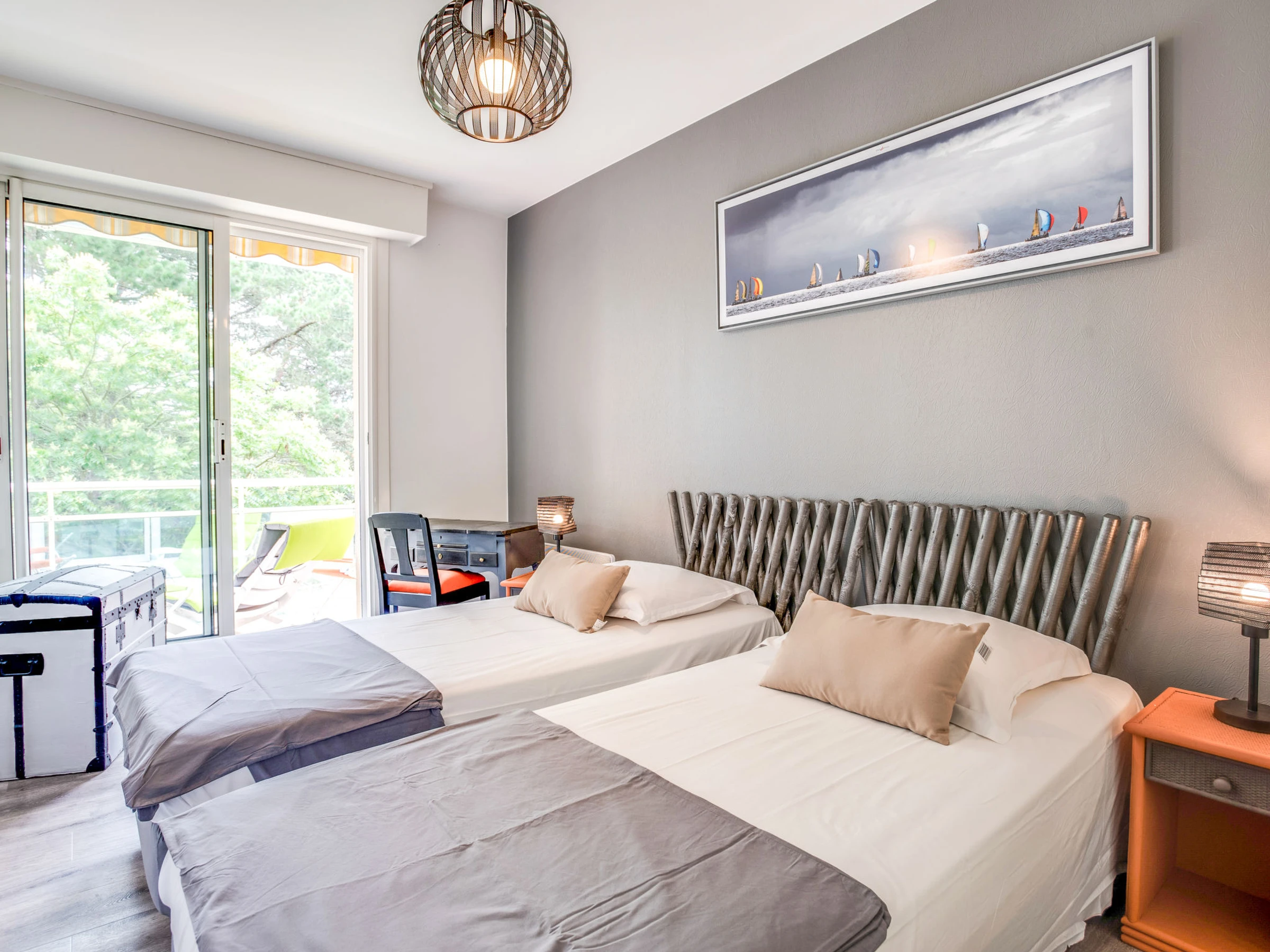 Apt 4 pièces 84 m2 au 2ème étage. Spacieux, rénové, aménagement agréable: séjour/salle à manger avec TV (écran plat). Sortie sur le balcon. 1 chambre avec 1 grand-lit (1 x 160 cm, longueur 200 cm). 1 chambre avec 2 lits (80 cm, longueur 190 cm). 1 chambre avec 2 lits (90 cm, longueur 200 cm). Sortie sur le balcon. Cuisine (four, lave-vaisselle, 3 plaques à induction, micro-ondes, cafetière électrique). Douche, WC séparé. Chauffage électrique. Balcon 12 m2. Mobilier de balcon. Vue sur le jardin. A disposition: lave-linge, sèche-linge. Internet (Connexion WIFI, gratuit). Place de parking (cloturée). Veuillez noter: logement non-fumeur. Détecteur de fumée. [hidden]
