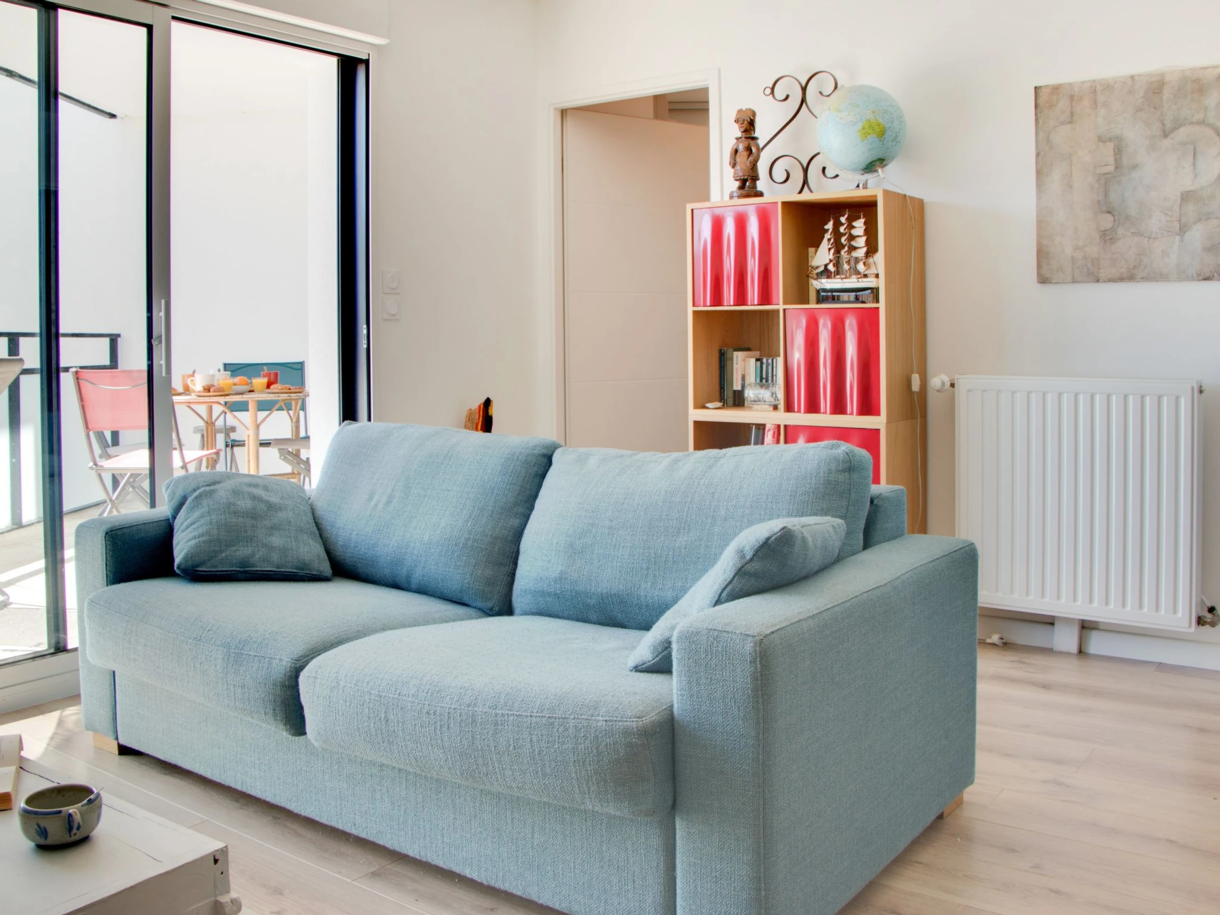 Apt 2 pièces 47 m2 au 1er étage. Aménagement confortable: séjour/salle à manger avec 1 divan-lit double (1 x 140 cm, longueur 190 cm), TV (écran plat). Sortie sur la terrasse. 1 chambre avec 1 grand-lit (1 x 140 cm, longueur 190 cm). Cuisine ouverte (2 plaques vitrocéramiques, grille-pain, bouilloire électrique, micro-ondes, cafetière électrique). Douche/WC. Terrasse 14 m2. Meubles de terrasse, chaises longues (2). A disposition: lave-linge, sèche-cheveux. Internet (Connexion WIFI, gratuit). Place de parking. Veuillez noter: logement côté cour. Maximum 1 animal/ chien autorisé. Annonce d'un particulier (art 155, IV du CGI).