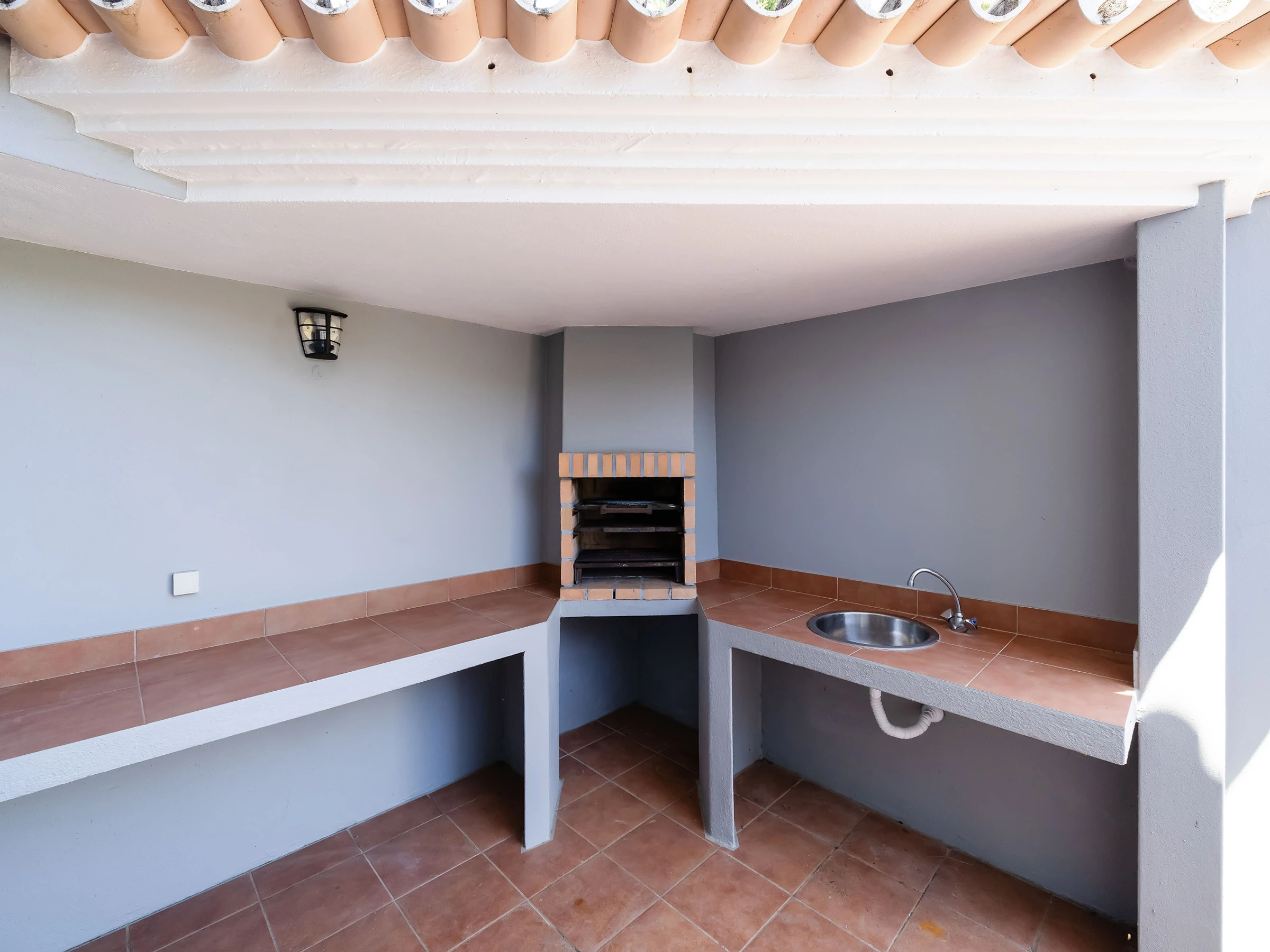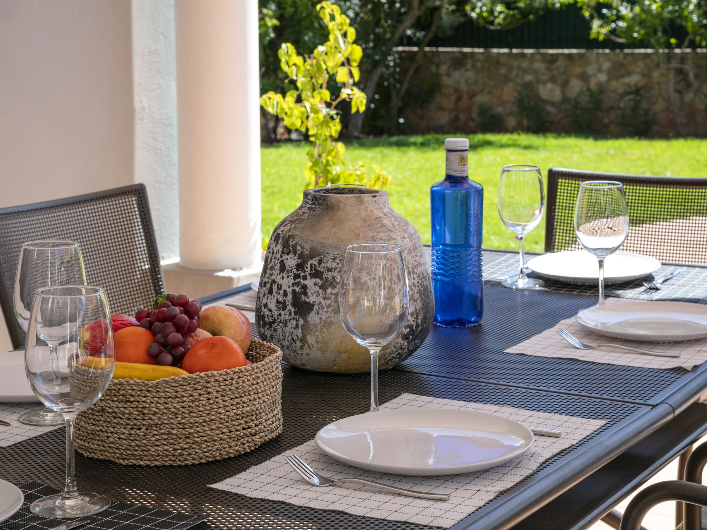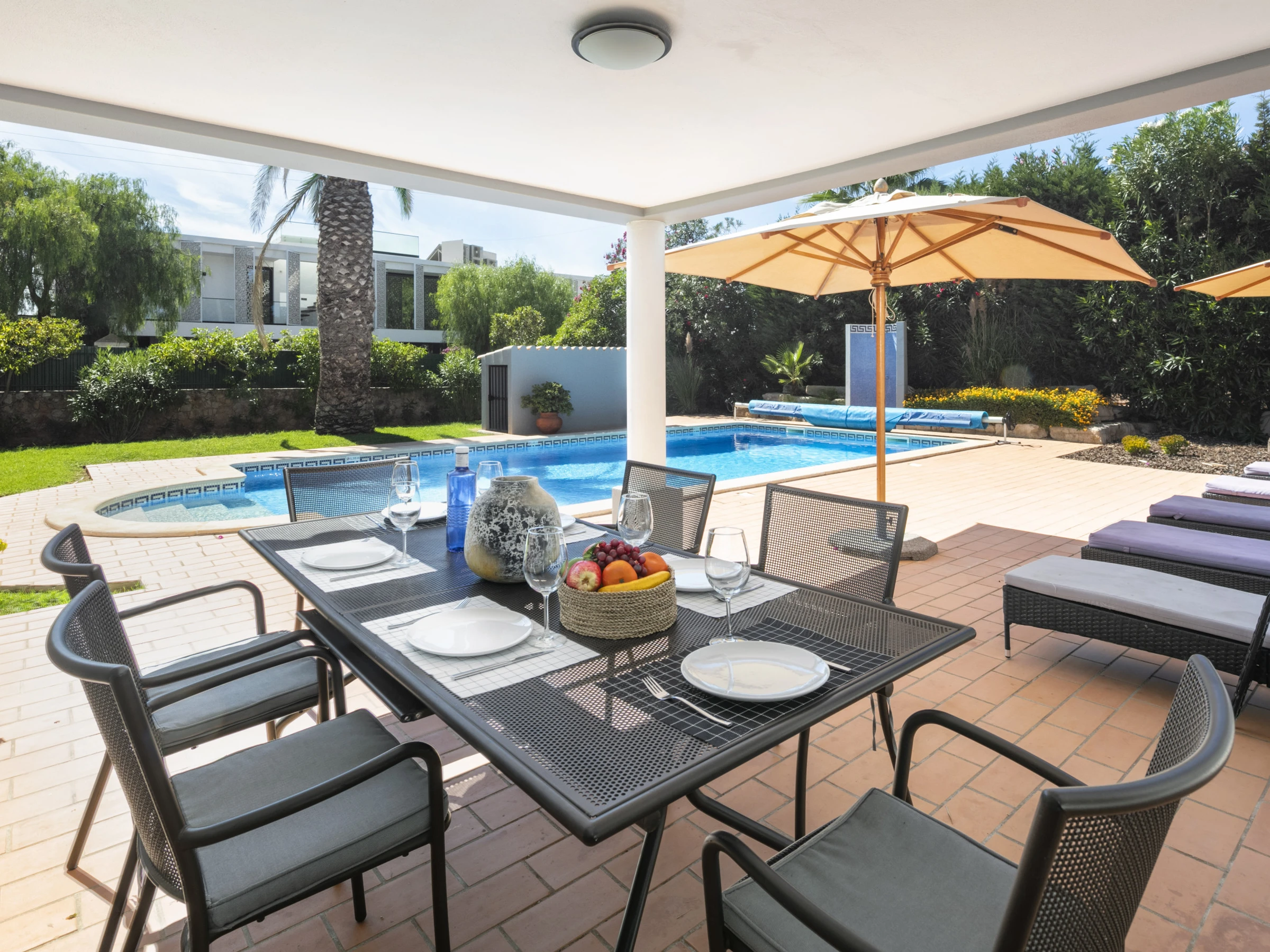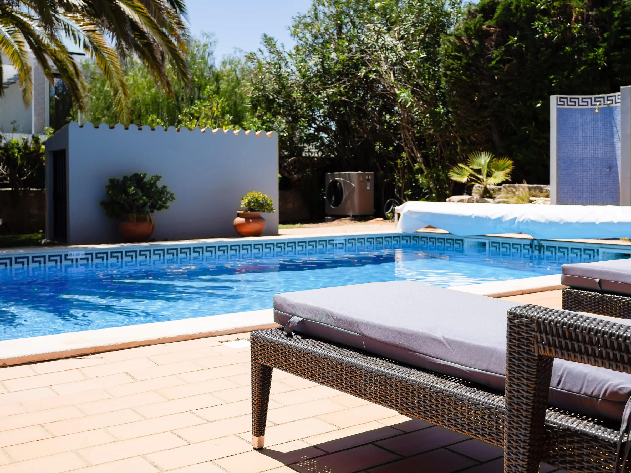 Entourée d'un beau jardin mature, la villa offre de vastes terrasses partiellement couvertes avec des meubles d'extérieur et une piscine privée (chauffée moyennant des frais supplémentaires), équipée d'une douche et de chaises longues.