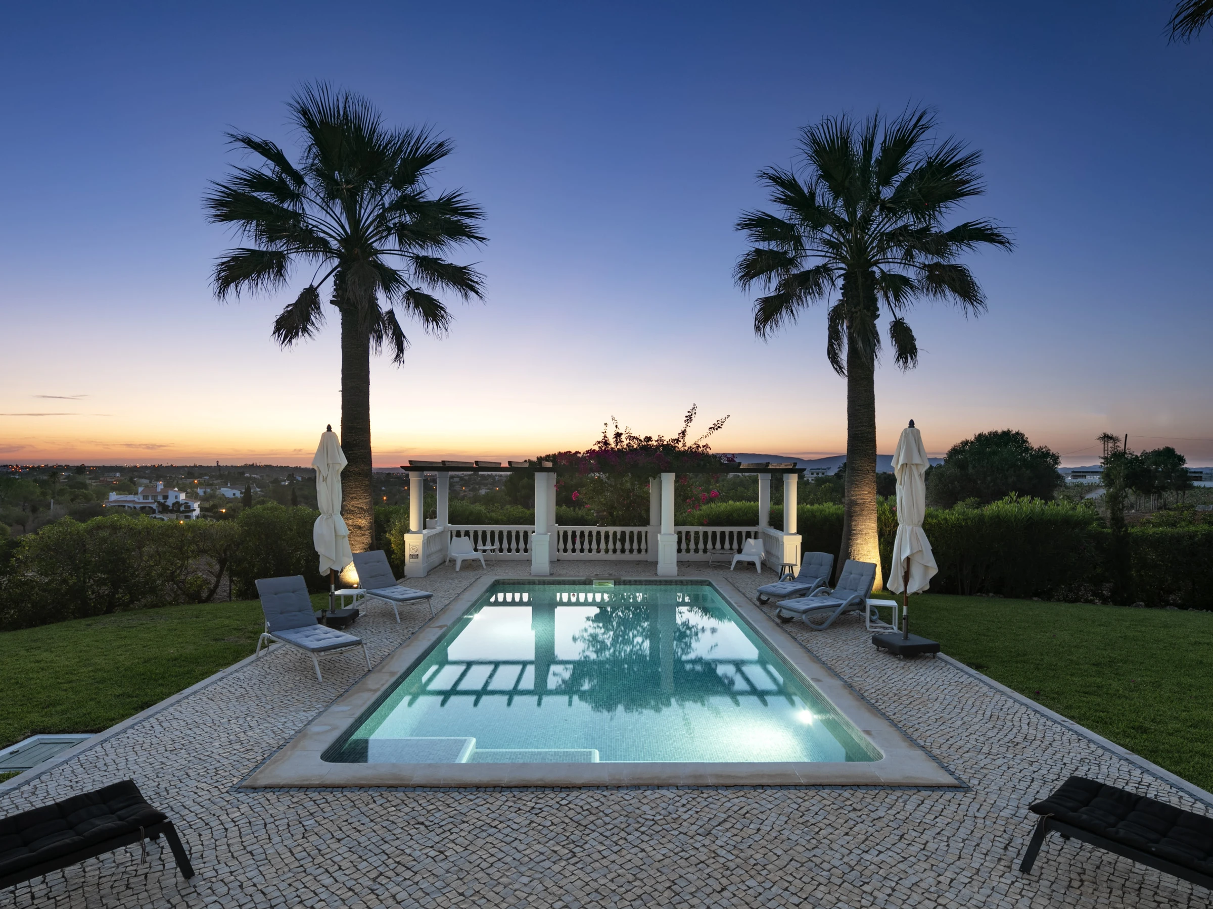 Elle dispose de jardin, mobilier de jardin, clôture, terrasse, lave-linge, sèche-linge, barbecue, cheminée, fer à repasser, accès internet (wifi), sèche-cheveux, balcon, chauffage central, piscine chauffée privée, moustiquaires dans la chambre, 1 Télévision, tv satellite (Langues: Anglais, Allemand).