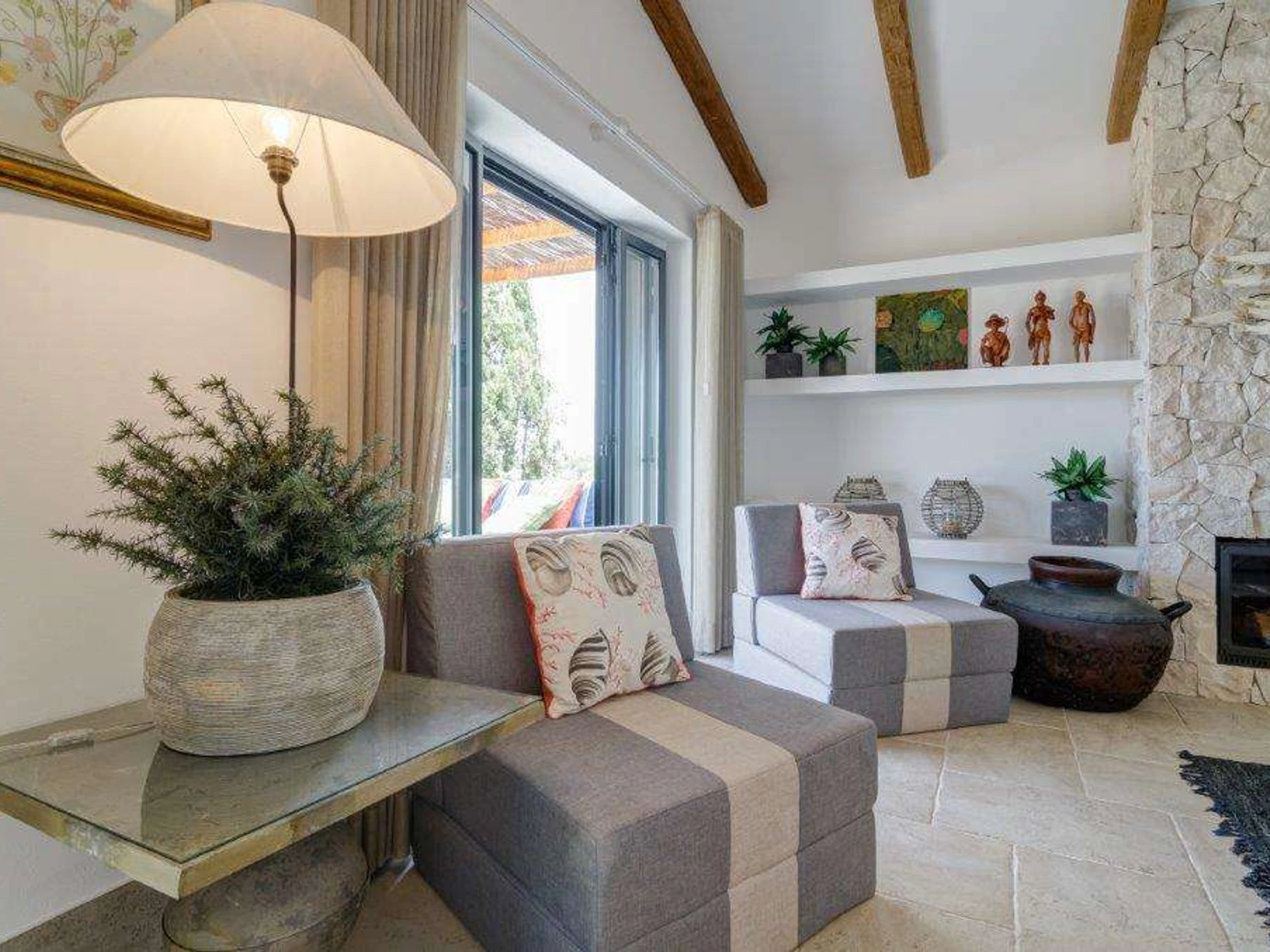 Elle dispose de terrasse, lave-linge, sèche-linge, barbecue, fer à repasser, accès internet, climatisation, piscine collective, 1 Télévision.