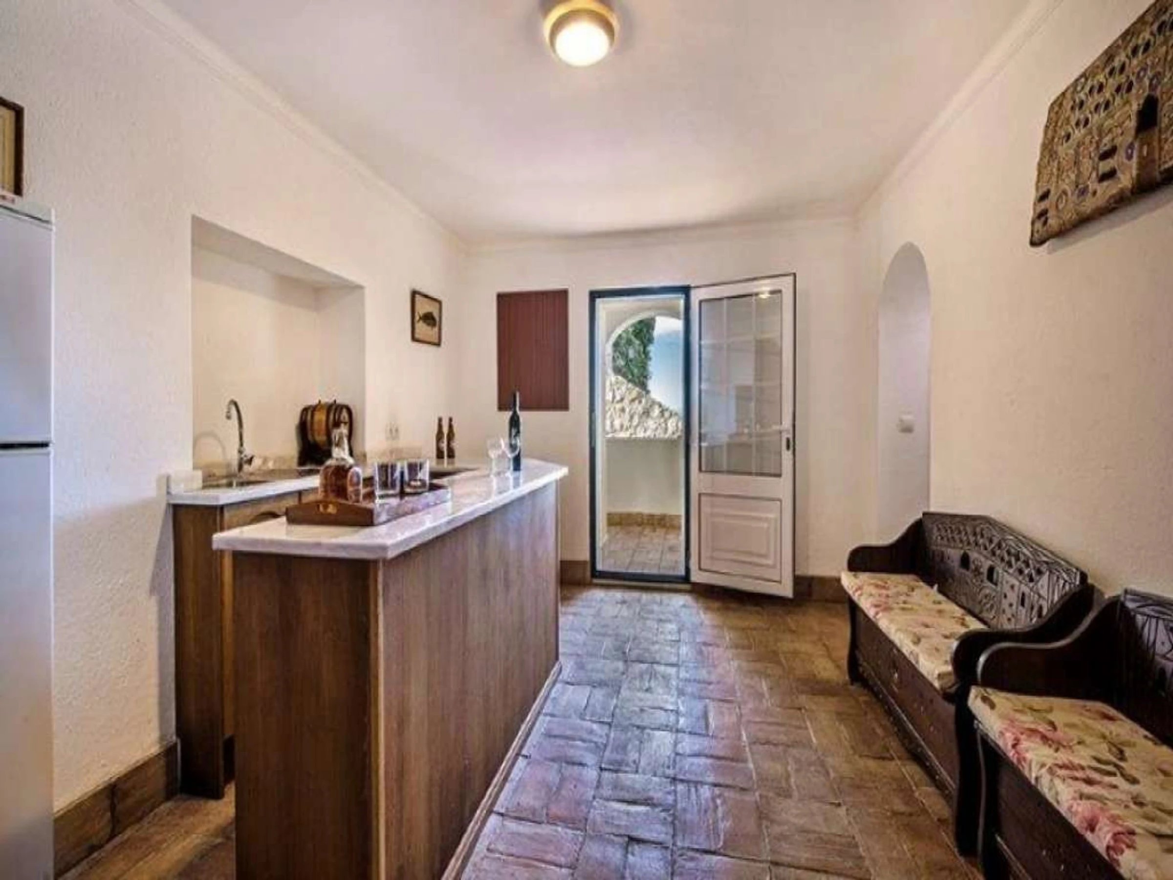 La cuisine, est équipée avec réfrigérateur, micro-ondes, four, congélateur, lave-vaisselle, cafetière et grille pain.