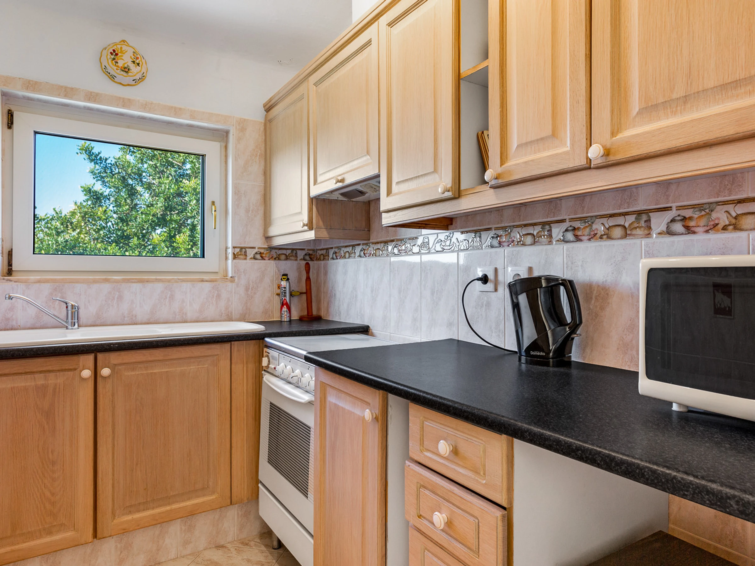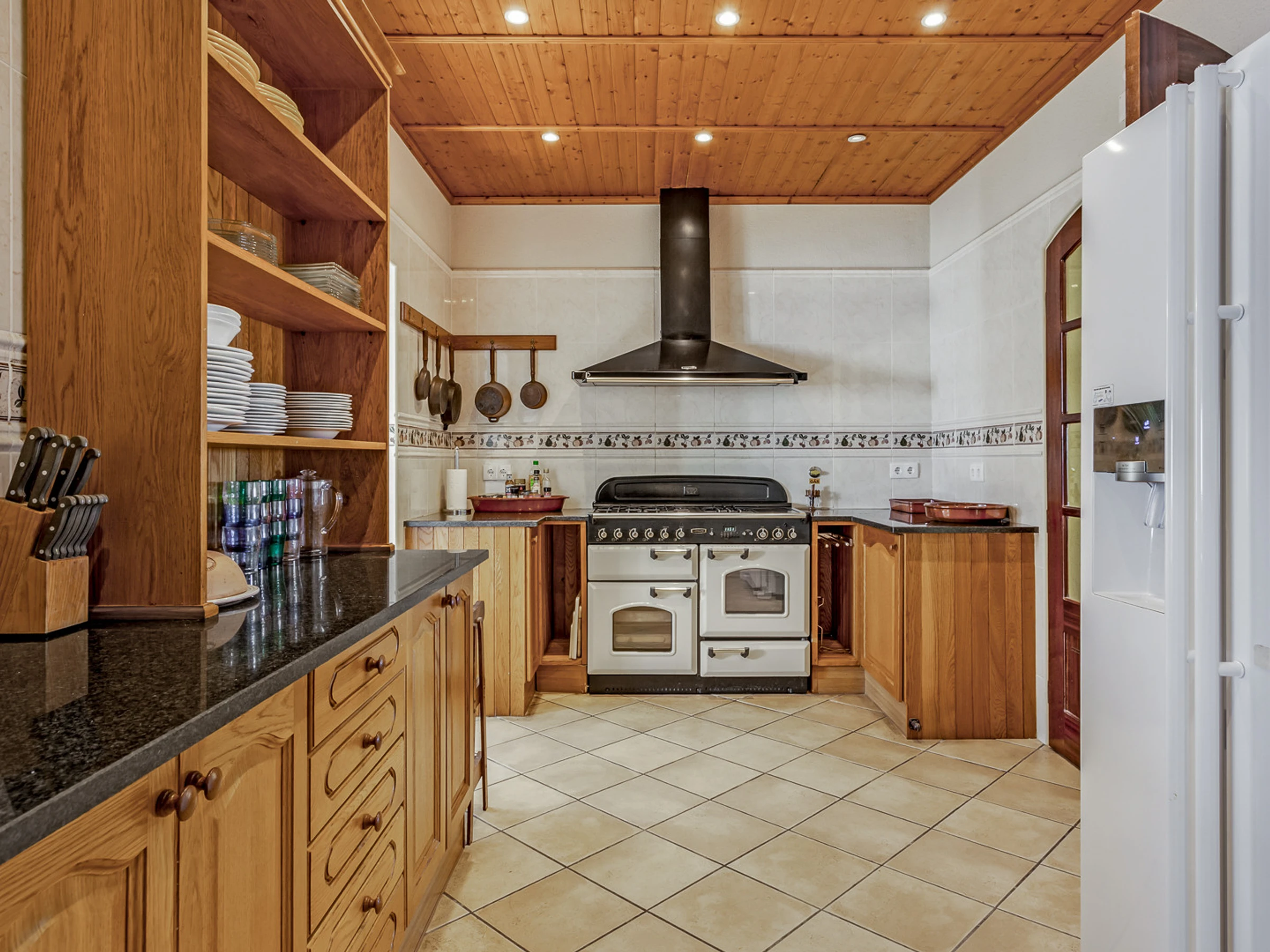 La cuisine, est équipée avec réfrigérateur, micro-ondes, four, congélateur, lave-vaisselle, vaisselle/couverts, ustensiles/cuisine, cafetière, grille pain et bouilloire.