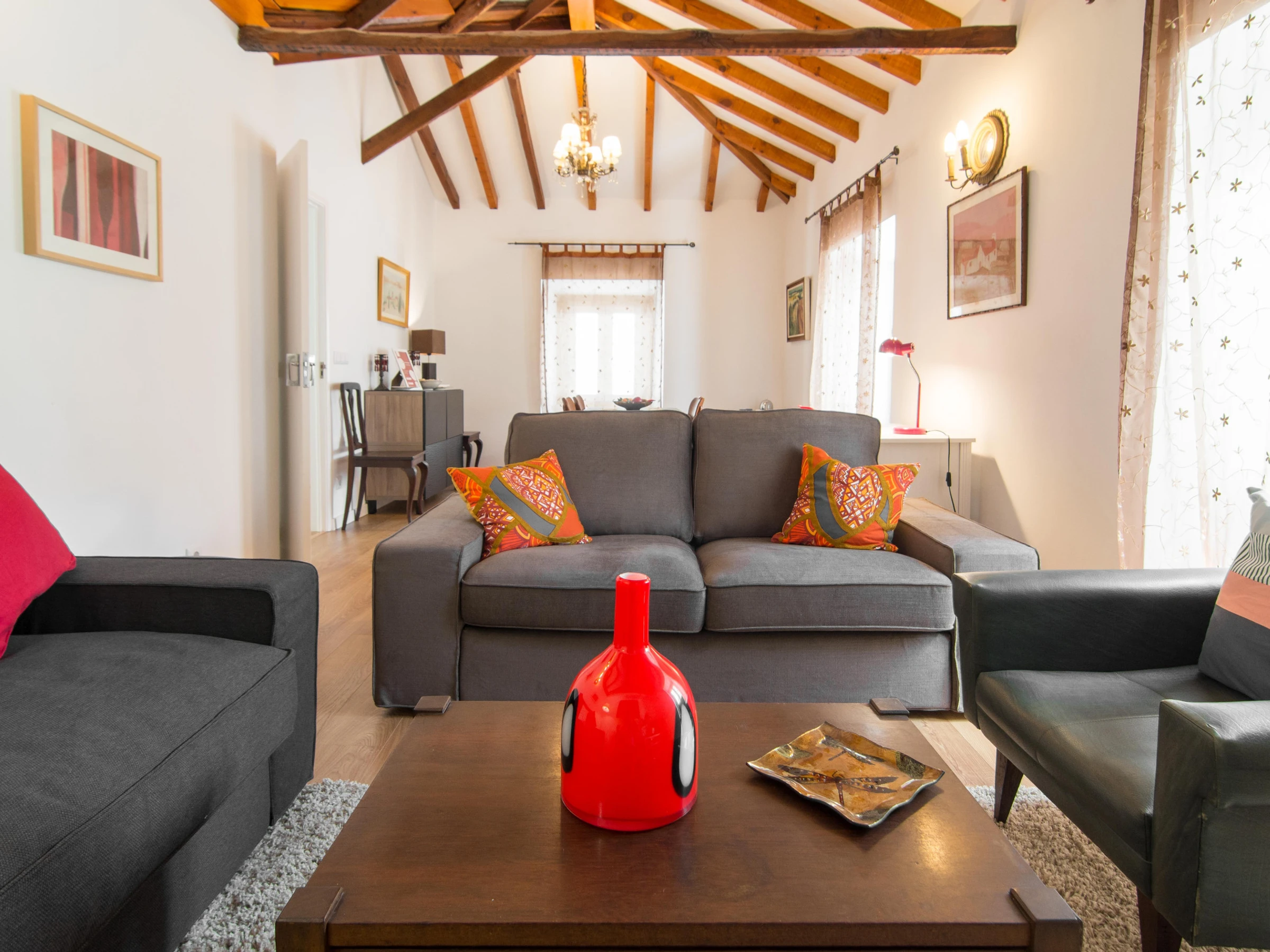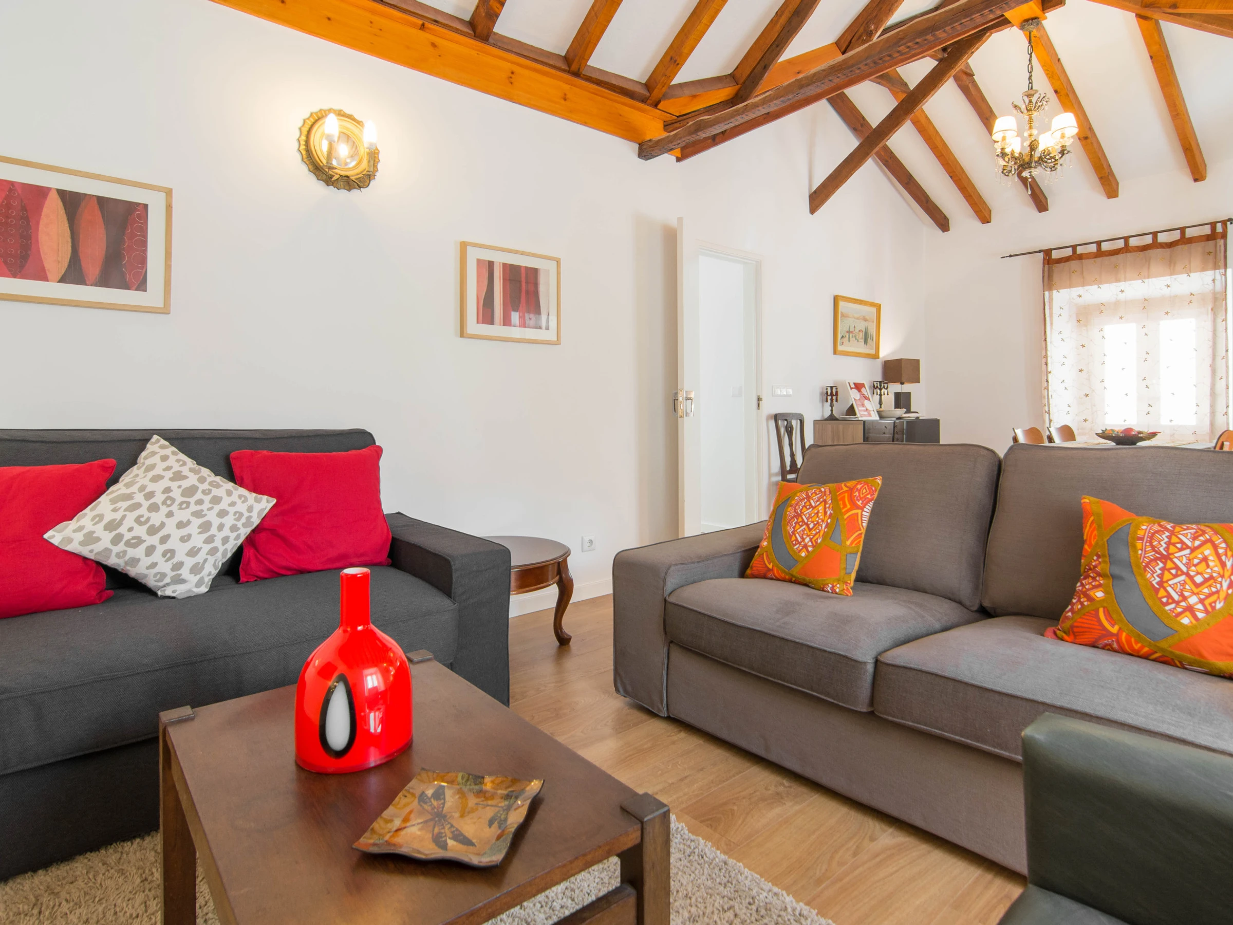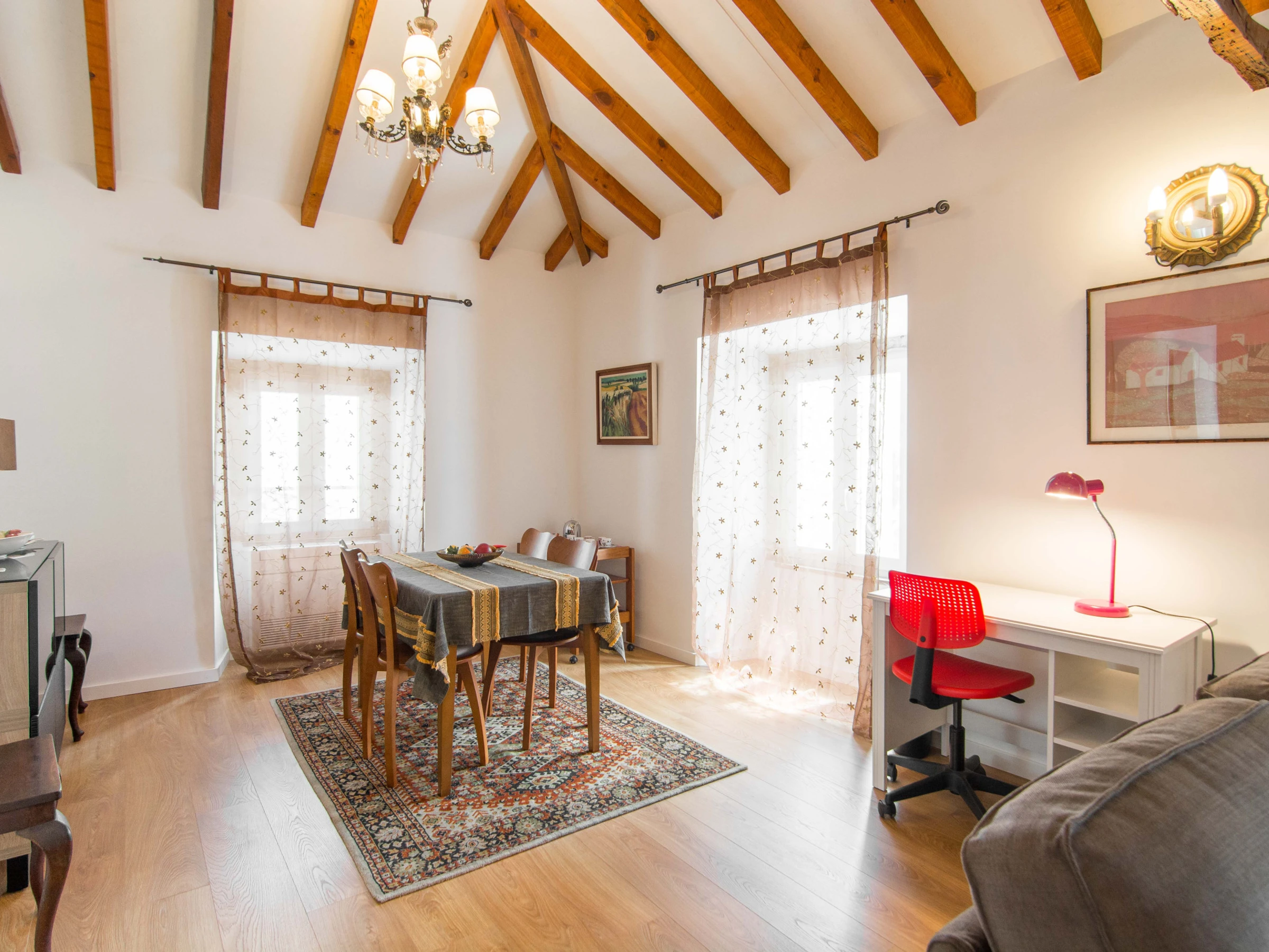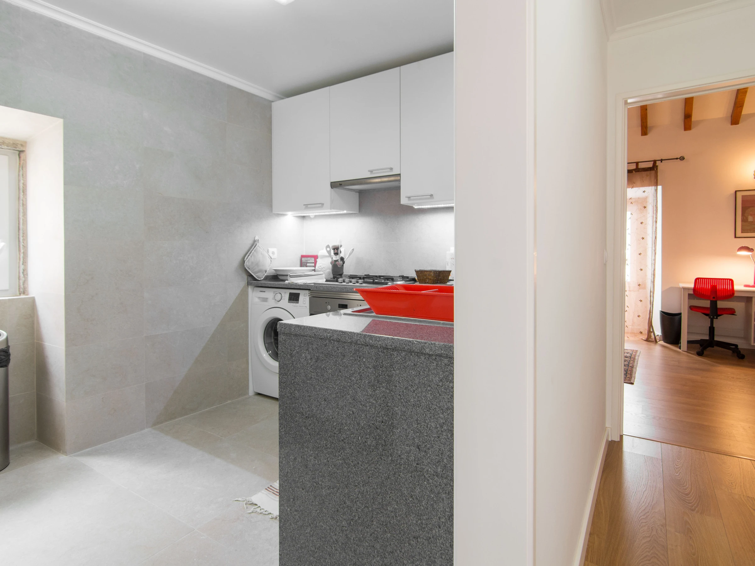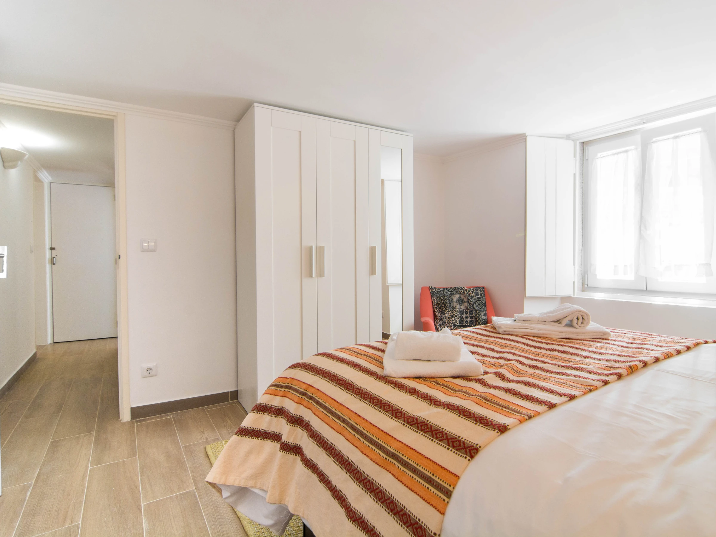 En entrant dans l'appartement, vous êtes instantanément surpris par la lumière provenant d'une fenêtre de toit. Cela vous donne une sensation de bienvenue.