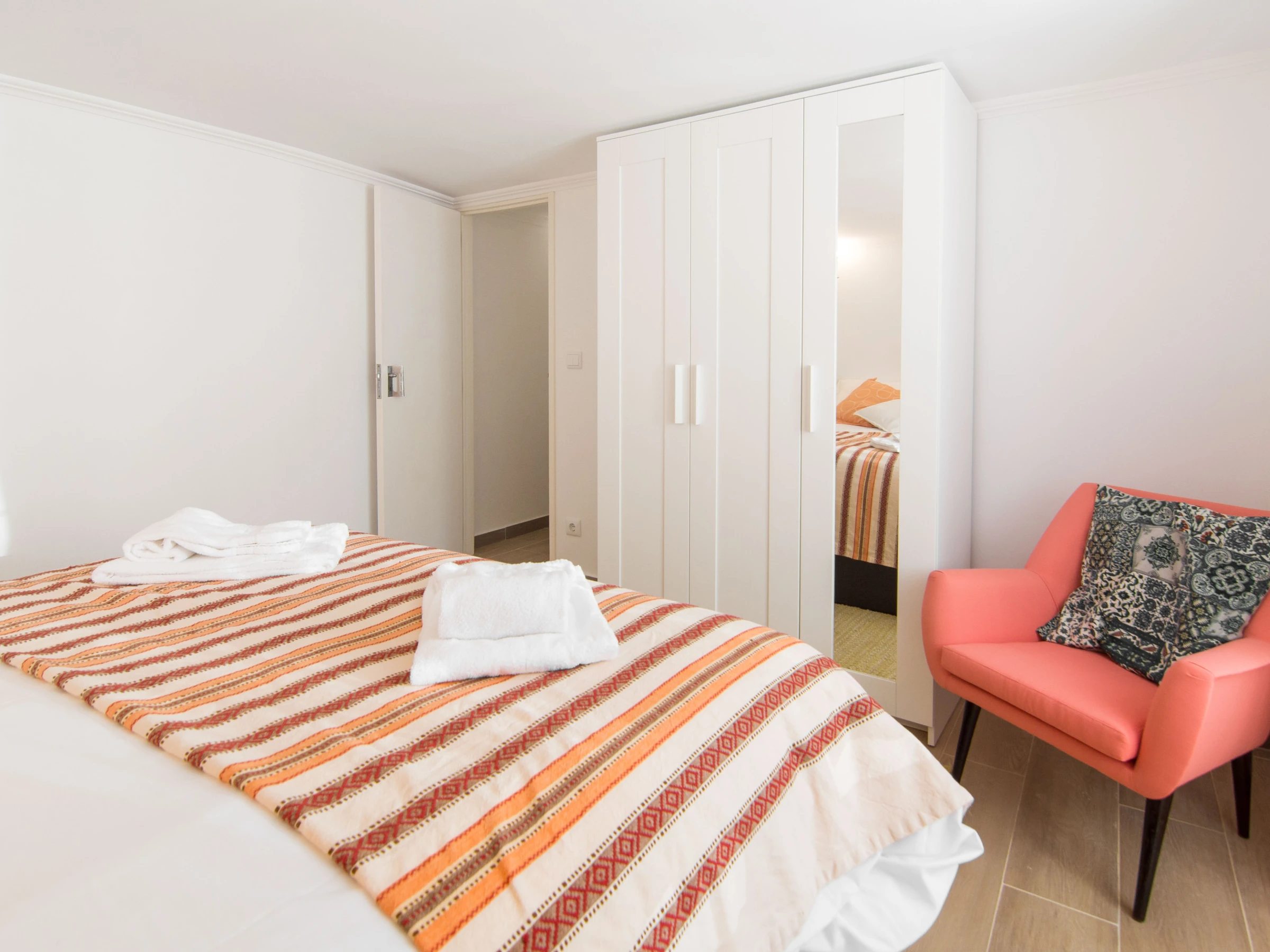 Au rez-de-chaussée, vous disposez de deux chambres, toutes deux avec des lits doubles et une salle de bains avec douche en verre. Au premier étage, vous disposez d'une autre chambre avec salle de bain privée avec douche en verre. Cette chambre dispose également d'un lit double, d'un petit balcon et d'une climatisation (froide et chaude) pour votre confort.