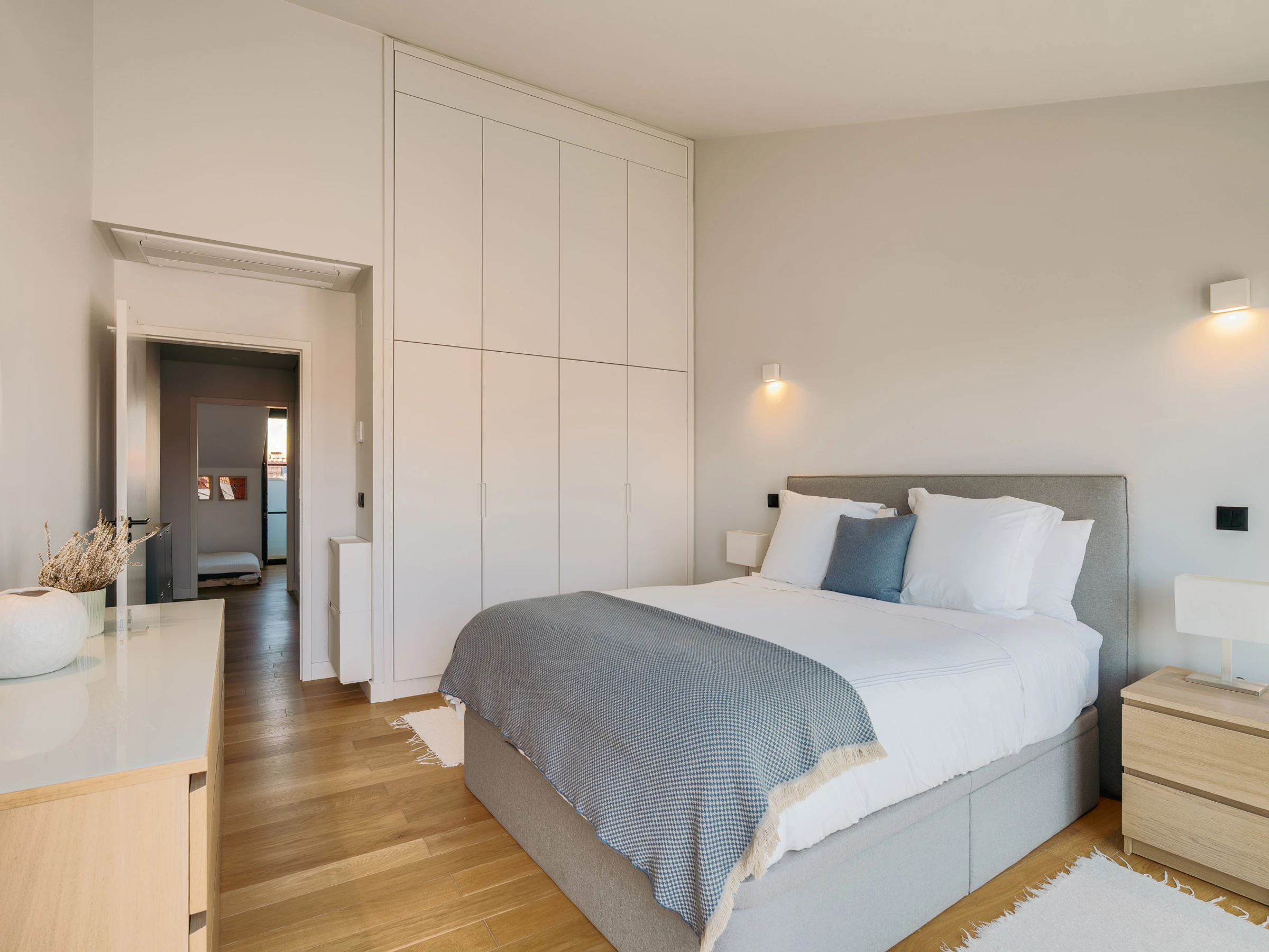 Ce charmant appartement contemporain de deux chambres a été soigneusement conçu pour offrir un environnement de vie serein et élégant. Dès que vous franchissez la porte, vous êtes accueilli dans un espace lumineux qui combine avec aisance un design moderne et une atmosphère chaleureuse et accueillante. La suite principale s'ouvre sur un balcon privé avec vue sur la mer, tandis que les grandes fenêtres du salon offrent une vue continue et ininterrompue sur la baie.
