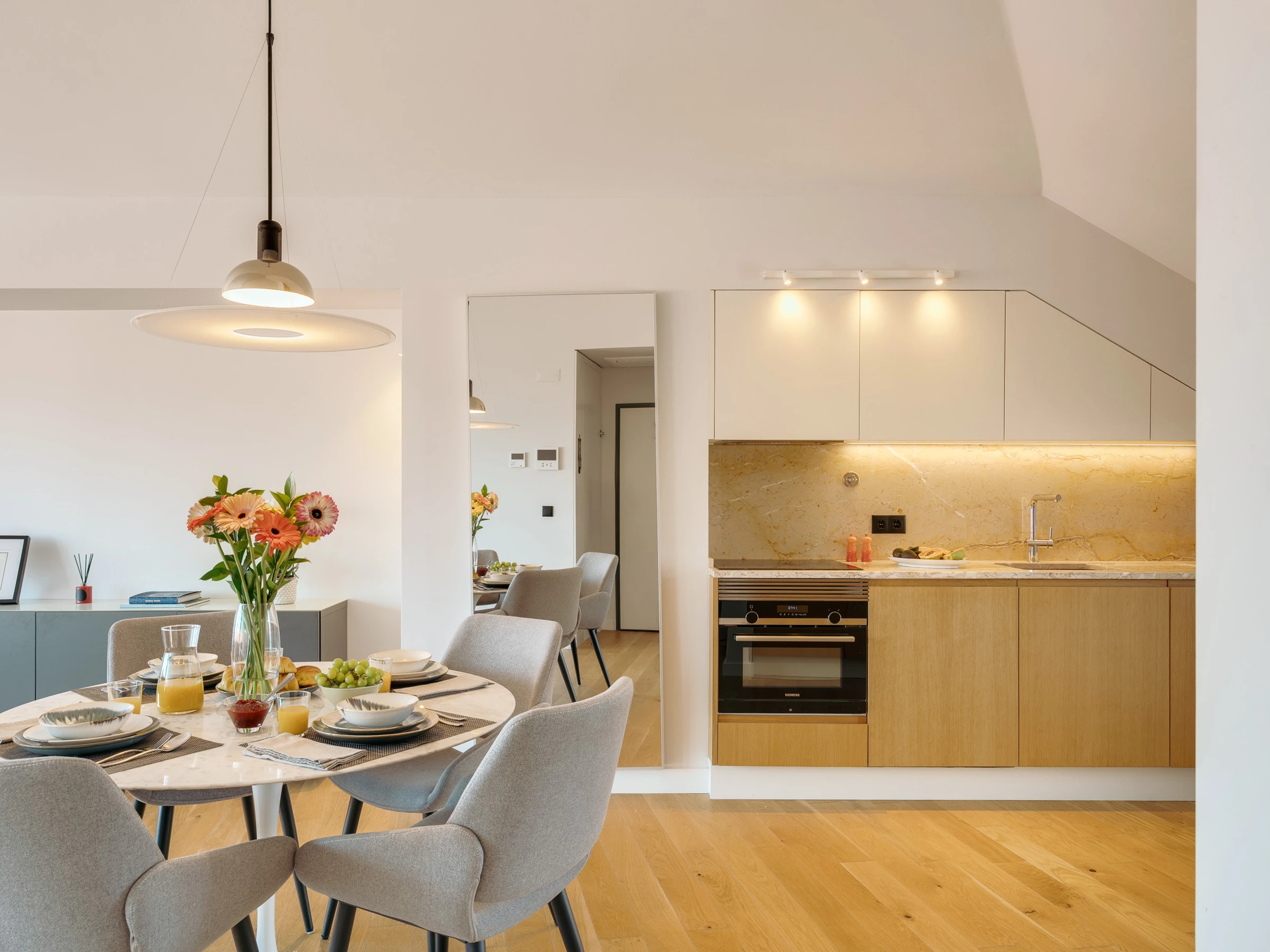 Situé au niveau du toit et accessible par ascenseur, l'appartement offre un sens rare de tranquillité et d'exclusivité dans un emplacement aussi central. Le balcon privé est un havre de paix extérieur, l'endroit idéal pour un café matinal ou un verre de vin en soirée, accompagné de la douce brise marine et du son des vagues en contrebas.