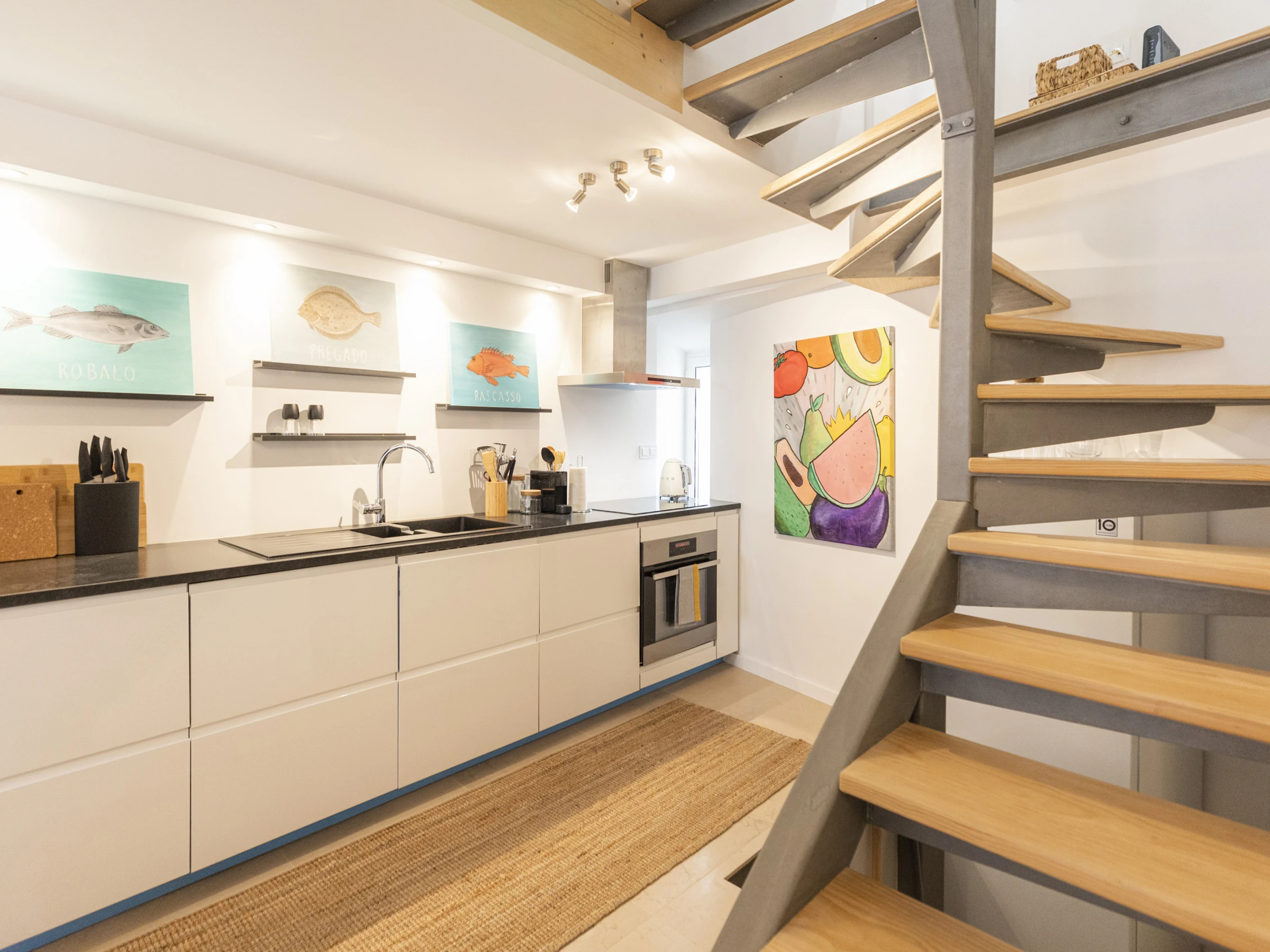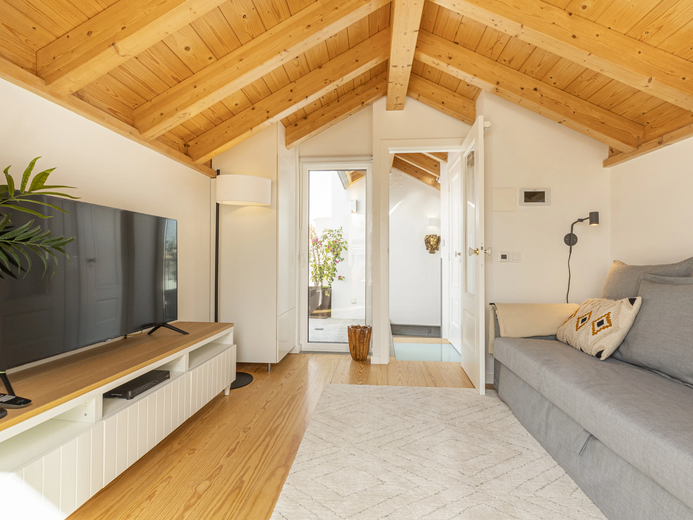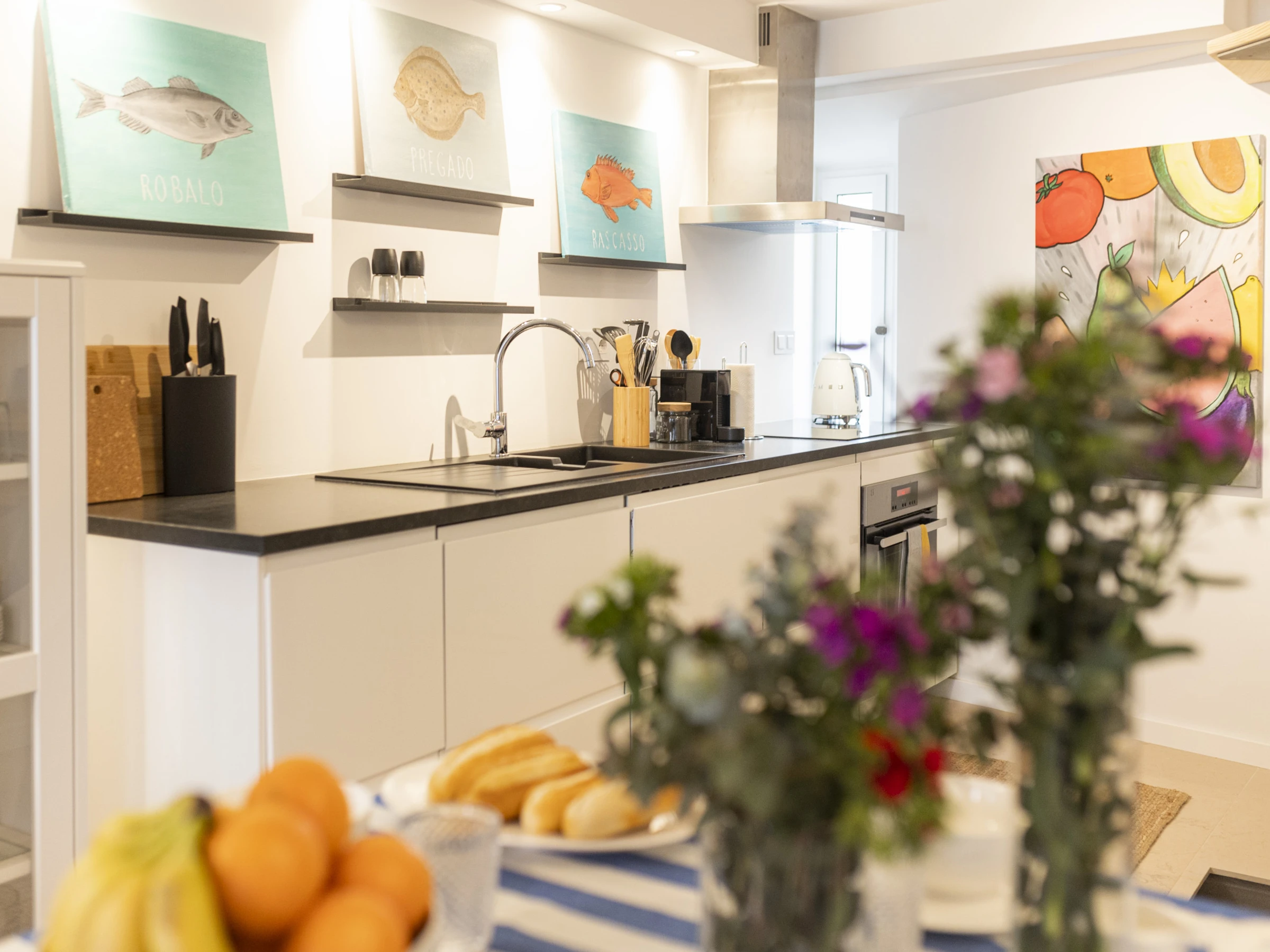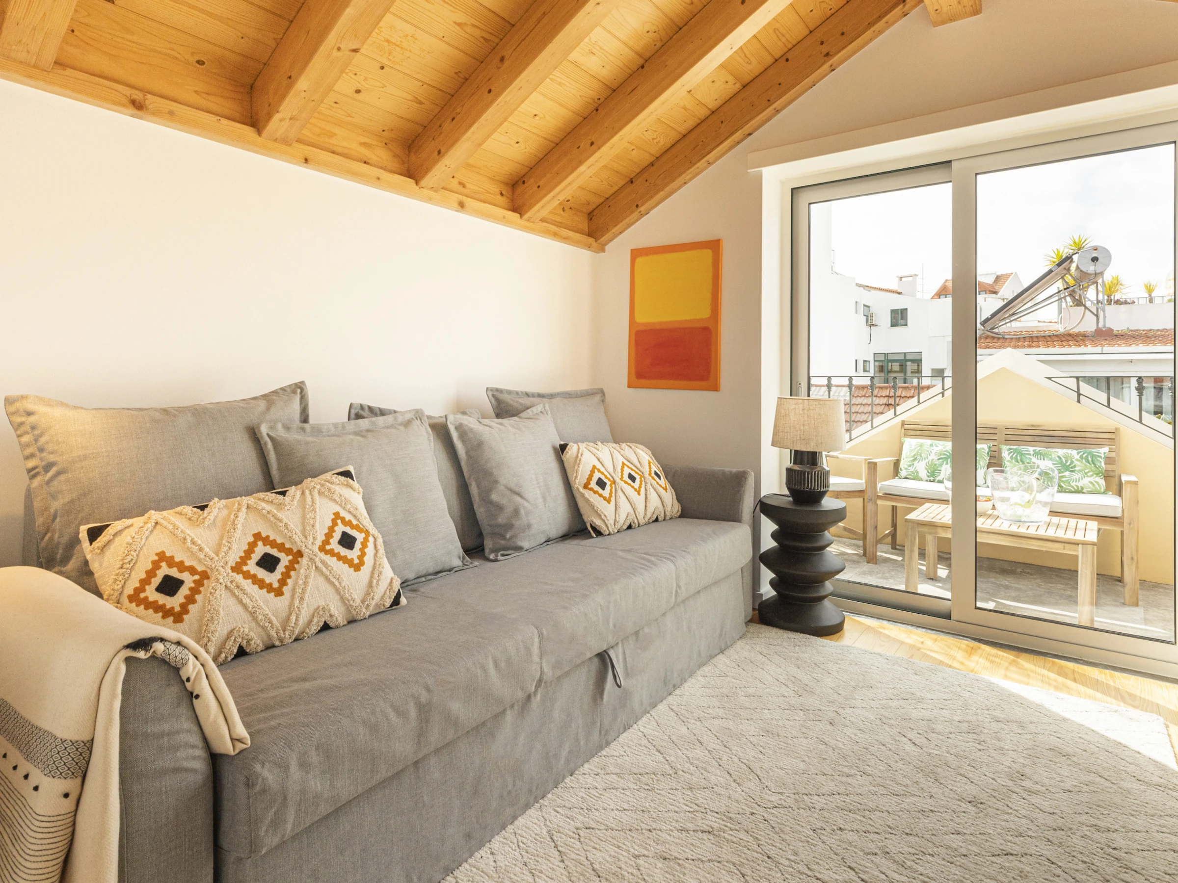 Les détails amusants et originaux de cette maison sont sûrs de ravir et d'ajouter du caractère à votre séjour. Des œuvres d'art colorées ornent les murs et les meubles et la décoration uniques reflètent la culture vibrante du Portugal. Au rez-de-chaussée, vous trouverez un salon/cuisine ouvert avec une ambiance contemporaine mais chaleureuse, des sols carrelés et des poutres en bois apparentes. Montez à l'étage et au premier étage se trouvent 2 grandes chambres doubles lumineuses, magnifiquement décorées avec des sols en bois et des armoires intégrées, et il y a 2 salles de bains modernes. Au dernier étage, il y a un grand salon ensoleillé qui peut être converti en une troisième chambre double si nécessaire. Des portes mènent directement à une petite terrasse privée, avec de magnifiques vues sur les toits de Cascais jusqu'à la baie au-delà, l'endroit parfait pour un ou deux apéritifs ! Il y a aussi une petite salle de bain à cet étage.