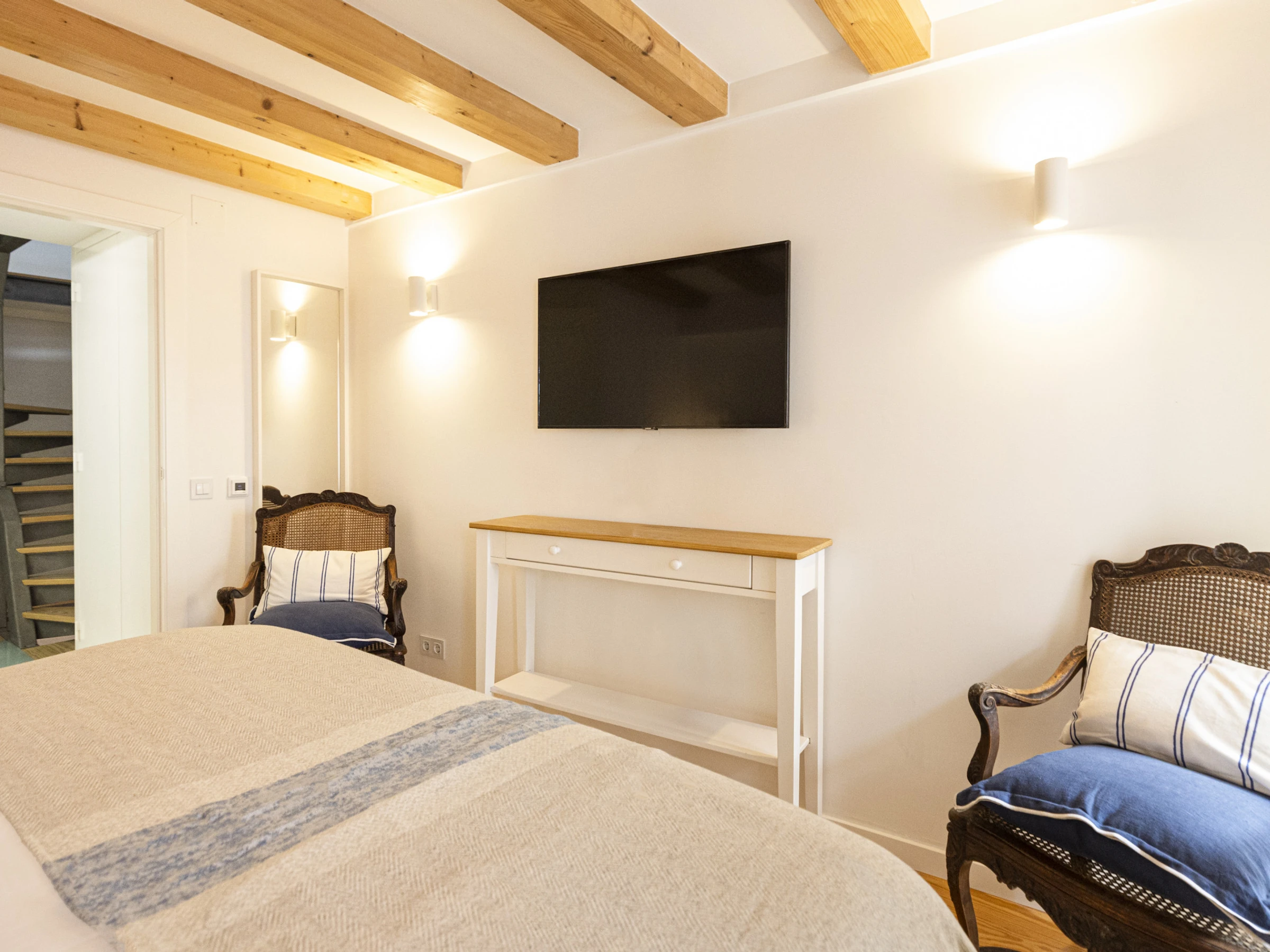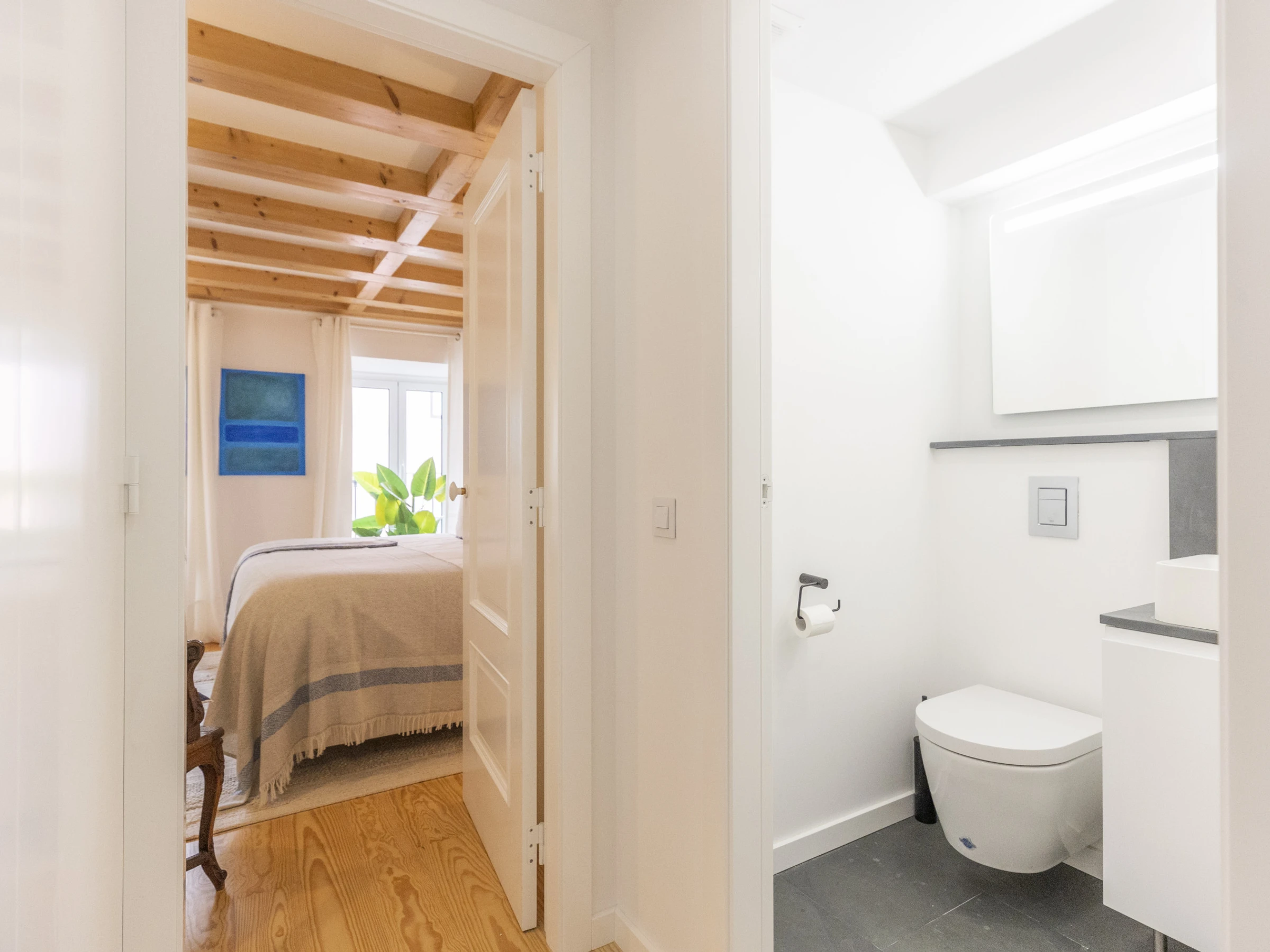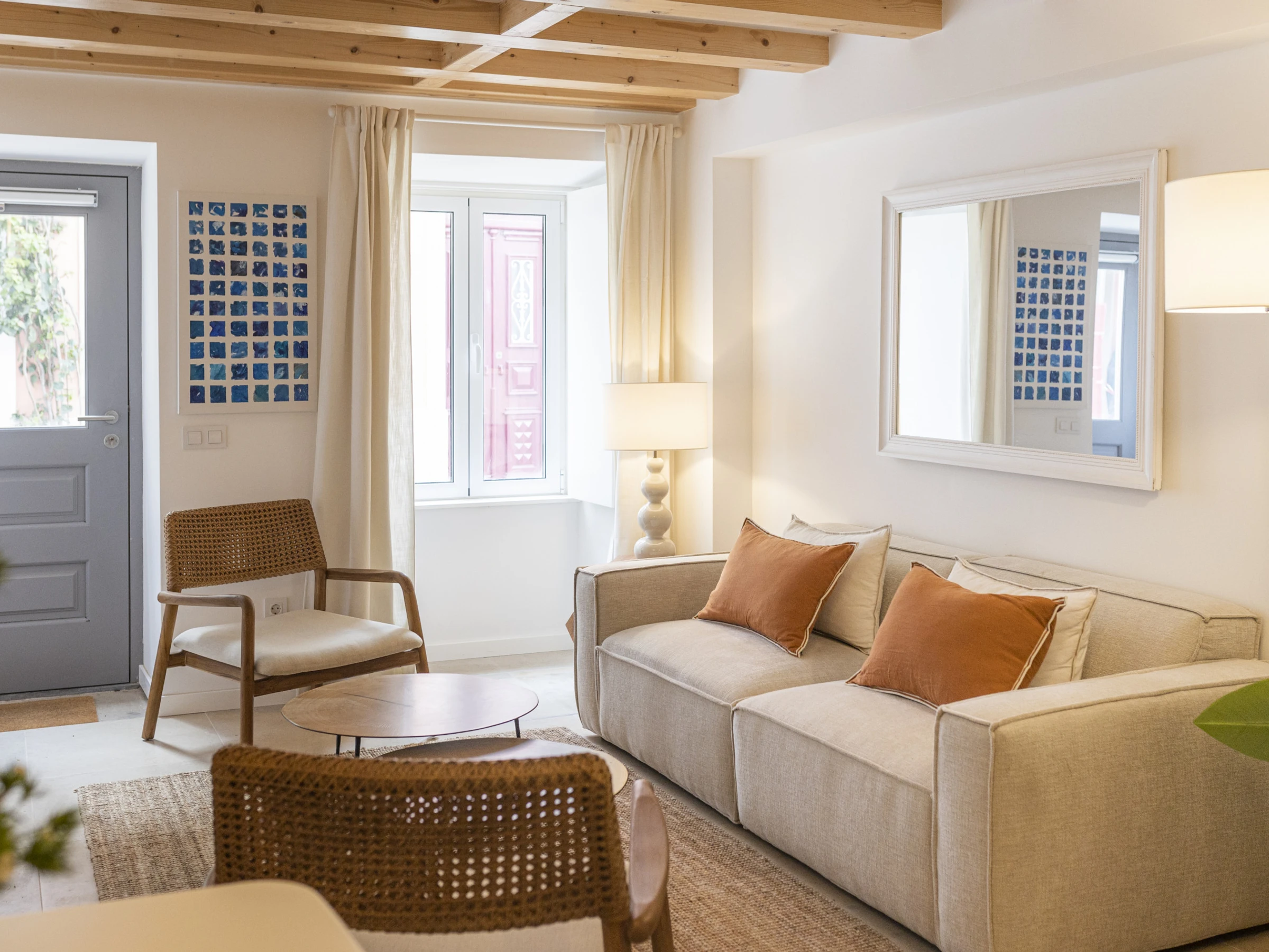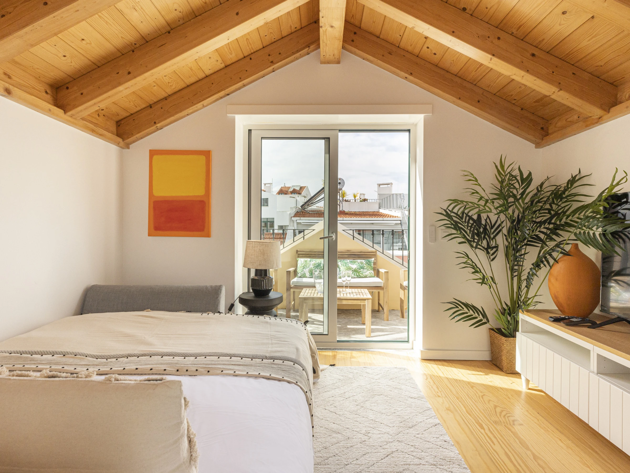 Les détails amusants et originaux de cette maison sont sûrs de ravir et d'ajouter du caractère à votre séjour. Des œuvres d'art colorées ornent les murs et les meubles et la décoration uniques reflètent la culture vibrante du Portugal. Au rez-de-chaussée, vous trouverez un salon/cuisine ouvert avec une ambiance contemporaine mais chaleureuse, des sols carrelés et des poutres en bois apparentes. Montez à l'étage et au premier étage se trouvent 2 grandes chambres doubles lumineuses, magnifiquement décorées avec des sols en bois et des armoires intégrées, et il y a 2 salles de bains modernes. Au dernier étage, il y a un grand salon ensoleillé qui peut être converti en une troisième chambre double si nécessaire. Des portes mènent directement à une petite terrasse privée, avec de magnifiques vues sur les toits de Cascais jusqu'à la baie au-delà, l'endroit parfait pour un ou deux apéritifs ! Il y a aussi une petite salle de bain à cet étage.