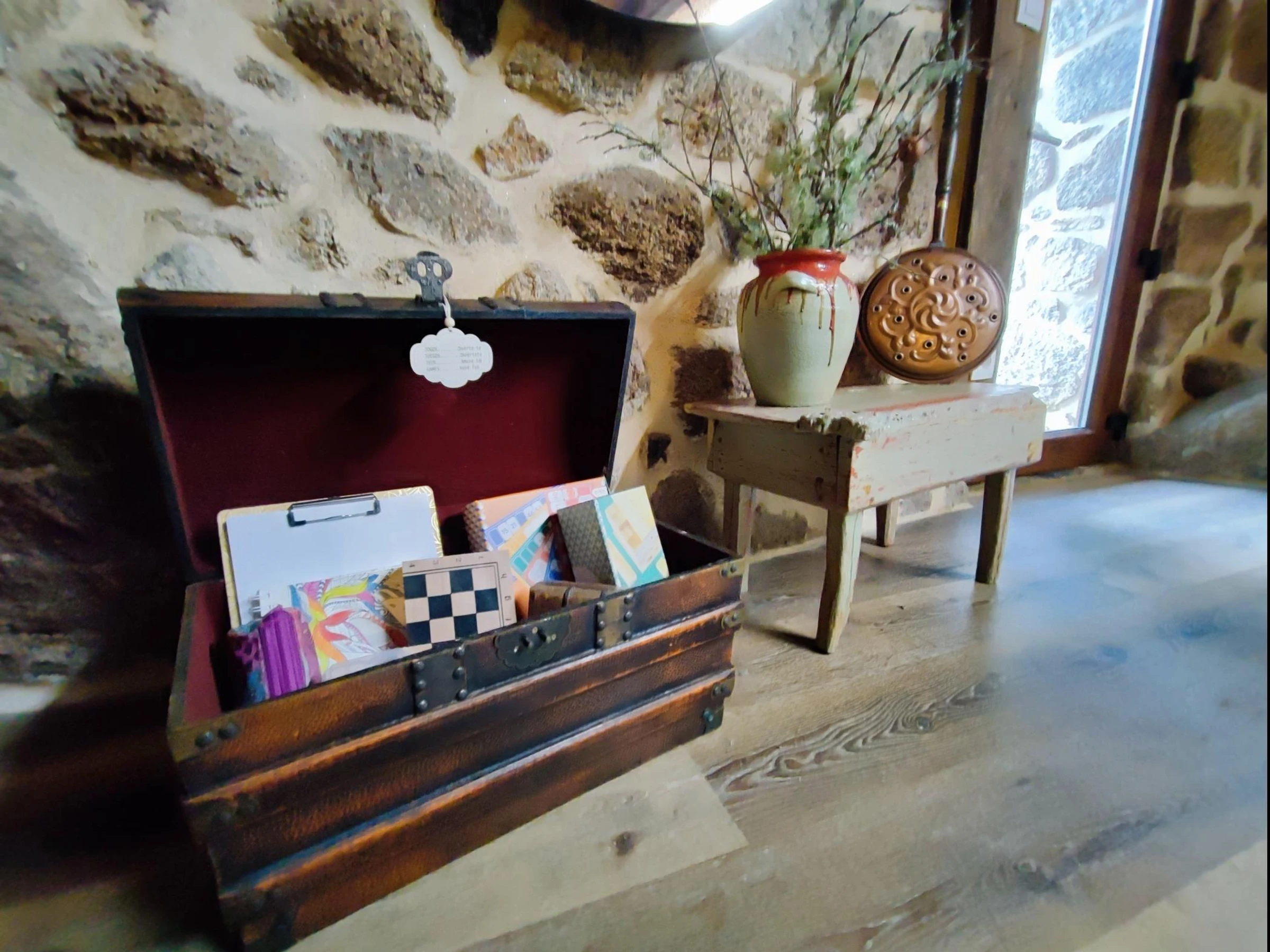 Les pierres qui l'habitent résistent au passage des années, telles des gardiennes de souvenirs et d'histoires transmis de génération en génération, contrastant avec la chaleur de la cheminée qui invite à de longs après-midis de jeux (traditionnels) et de conversations, à raconter les secrets de l'enfance où « autrefois, c'était... » nous amène à imaginer des scénarios que certains ne connaissent pas.