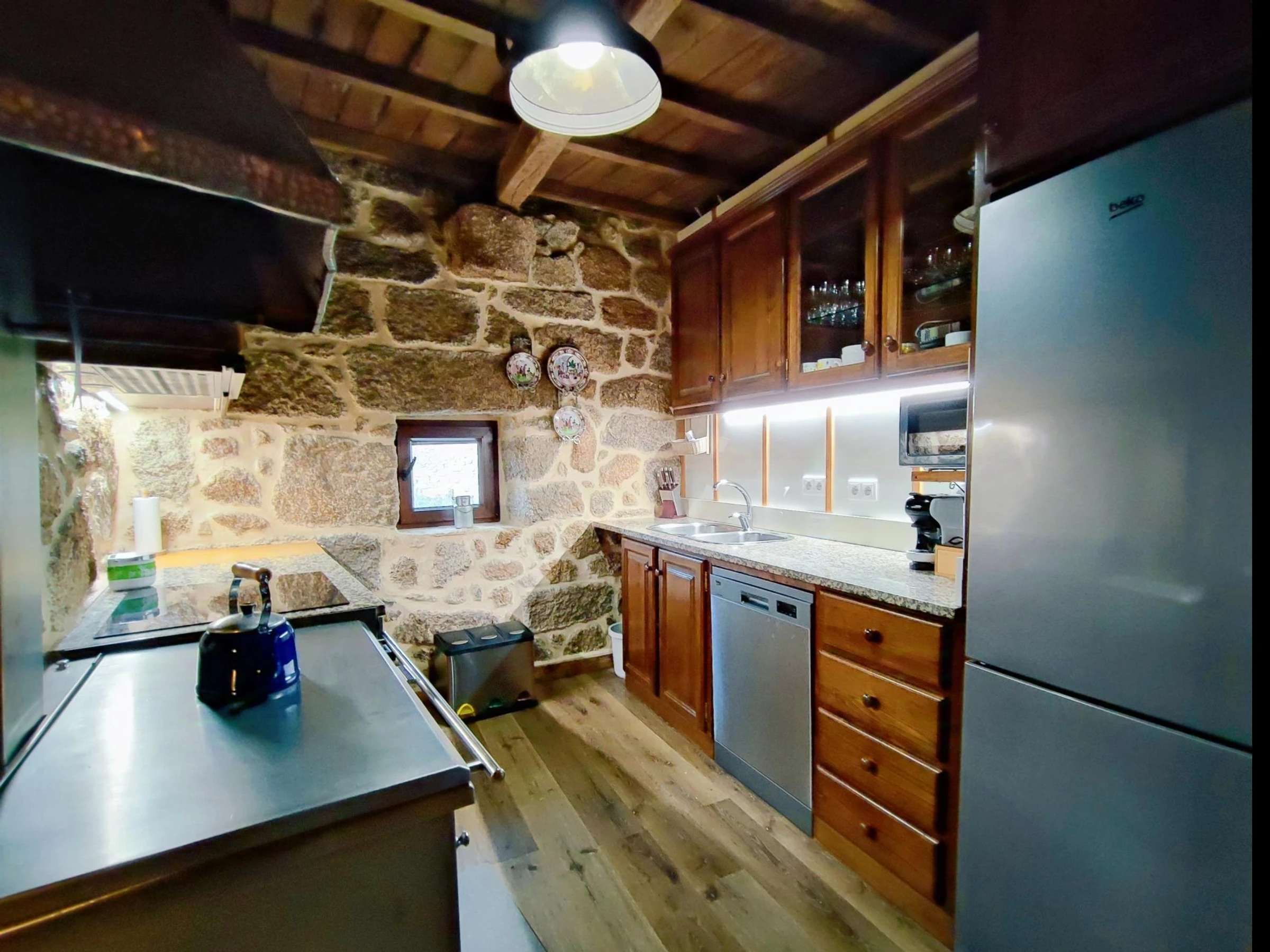 La cuisine nous rappelle l'époque où elle était le centre de la vie familiale et vous invite à cuisiner. Elle est entièrement équipée, des appareils les plus modernes au poêle à bois, où nous savons tous que les plats ont un autre goût !
