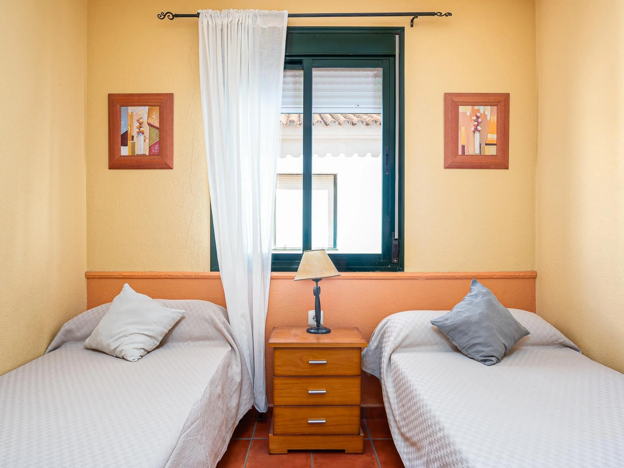 L'appartement du complexe résidentiel Aldea del Coto se distingue par son agencement pratique et accueillant, conçu pour répondre aux besoins de ceux qui recherchent confort et qualité. L'aménagement comprend deux chambres bien équipées. La première, conçue pour un sommeil réparateur, dispose d'un lit double et d'une armoire spacieuse. La deuxième chambre, idéale pour les enfants ou les amis, est équipée de deux lits simples et est accompagnée d'une grande armoire qui facilite l'organisation de l'espace.